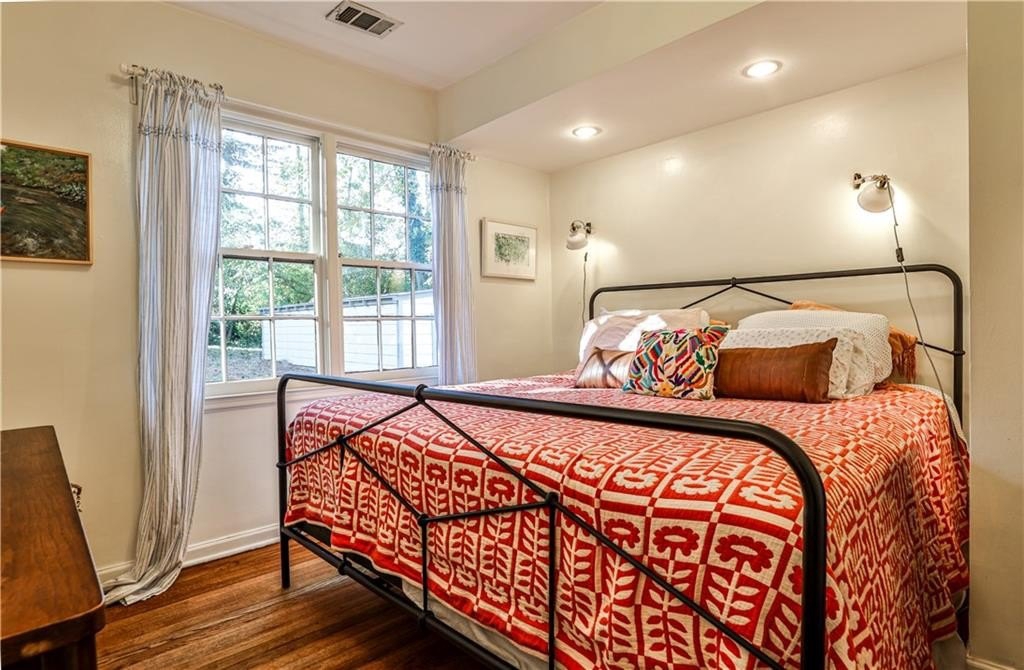 Welcome to 1015 S Candler Street — a classic Decatur bungalow where historic charm meets modern comfort, ideally located in the sought-after College Heights neighborhood of the City of Decatur. This charming 1,507 sq ft residence sits on a large, level 0.30-acre lot and offers the perfect balance of vintage warmth and contemporary design. An Eric Rothman design, this home has been artfully reimagined to preserve its historic integrity while introducing modern updates and thoughtful architectural details that enhance light, flow, and livability. Step inside to find a light-filled living room featuring a wood-burning fireplace, original hardwood floors, and corner windows that bring in natural light throughout the day, as the home is facing East-West. The kitchen has been thoughtfully updated with stainless steel appliances, custom cabinetry, and easy flow to the dining room for casual dining, creating a comfortable and welcoming heart of the home. On the main level, you’ll find three bedrooms that share a beautifully updated full bath — a true standout featuring bold designer tilework, modern fixtures, and a unique curved tub-shower combination that perfectly blends form and function. The striking blue palette adds a touch of personality and artistic flair while complementing the home’s vintage charm. Upstairs, a bright and inviting bonus room with skylight windows and a half bath provides flexible space that can easily function as a fourth bedroom, home office, gym, or creative retreat. The half bath, originally a full bath, remains plumbed for a tub, making it easy to restore if desired. With ample storage on the upper level, and a layout designed for everyday living, the home easily adapts to fit your lifestyle now and, in the years, to come. Outside, the fenced backyard provides a private retreat ideal for pets, gardening, or outdoor entertainment. The detached garage with power offers excellent additional parking or storage. Located within the highly acclaimed City of Decatur school district, this home enjoys unbeatable access to neighborhood amenities. Just down the street, Dearborn Park offers walking trails, a playground, and a basketball court — a peaceful green space right in your own neighborhood. You’ll also be blocks from Downtown Decatur and Oakhurst Village, home to award-winning restaurants, local coffee shops, and a vibrant mix of boutiques and community events. Emory University, the CDC, and MARTA are all within close proximity, connecting you seamlessly to the best of intown Atlanta living. With its unbeatable location, generous lot, architect-led renovation providing a blend of historic charm and modern livability, 1015 S Candler Street is truly a unique City of Decatur gem - ready to enjoy today, with plenty of potential for tomorrow.