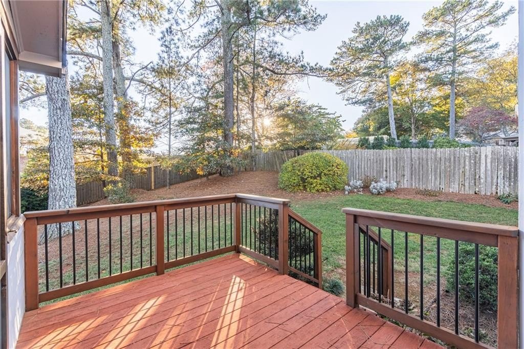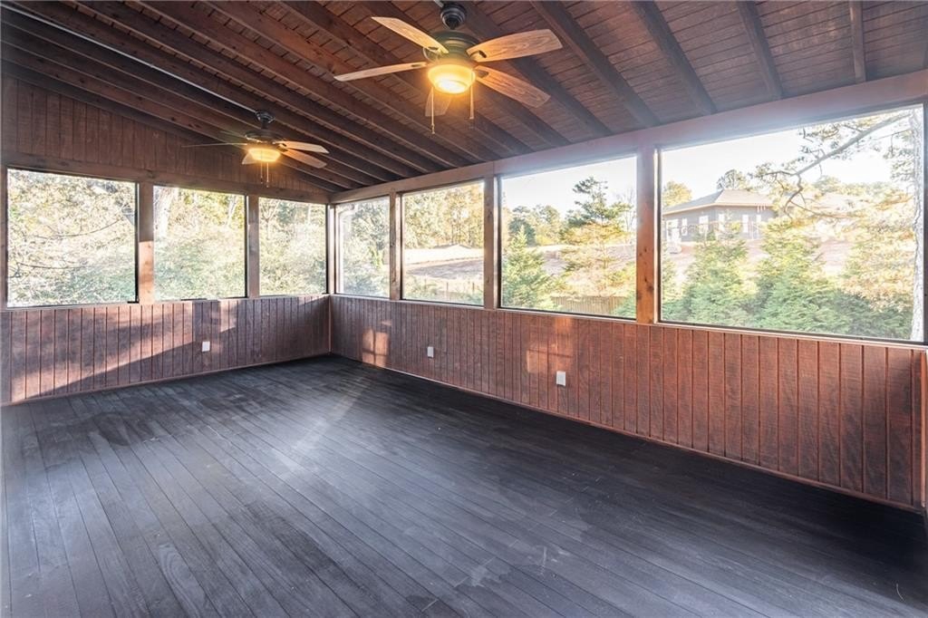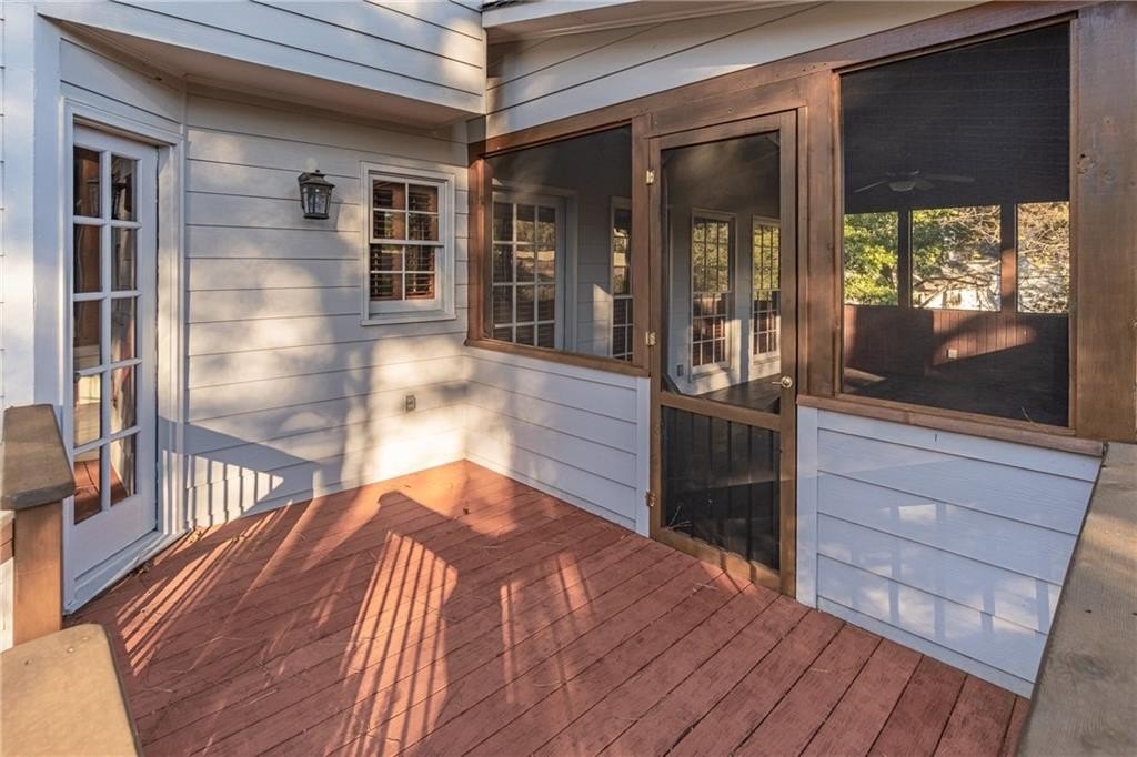 Step outside to enjoy your enclosed, covered, and screened-in back porch complete with exterior-grade ceiling fans and gorgeous Brazilian IPE flooring, overlooking a private wooded backyard—the perfect retreat for outdoor relaxation or entertaining.