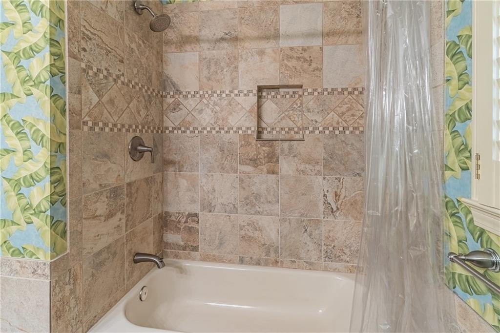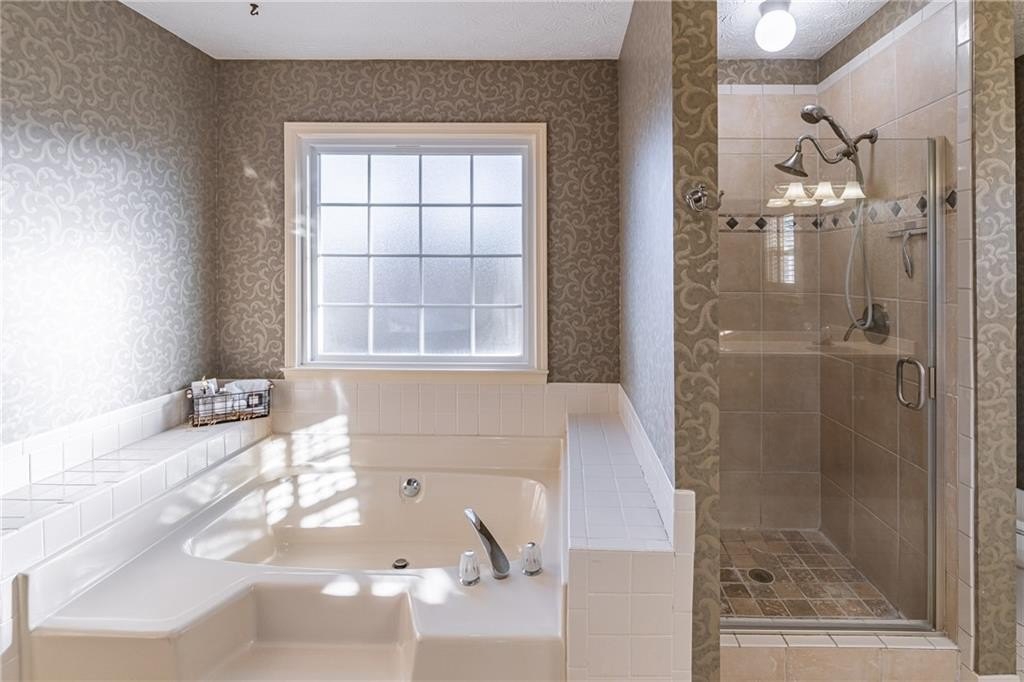 Upstairs, you’ll find four spacious bedrooms, including a luxurious primary suite with a custom walk-in closet and an en suite bath featuring a tile shower and separate soaking tub.