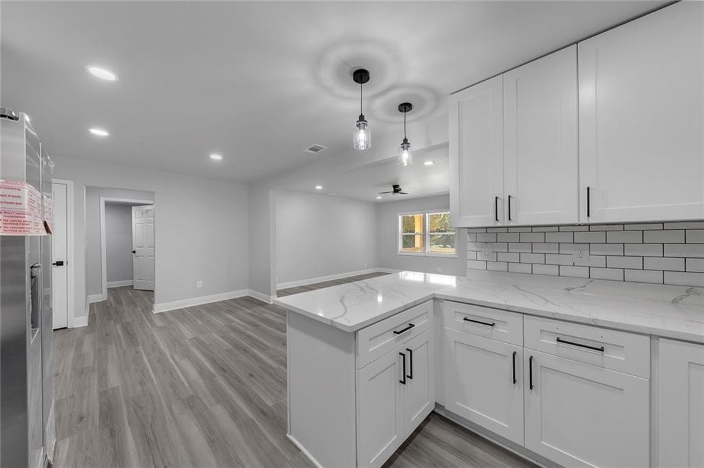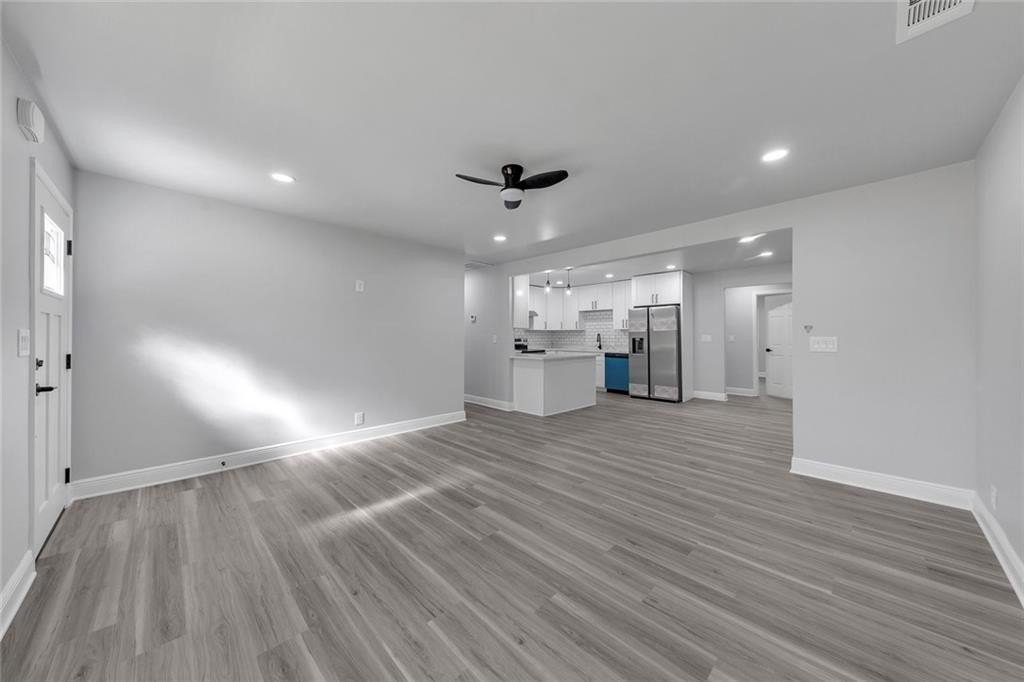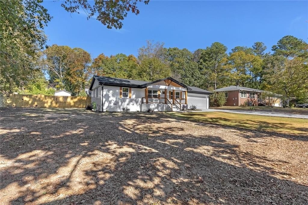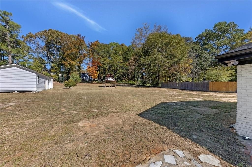 Beautifully renovated and move-in-ready, this Riverdale gem sits on a rare 1-acre lot with incredible space to live, garden, and entertain. A charming covered front porch with beautiful wood columns welcomes you home, giving this property standout curb appeal from the moment you arrive. Fresh paint inside and out and a brand-new driveway complete the refreshed exterior. Inside, you’ll find recessed lighting throughout, durable LVP flooring, and a bright open layout designed for modern living. The fully renovated kitchen features stone countertops, plentiful cabinetry, generous counter space, and brand-new appliances. With two primary suites, this home is perfectly set up for multi-generational living, guests, or a private office suite. The updated bathrooms offer stylish finishes, including a double vanity in the main suite. Major improvements include a brand-new HVAC system in 2025, new roof, and a re-conditioned crawl space with a new vapor barrier, giving you peace of mind for years to come. The expansive level lot provides endless possibilities including play space, gardens, outdoor entertaining, or future expansion. A large outbuilding with full electricity is ideal for a workshop, art studio, home office, or home gym. Located in Riverdale, enjoy easy access to shopping, dining, schools, and parks, as well as quick routes to I-85, I-75, and Hartsfield-Jackson Atlanta International Airport. Convenient to downtown Atlanta and major South Metro employers, yet tucked into a peaceful residential setting. Turnkey living with land, charm, and room to grow. No HOA.
