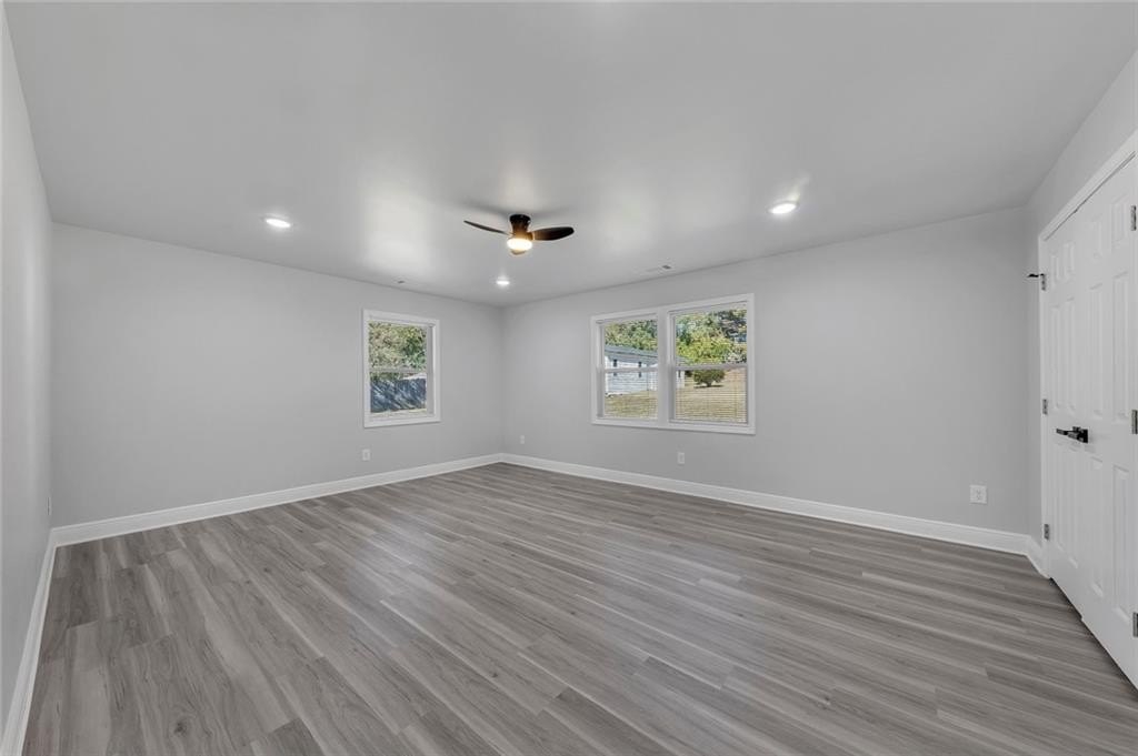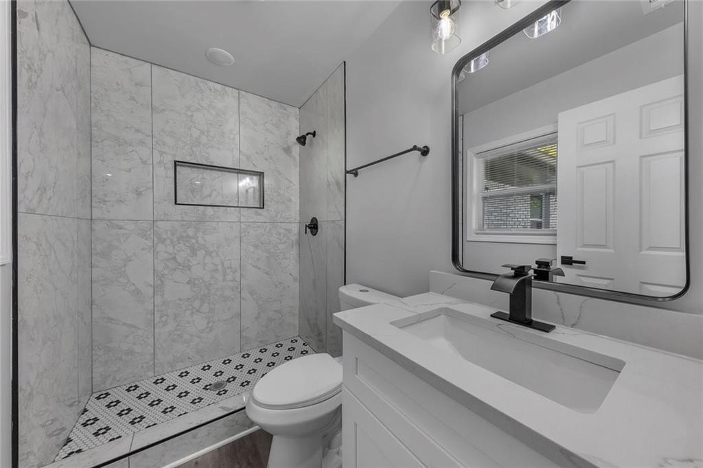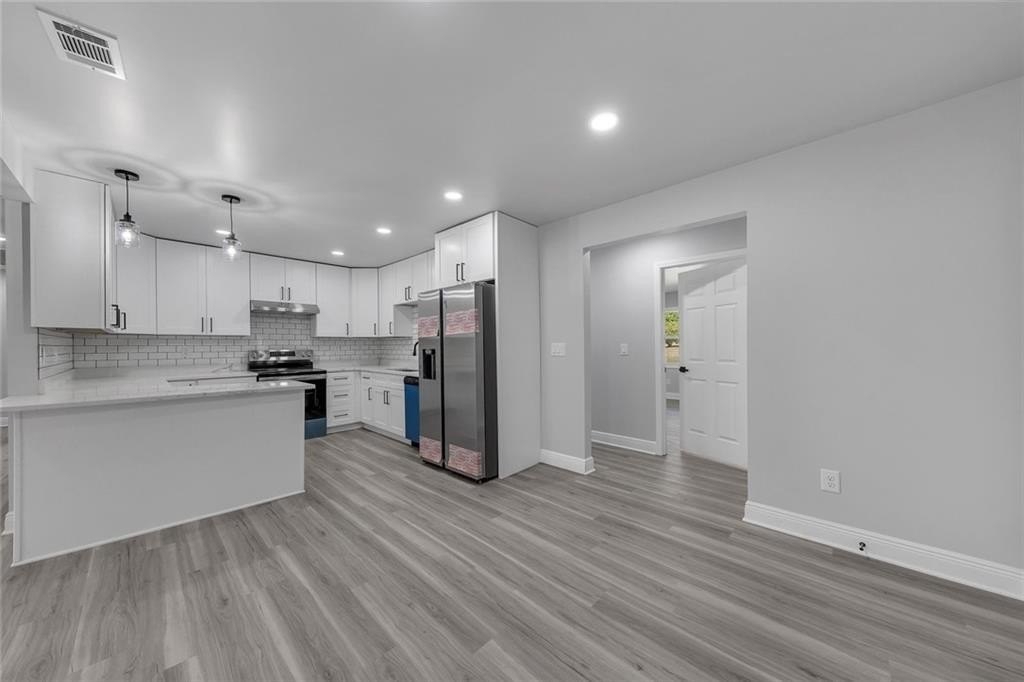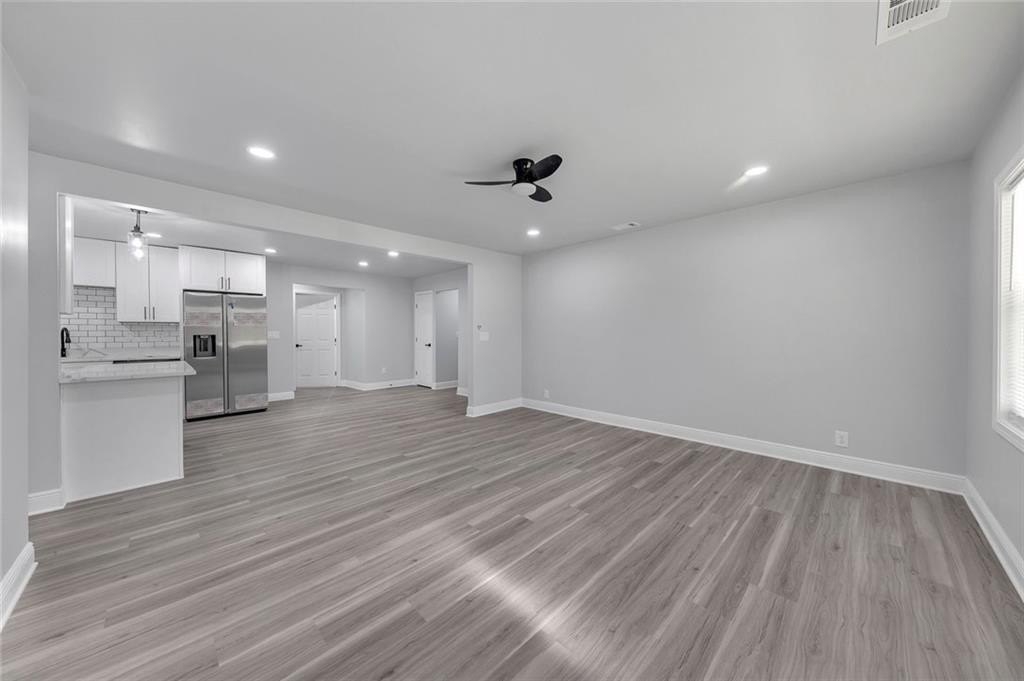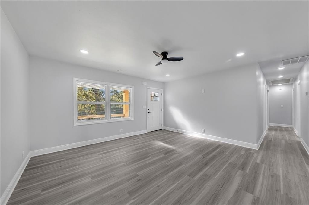 Beautifully renovated and move-in-ready, this Riverdale gem sits on a rare 1-acre lot with incredible space to live, garden, and entertain. A charming covered front porch with beautiful wood columns welcomes you home, giving this property standout curb appeal from the moment you arrive. Fresh paint inside and out and a brand-new driveway complete the refreshed exterior. Inside, you’ll find recessed lighting throughout, durable LVP flooring, and a bright open layout designed for modern living. The fully renovated kitchen features stone countertops, plentiful cabinetry, generous counter space, and brand-new appliances. With two primary suites, this home is perfectly set up for multi-generational living, guests, or a private office suite. The updated bathrooms offer stylish finishes, including a double vanity in the main suite. Major improvements include a brand-new HVAC system in 2025, new roof, and a re-conditioned crawl space with a new vapor barrier, giving you peace of mind for years to come. The expansive level lot provides endless possibilities including play space, gardens, outdoor entertaining, or future expansion. A large outbuilding with full electricity is ideal for a workshop, art studio, home office, or home gym. Located in Riverdale, enjoy easy access to shopping, dining, schools, and parks, as well as quick routes to I-85, I-75, and Hartsfield-Jackson Atlanta International Airport. Convenient to downtown Atlanta and major South Metro employers, yet tucked into a peaceful residential setting. Turnkey living with land, charm, and room to grow. No HOA.