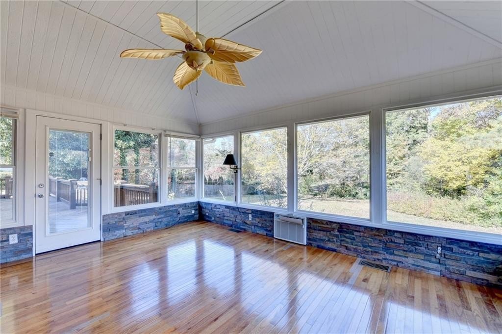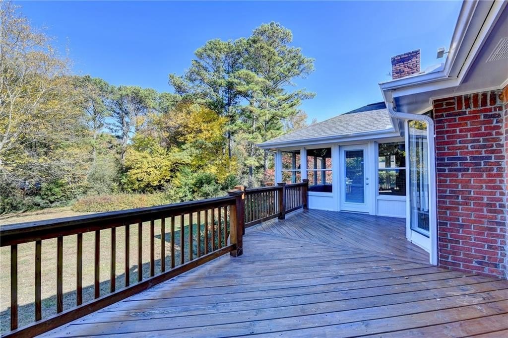 Welcome to this beautifully maintained single-owner ranch home on a finished basement in the sought-after Saddle Creek community. Owned by the same family since 1978, this home features a welcoming rocking-chair front porch, a formal living room, a separate dining room, and a fireside family room that opens to a kitchen with granite countertops and stainless steel appliances. The primary suite offers a walk-in closet and private bath, while three additional bedrooms share a full bath on the main level. The laundry room is conveniently located near the side-entry two-car garage. A beautiful sunroom overlooks a spacious deck leading to the large, level, private backyard, perfect for outdoor enjoyment. The finished basement includes a game room, bedroom, full bath, second kitchen with pantry and newer appliances, as well as an additional fireside family room—ideal for guests or multi-generational living. Located close to highly rated schools and just minutes from the historic downtown areas of Roswell, Alpharetta, and Milton, this rare single-owner home offers space, comfort, and convenience in one of the area’s most established neighborhoods. Square footage does not include the finished basement or finished sunroom.