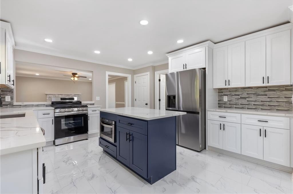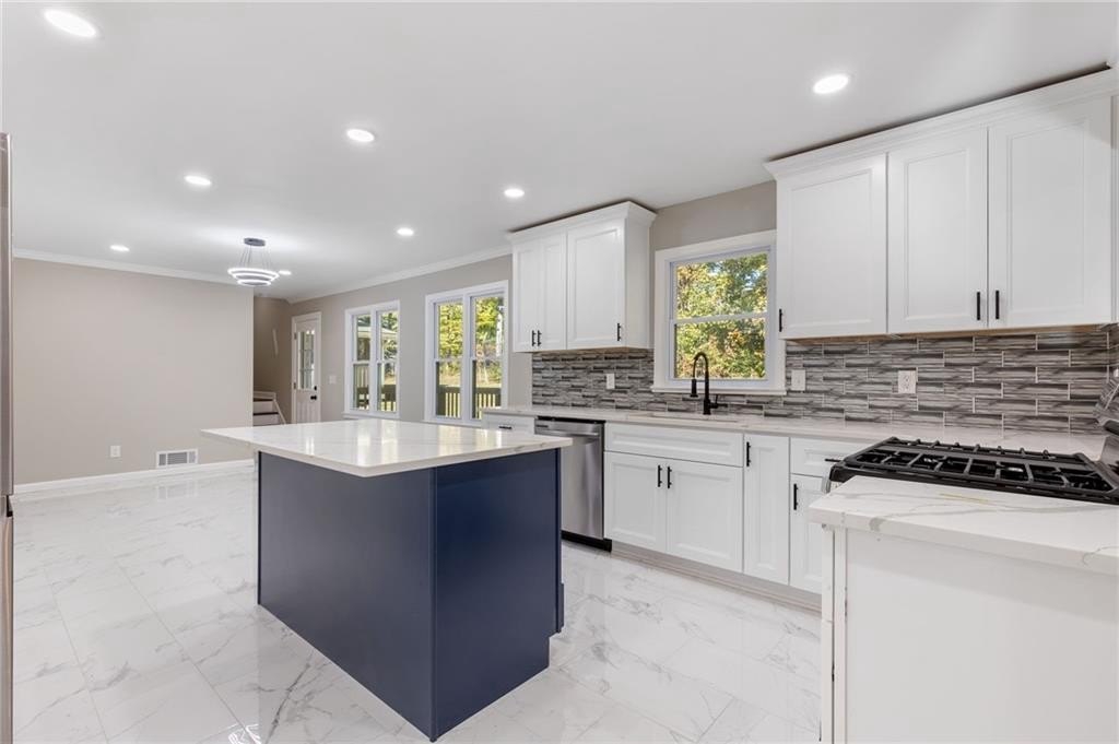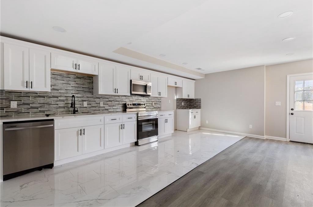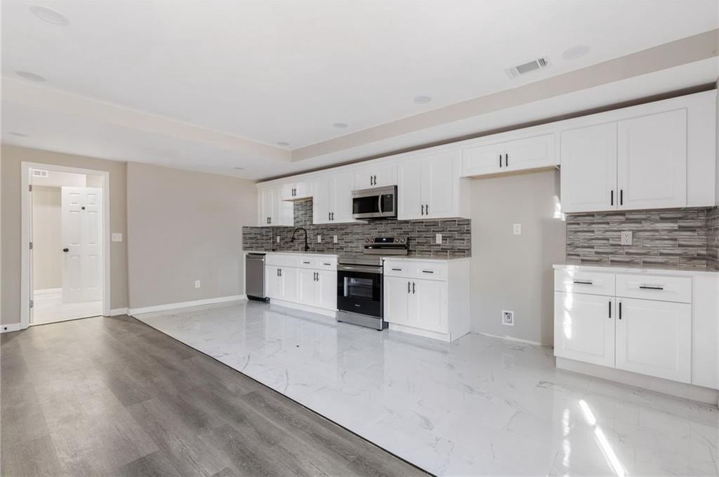 ENJOY A BRIGHT, OPEN FLOOR PLAN DESIGNED FOR MODERN COMFORT AND FUNCTIONALITY. BRAND NEW DOUBLE KITCHEN WITH QUARTZ COUNTERTOPS, DESIGNER BACKSPLASH, LARGE ISLAND, AND STAINLESS STEEL APPLIANCES.