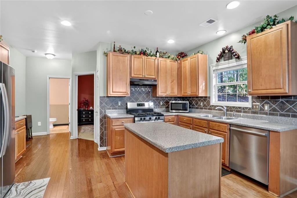 Discover this exceptional home in West Cobb! This property is in great condition, ready to welcome you. Four bonus areas give you plenty of room to spread out. A front bonus room would make the perfect office or library. The additional bonus room on the main floor would be counted as a bedroom if it was adjacent to a full bath instead of a half bath. Expansion opportunity! The loft area at the top of the stairs would make a great play or reading room and the sitting area of the primary suite offers a place to relax. The living room offers a warm and inviting atmosphere, featuring a fireplace that serves as a focal point for gatherings and relaxation, enhanced by the elegant touch of crown molding that adds a layer of sophistication to the space. In the kitchen, the large kitchen island immediately catches the eye, offering ample space for meal preparation and casual dining, complemented beautifully by modern countertops and a stylish backsplash, combining functionality with aesthetic appeal. The oversized primary bedroom provides a private retreat, complete with a sitting area and an ensuite bathroom that enhances convenience and comfort. Within, you will find a walk in shower and soaking tub, designed with a focus on both luxury and practicality. This Marietta residence offers a blend of comfort and style, creating an ideal setting for a fulfilling lifestyle. Well maintained and ready to move in!