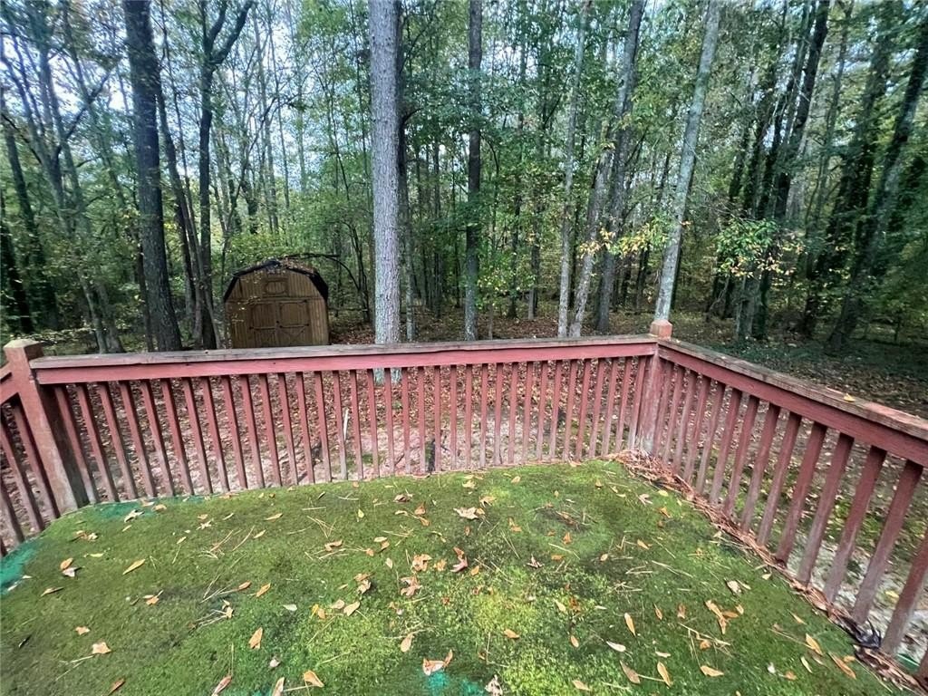 The laundry room is conveniently located in an extra area in the garage, providing extra space for folding and hanging clothes. Outside, enjoy a private backyard with wooded views, and a large outbuilding perfect for storage or a workshop.