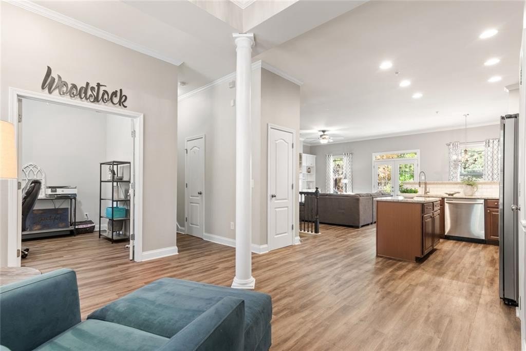 Home features a bright open floor plan, hardwood floors, sitting area, office and so much more. A huge owner's suite, spacious spa like bath and 2 other bedrooms w/ guest bath and laundry room complete the upstairs. Your lovely abode doesn't end there, it has a finished terrace level, a back deck large enough for an outdoor TV and grilling time! Newer roof, main floor a/c & extended wood flooring. Two car garage in back and so much parking right across the street, entertaining will be a delight!