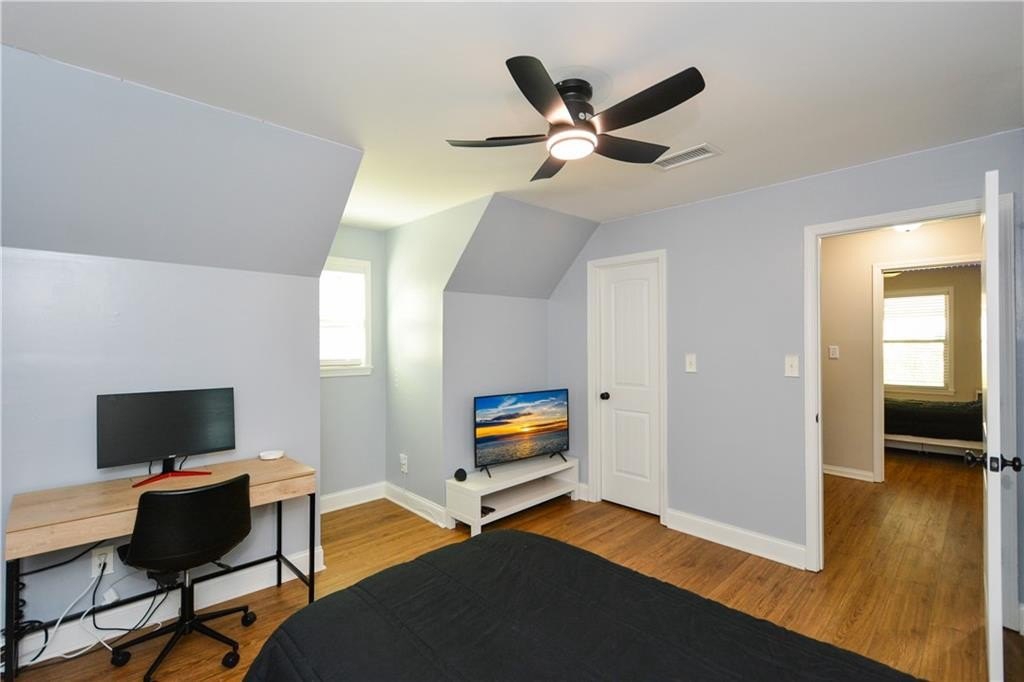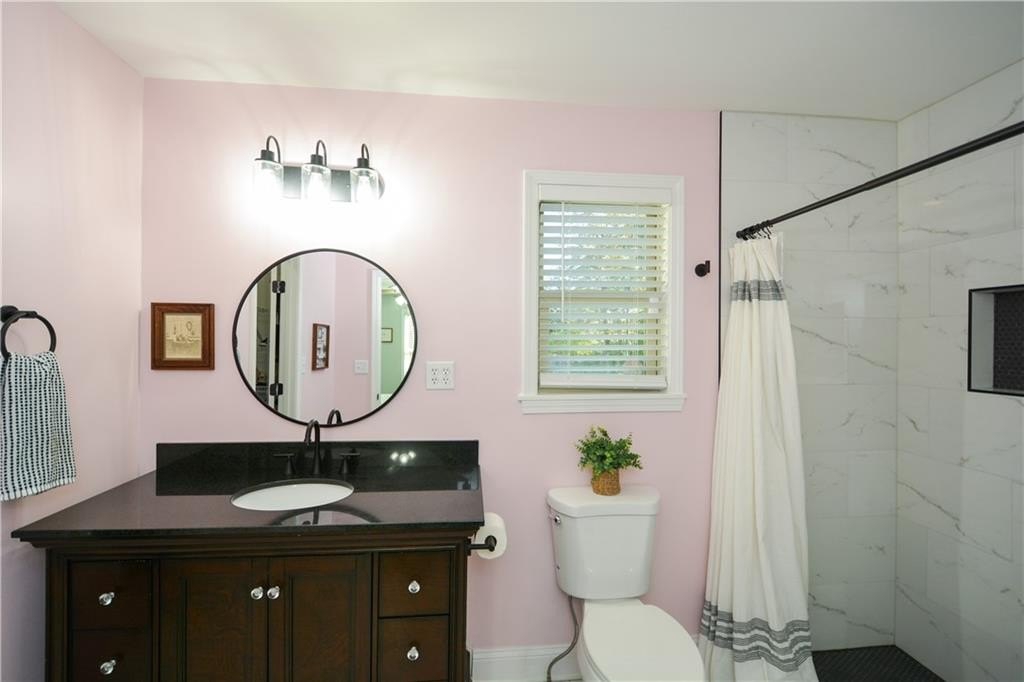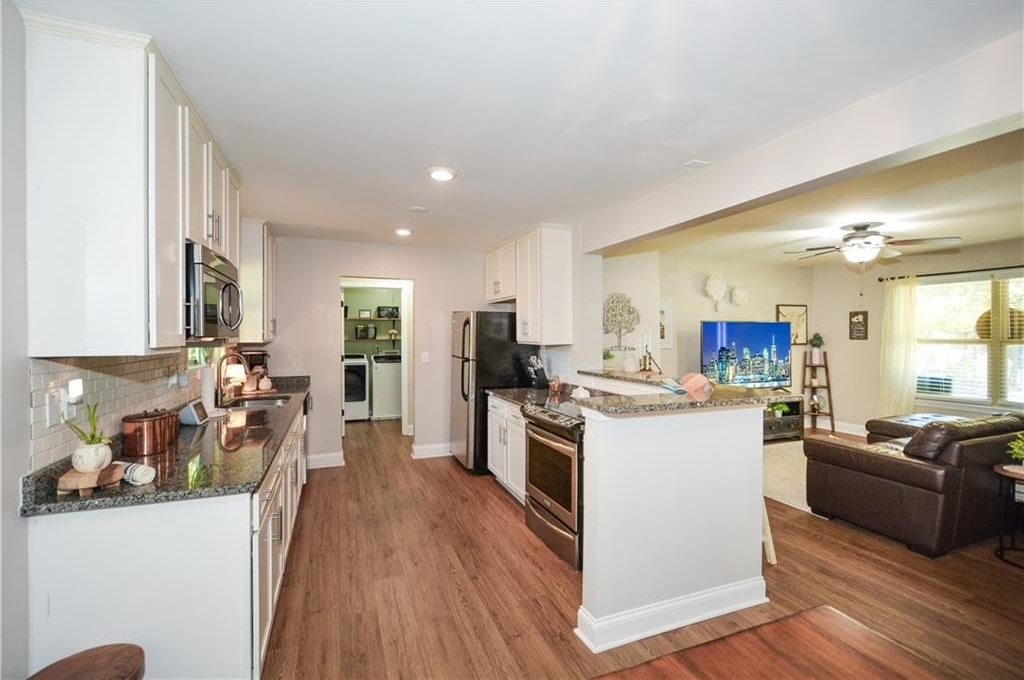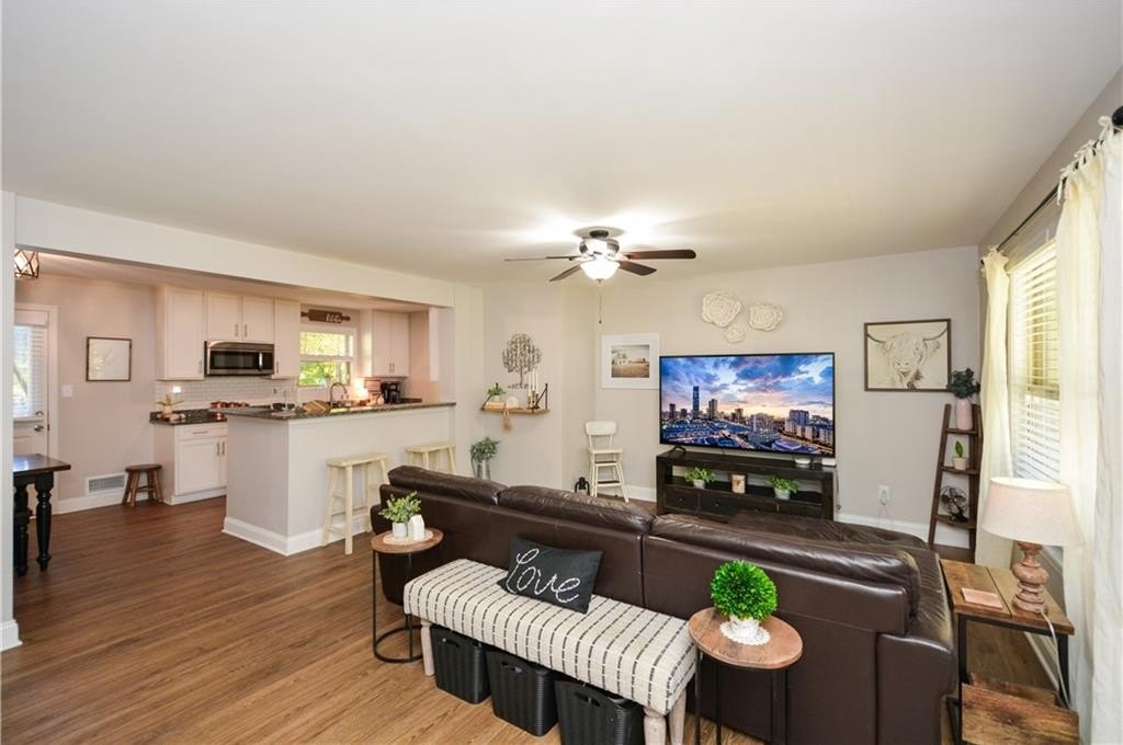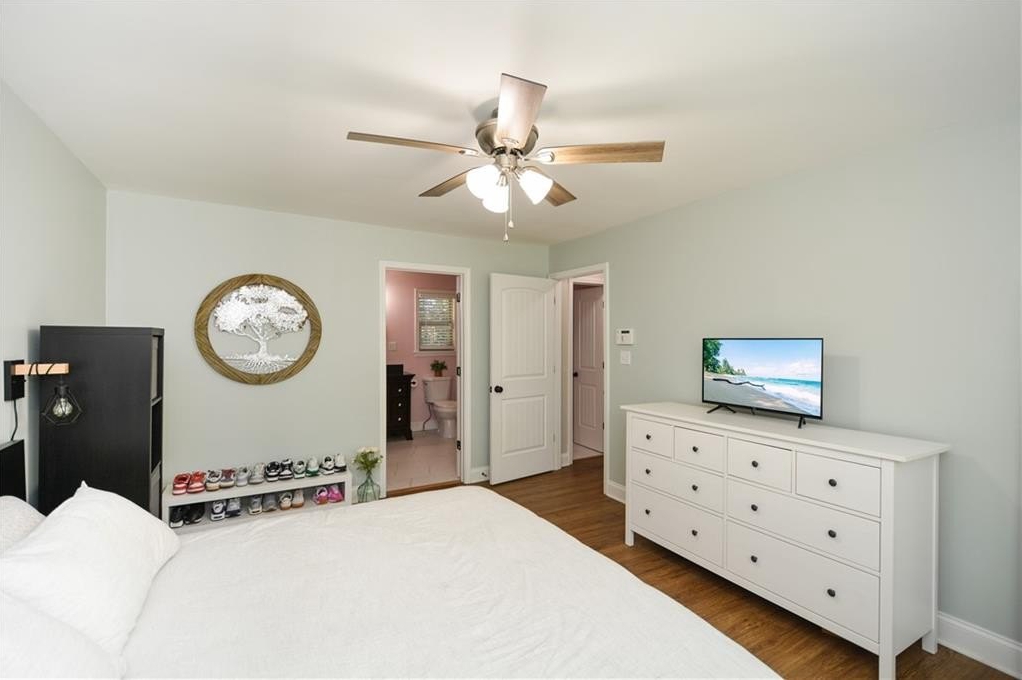 Welcome to this beautifully updated 3-bed, 2-bath home in the heart of Kennesaw! Step inside to find brand-new flooring throughout and a bright, open layout that feels fresh and modern. The updated kitchen features sleek granite countertops, updated appliances, and plenty of cabinet space—perfect for everyday cooking or entertaining. The primary bedroom on the main level offers convenience and privacy, complete with a completely updated, spa-like bathroom featuring modern finishes and thoughtful details. Upstairs, you’ll find two additional spacious bedrooms and a full bath. Enjoy peace of mind with a brand-new, energy-efficient HVAC system, keeping this home comfortable year-round. Outside, a level yard provides room to relax, garden, or play—with endless potential for outdoor living. Situated in the highly sought-after Harrison High School district, this home offers access to top-rated schools and a strong community feel. You’ll love the convenience of nearby shopping, dining, parks, and quick access to major highways. Move-in ready, tastefully updated, and perfectly located — don’t miss your chance to call this beautiful Kennesaw house your home!