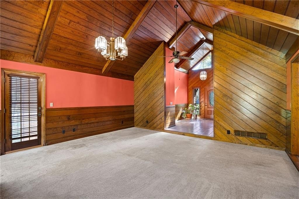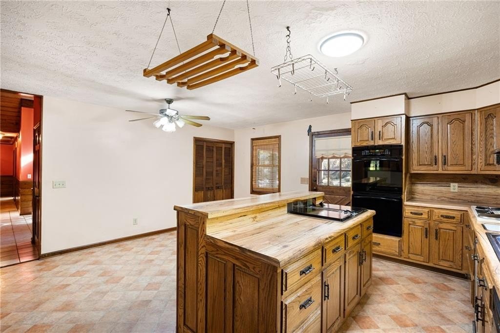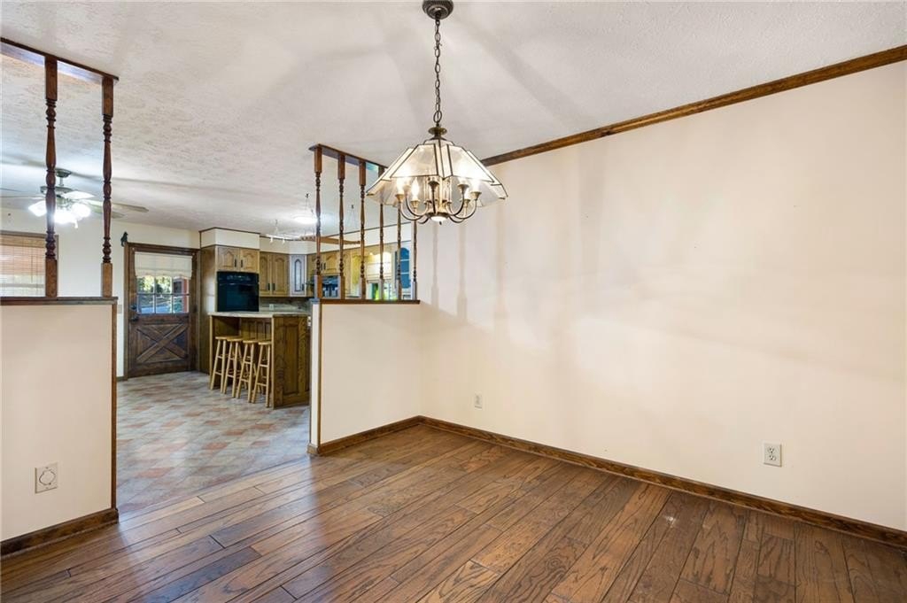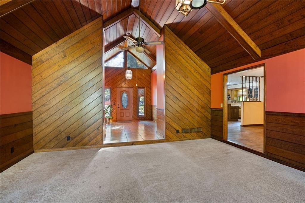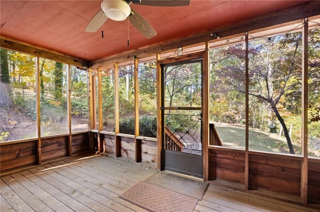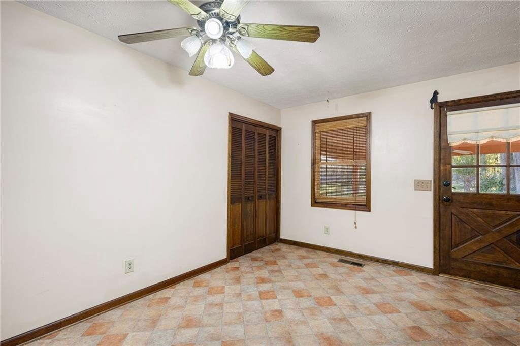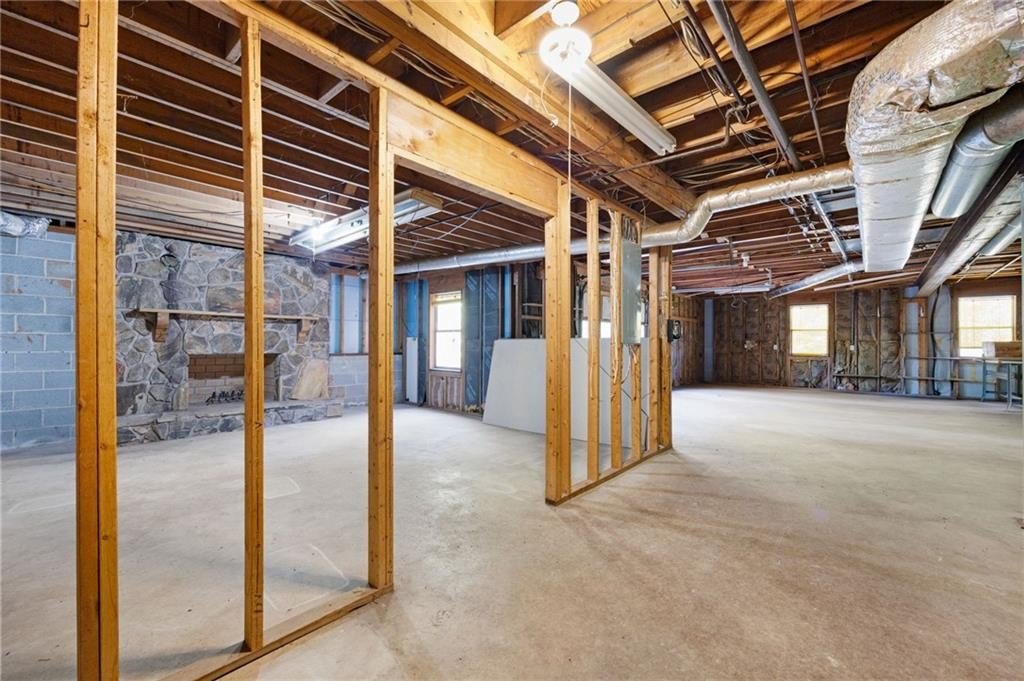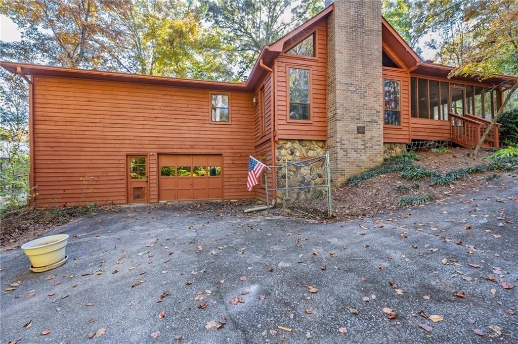 Vaulted ceilings • Stone fireplaces • Screened porch • Full basement! Discover rustic charm and endless potential in this Marietta ranch home with a basement, nestled just minutes from shopping, parks, and commuter routes. This diamond is a tremendous opportunity for an investor or homeowner looking to provide some sweat equity. A welcoming foyer opens beneath soaring vaulted and wood-plank ceilings. The space flows into the great room, anchored by a stunning stone fireplace, a soaring vaulted and wood-plank ceiling, and oversized windows framing tree-filled views. The large eat-in kitchen offers classic warmth with rich cabinetry, a breakfast bar, double ovens, and a dining area. There is an adjoining dining room. The partially screened-in porch extends the living space outdoors, ideal for morning coffee or relaxed evenings surrounded by nature. The primary suite features generous natural light and an ensuite bath with a separate shower and soaking tub. Two additional bedrooms and a second full bath provide flexible space for guests, an office, or hobbies. Downstairs, a partially finished basement with a second stone fireplace offers exceptional storage, a one-car garage, and expansion potential. Recent mechanical updates include a 1-year-old HVAC system and a new water heater. The exterior showcases timeless wood siding, a covered carport, and mature landscaping that enhance curb appeal. Conveniently located near Tumlin Park (0.8 mi), Jim Miller Park & Event Center (1.0 mi), and I-285/I-75 access (~1 mi), this property is ideal for those seeking a home with character and a chance to make it their own.