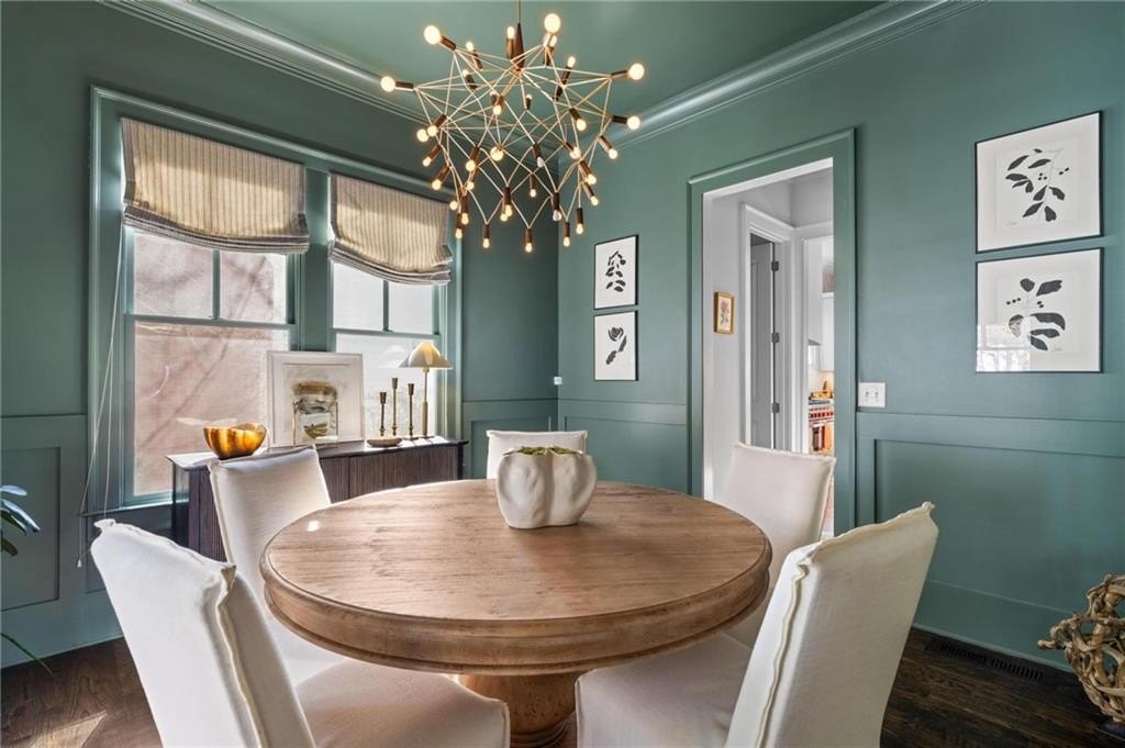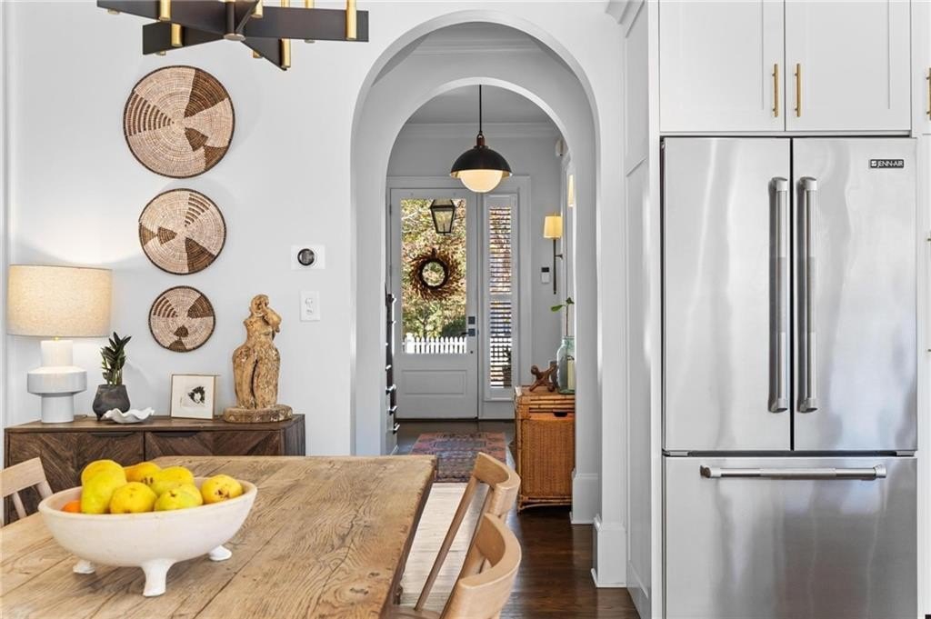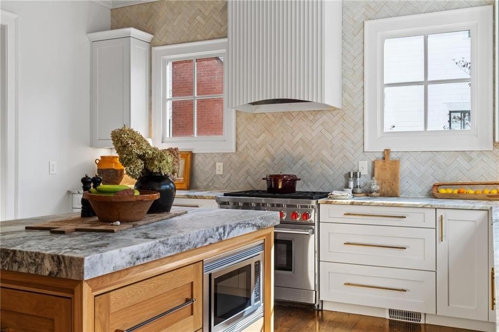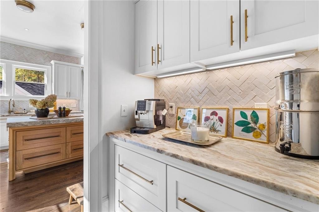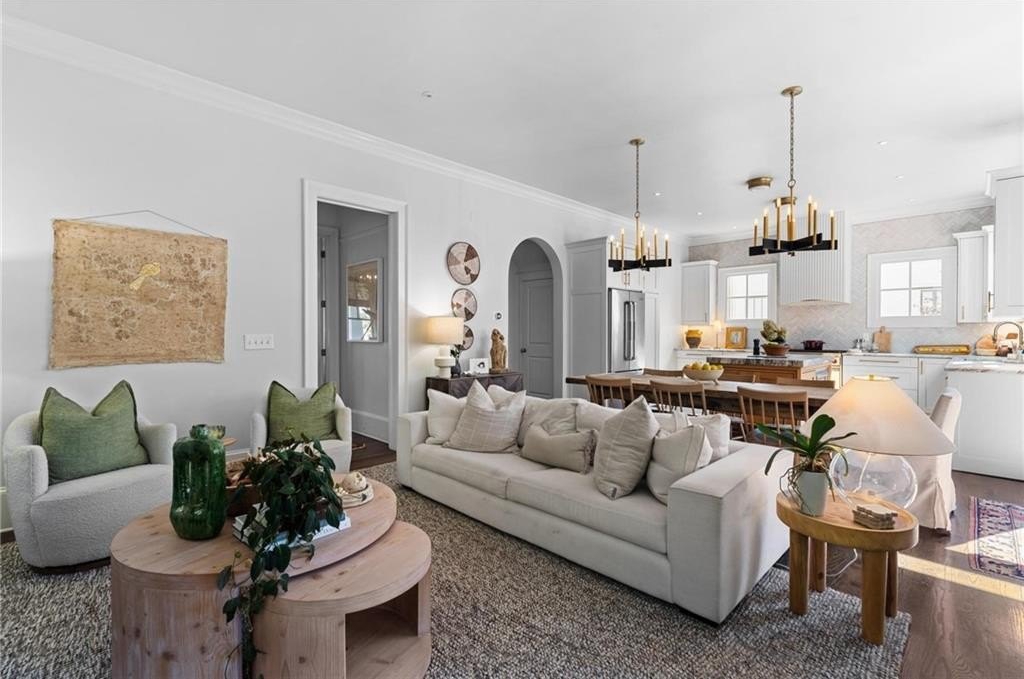 At the heart of the home is a custom-designed chef’s kitchen, beautifully renovated with high-end cabinetry, designer fixtures, luxury appliances, and elevated storage solutions. It’s a true entertainer’s space, equally suited for dinner parties or casual mornings around the island.