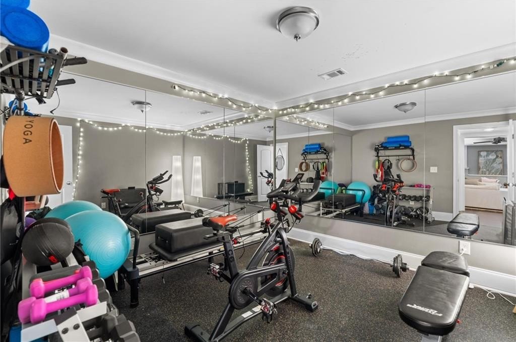 The finished terrace level expands the living space even further, offering a secondary lounge, dedicated home gym, and full bathroom.