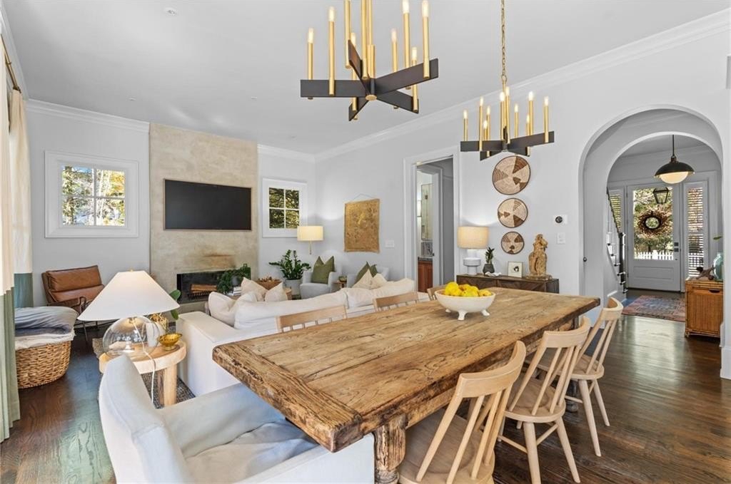 Welcome to life in Serenbe’s beloved Crossroads Hamlet, where timeless southern charm meets elevated modern living. This thoughtfully designed home welcomes you with a classic Southern front porch—perfect for slow coffee mornings or relaxing evening conversations. Step inside to a light-filled foyer that opens into a warm, open-concept living and dining space designed for connection and effortless flow.