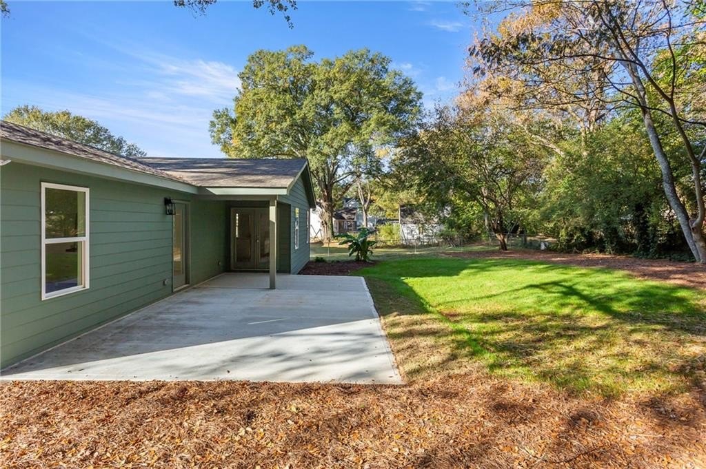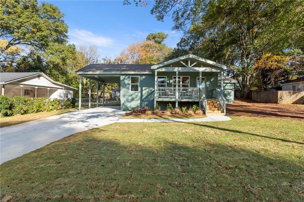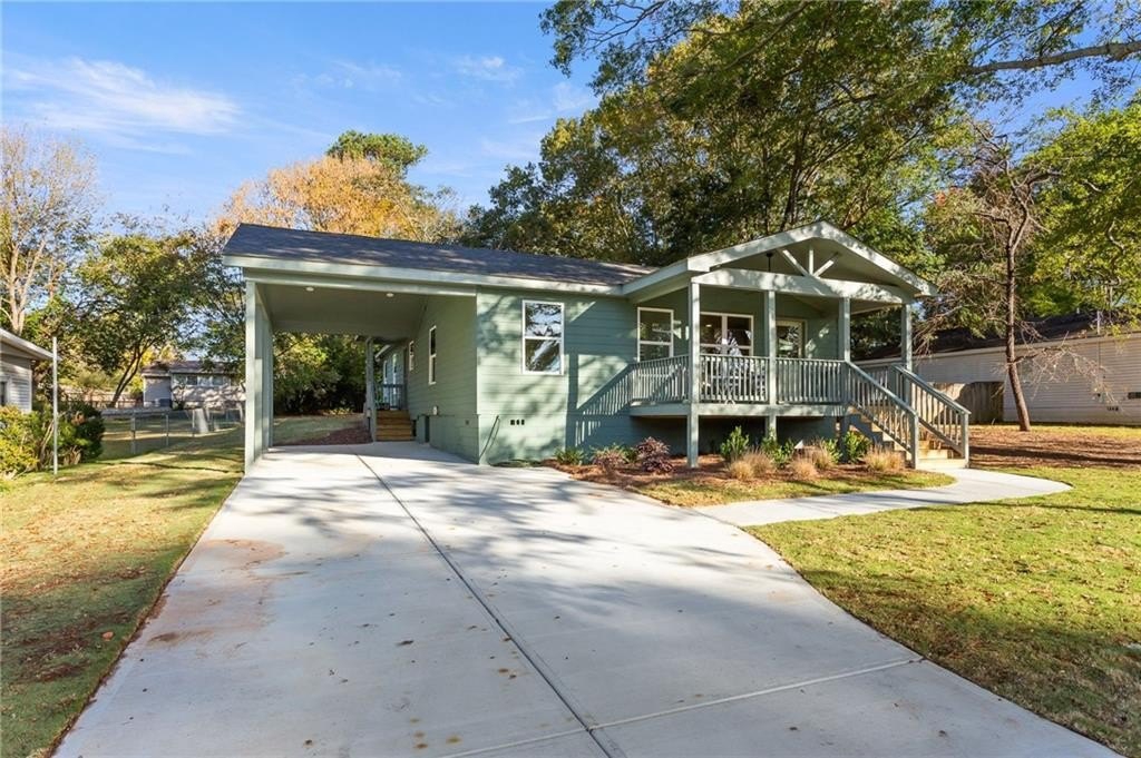 Outside, the fenced-on-three-sides backyard offers both privacy and space for play or relaxation. A large partially covered patio extends your living outdoors for al-fresco dinners, weekend barbecues, or simply unwinding under the Georgia skies. An attached carport provides shelter and convenience.