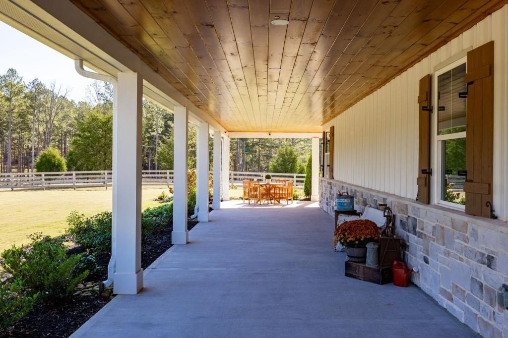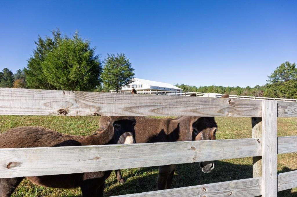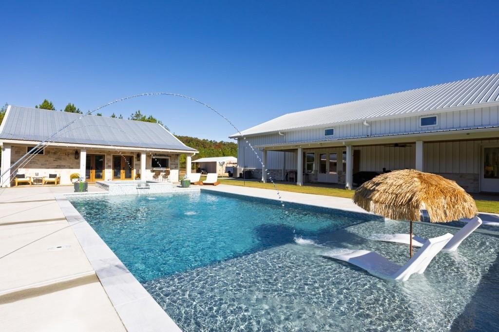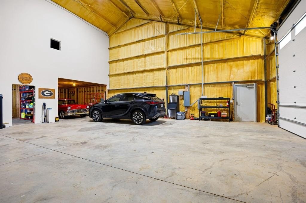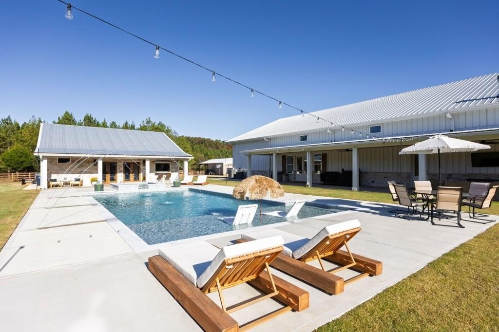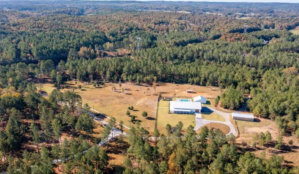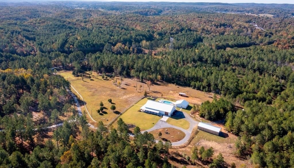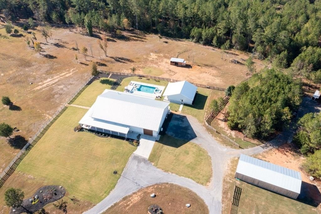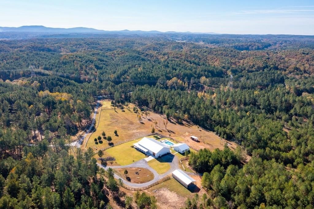 Welcome to this breathtaking custom barndominium with loads of finished space that is nestled on 30 picturesque acres of fenced pasture and wooded serenity. Plus an additional second home, this property offers exceptional versatility -- perfect for a family estate, horse farm, or a possible wedding venue. Step inside to discover a spacious 60' x 33' great room with soaring ceilings, a grand wood-burning fireplace with gas starter, and a custom mantle crafted from reclaimed wood from Jasper, GA. The open-concept kitchen is a true showpiece, featuring 2 large islands, Caf appliances, a six-burner gas range, double ovens, three dishwashers, a double refrigerator with beautiful bronze fixtures, a farmhouse sink, and quartz countertops. The walk-in pantry room includes butcher block counters, a second sink, and space that could easily double as a home office or prep area. Luxury continues throughout with Gore-Tex LVP flooring and thoughtful custom touches in every room. The laundry/mudroom features brick flooring, a gentle wash sink, custom washer/dryer station, built-in dog bath and shower, and even a pot filler for pet care convenience. Three fireplaces, including one in the master bedroom that adds warmth and character throughout. The unbelievable master bath offers a spa-like retreat with a free-standing tub and a large walk-in shower with multiple shower heads. The second home includes a gorgeous kitchen with a large butcher block island, leathered granite countertops, a gas stove, and a huge farmhouse sink and roll-up window. It offers two bedrooms and one and a half baths, with the full bath featuring a walk-in shower. And this home has a second washer and dryer for added convenience. Outdoors, enjoy a large, resort-style in-ground pool surrounded by beautifully landscaped flowerbeds, all maintained by a full sprinkler system. Exterior speakers make this the perfect space for entertaining or relaxing. Sprawling fenced pastures, mature trees, and peaceful surroundings make this one-of-a-kind property the ultimate blend of modern luxury and rustic charm. A rare opportunity to own a truly extraordinary estate -- ready to welcome you home.