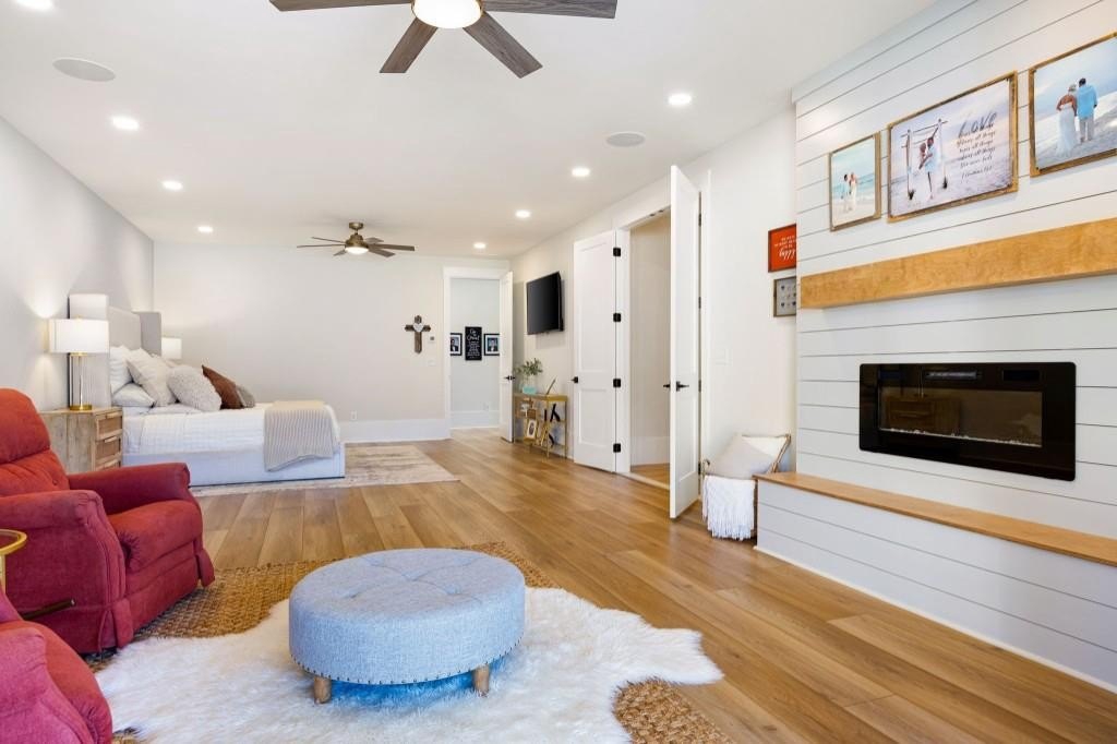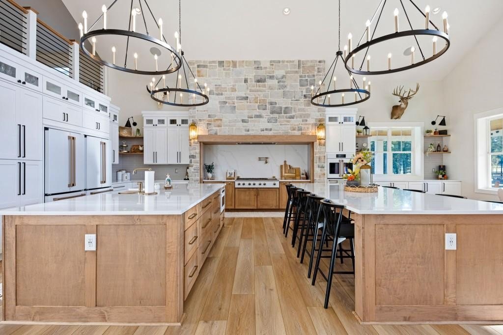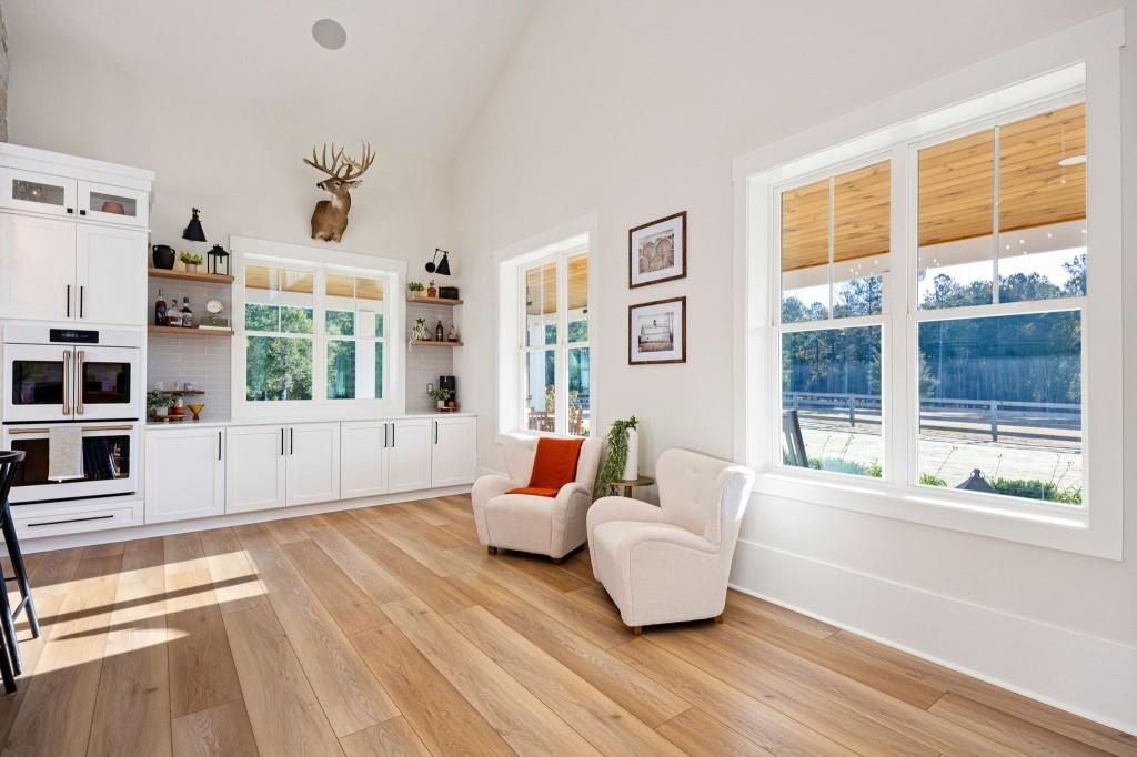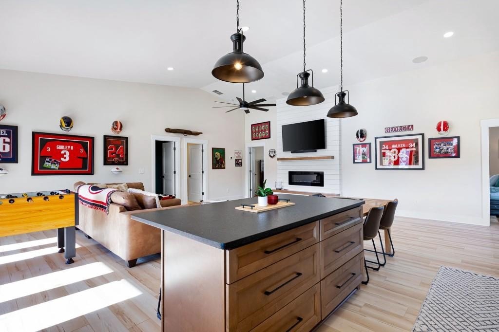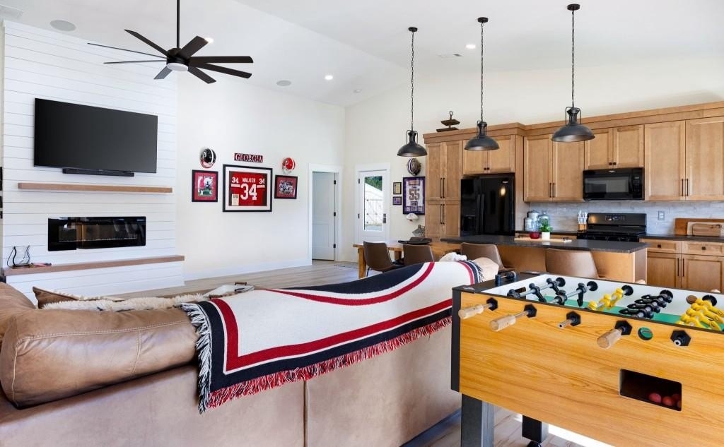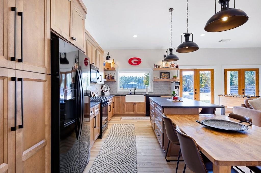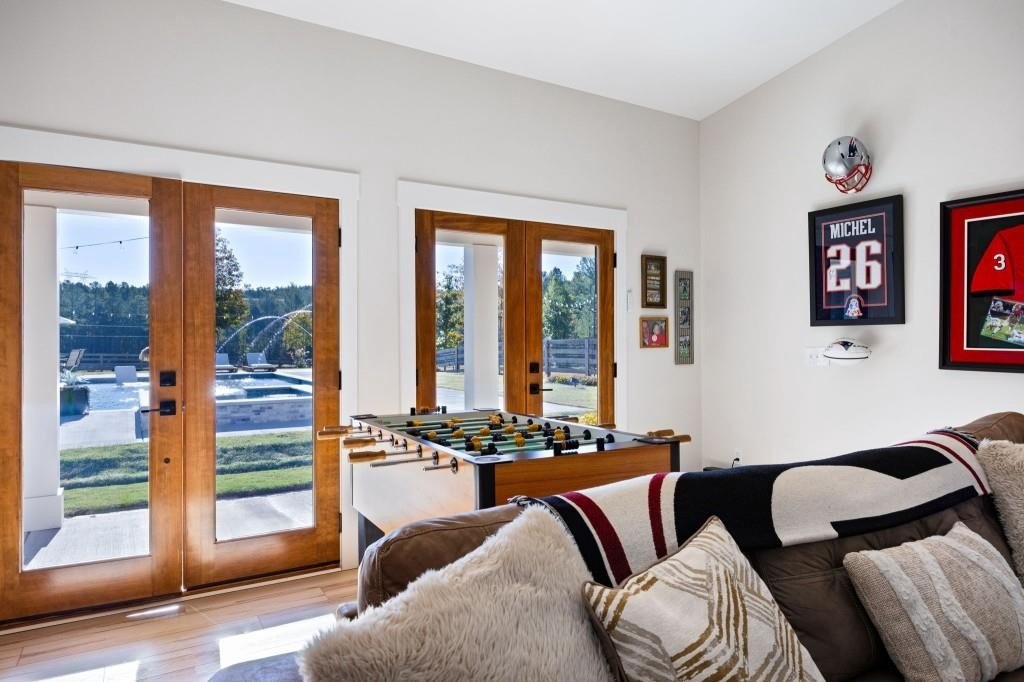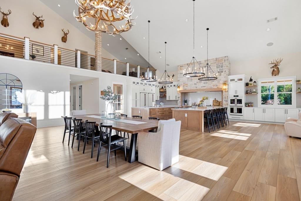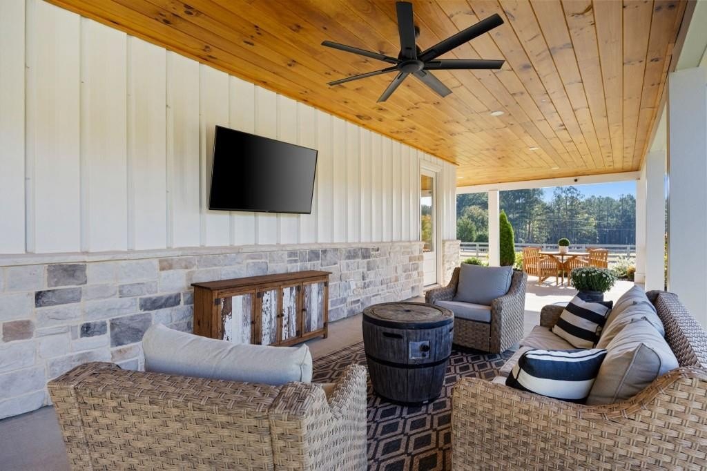 Welcome to this breathtaking custom barndominium with loads of finished space that is nestled on 30 picturesque acres of fenced pasture and wooded serenity. Plus an additional second home, this property offers exceptional versatility -- perfect for a family estate, horse farm, or a possible wedding venue. Step inside to discover a spacious 60' x 33' great room with soaring ceilings, a grand wood-burning fireplace with gas starter, and a custom mantle crafted from reclaimed wood from Jasper, GA. The open-concept kitchen is a true showpiece, featuring 2 large islands, Caf appliances, a six-burner gas range, double ovens, three dishwashers, a double refrigerator with beautiful bronze fixtures, a farmhouse sink, and quartz countertops. The walk-in pantry room includes butcher block counters, a second sink, and space that could easily double as a home office or prep area. Luxury continues throughout with Gore-Tex LVP flooring and thoughtful custom touches in every room. The laundry/mudroom features brick flooring, a gentle wash sink, custom washer/dryer station, built-in dog bath and shower, and even a pot filler for pet care convenience. Three fireplaces, including one in the master bedroom that adds warmth and character throughout. The unbelievable master bath offers a spa-like retreat with a free-standing tub and a large walk-in shower with multiple shower heads. The second home includes a gorgeous kitchen with a large butcher block island, leathered granite countertops, a gas stove, and a huge farmhouse sink and roll-up window. It offers two bedrooms and one and a half baths, with the full bath featuring a walk-in shower. And this home has a second washer and dryer for added convenience. Outdoors, enjoy a large, resort-style in-ground pool surrounded by beautifully landscaped flowerbeds, all maintained by a full sprinkler system. Exterior speakers make this the perfect space for entertaining or relaxing. Sprawling fenced pastures, mature trees, and peaceful surroundings make this one-of-a-kind property the ultimate blend of modern luxury and rustic charm. A rare opportunity to own a truly extraordinary estate -- ready to welcome you home.