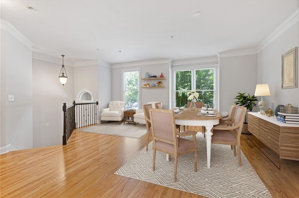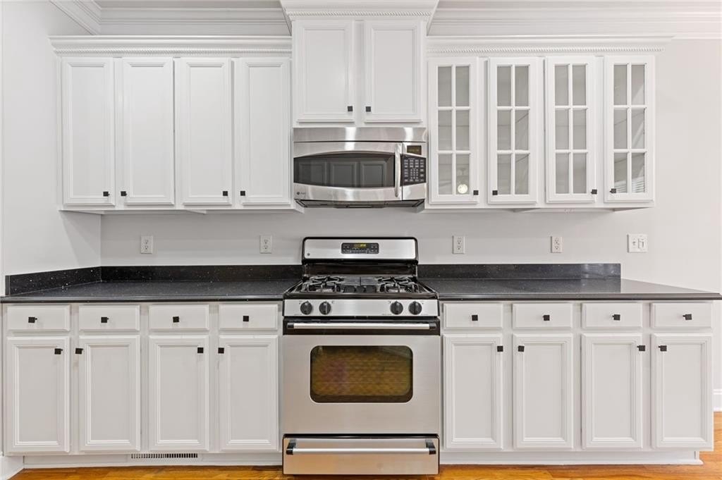 From the inviting foyer, walk into the light-filled additional living area with open concept dining room for 10+ seating. Hardwood flooring throughout main level. The UPDATED KITCHEN boasts white cabinetry, offering a striking contrast with the elegant black granite countertops, stainless steel appliances, a breakfast bar, plenty of cabinetry with new hardware, and a large walk-in pantry. Open concept kitchen, eat-in kitchen dining area, and family room are ideal for entertaining. Just off the main living area is a generously sized deck, complete with a gas grill, offering the perfect space for outdoor dining or simply relaxing. Upstairs, the oversized master suite features beautiful wood flooring, a comfortable sitting area, and a spa-like ensuite bath with two vanities, a separate shower, a soaking tub, and a large walk-in closet that even has room for an island! Two additional bedrooms, a full bath, and a convenient laundry closet round out the upper level. Finished basement contains 4th bedroom with full ensuite bath perfect for guests or can be used as an office/flex space. Additional storage closets located on basement/ground level. 2-car garage has extra space for storage and a separate exterior door. Additional parking in driveway and plenty of community guest parking. You will love this quaint neighborhood and all it has to offer!