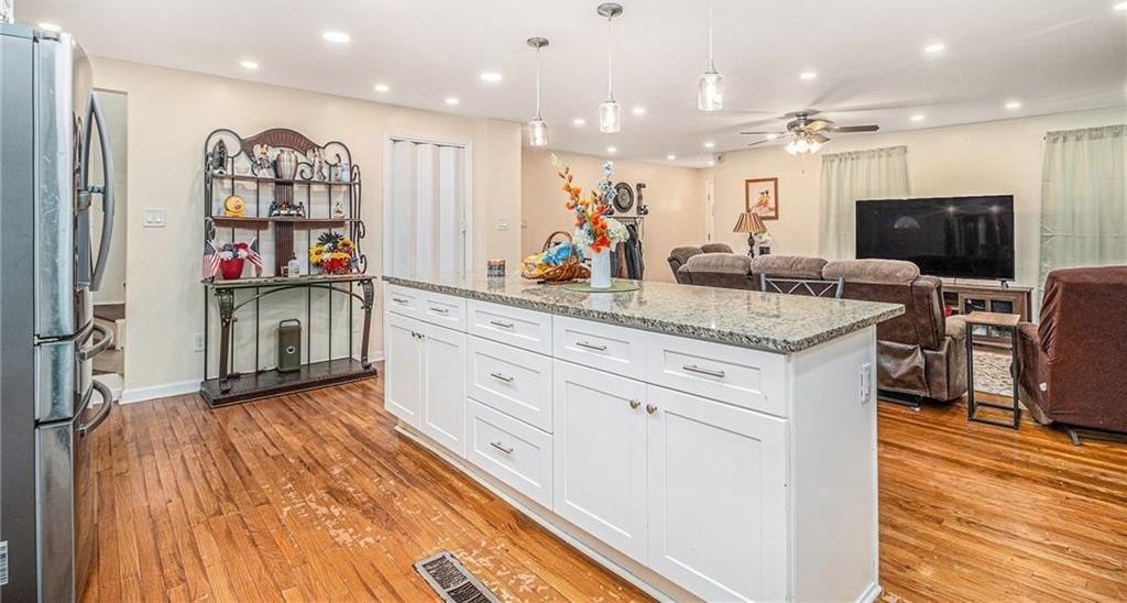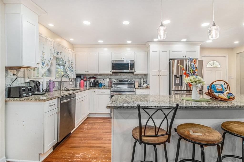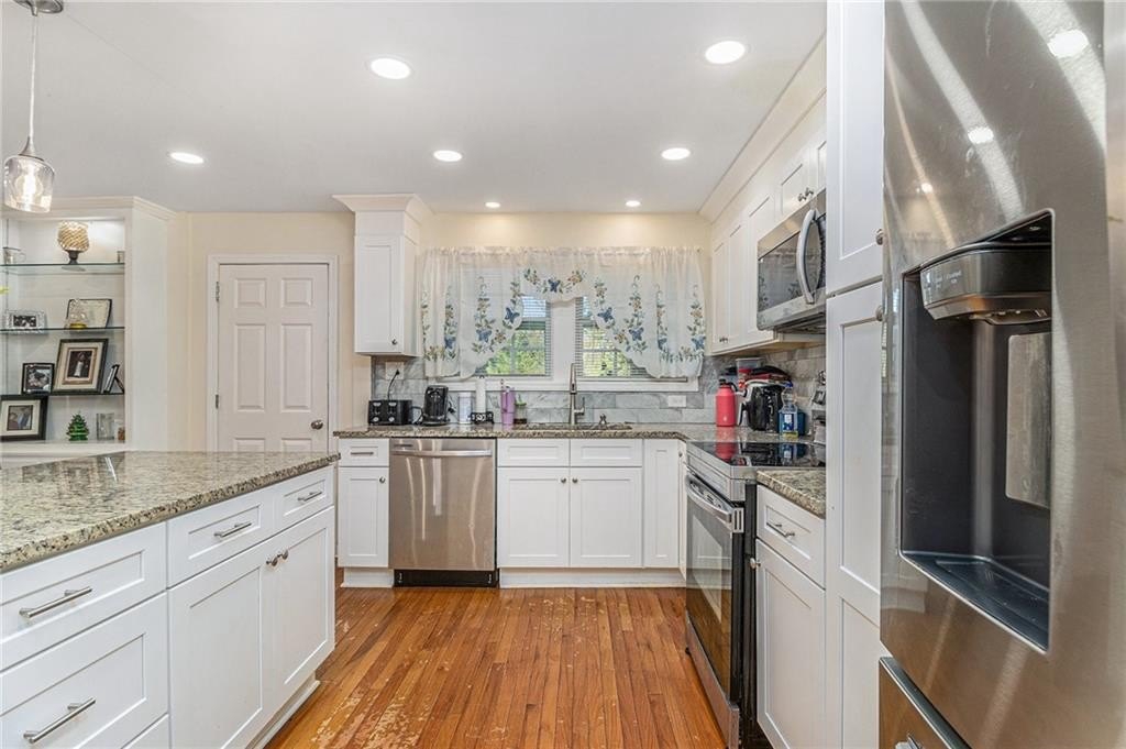 Welcome to your dream home! This fully renovated bungalow offers comfortable, modern living space on more than half an acre, giving your family plenty of room to relax, play, and grow — all with no HOA. Step inside to a warm, inviting living room featuring a cozy fireplace and custom built-in shelving — the perfect gathering spot for movie nights or quiet evenings by the fire. The updated kitchen boasts granite countertops, brand-new stainless steel appliances, and ample cabinet space for family meals and entertaining. The spacious upstairs primary suite is a true retreat, complete with hardwood floors and a luxurious bathroom featuring dual shower heads and a soaking tub. On the main level, you’ll find three large bedrooms and a hall bathroom with double vanities — ideal for busy mornings and shared family space. Enjoy outdoor living on the large front and back porches, perfect for cookouts, birthday parties, or relaxing after a long day. The fenced backyard provides a safe, open space for kids and pets to play, with plenty of room for a garden or future additions. With all-new electrical, plumbing, and sheetrock, this home combines classic charm with modern peace of mind. Nestled on a spacious lot with no HOA restrictions, you’ll have the freedom to truly make this home your own.