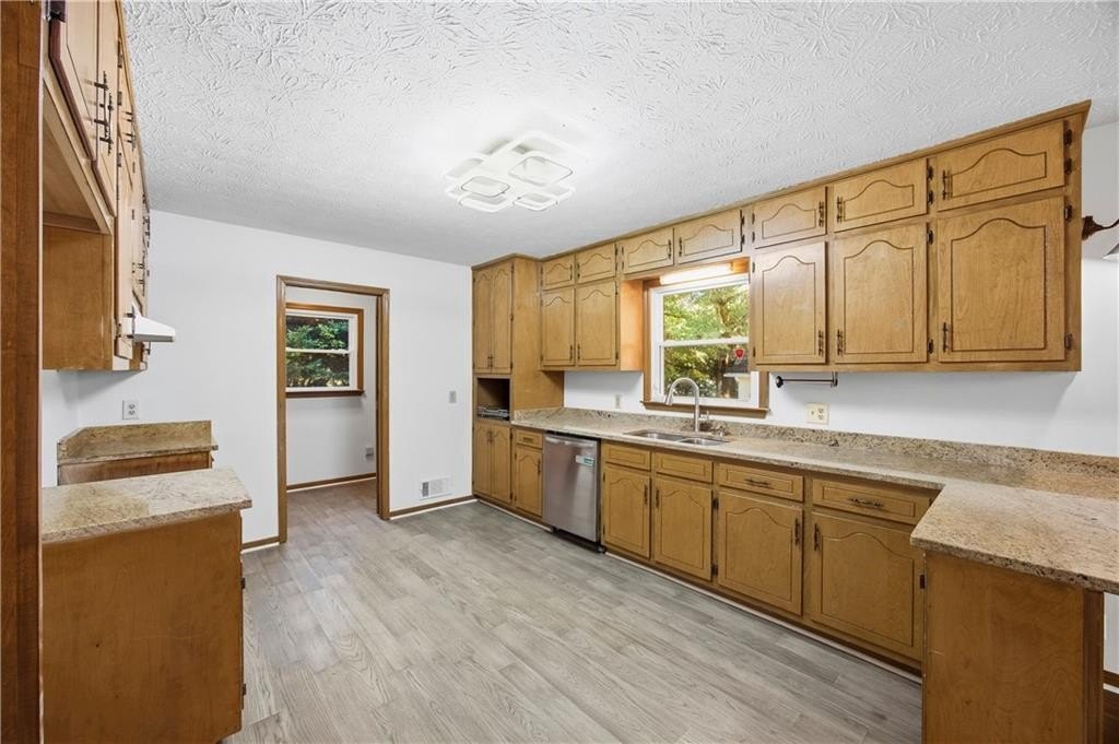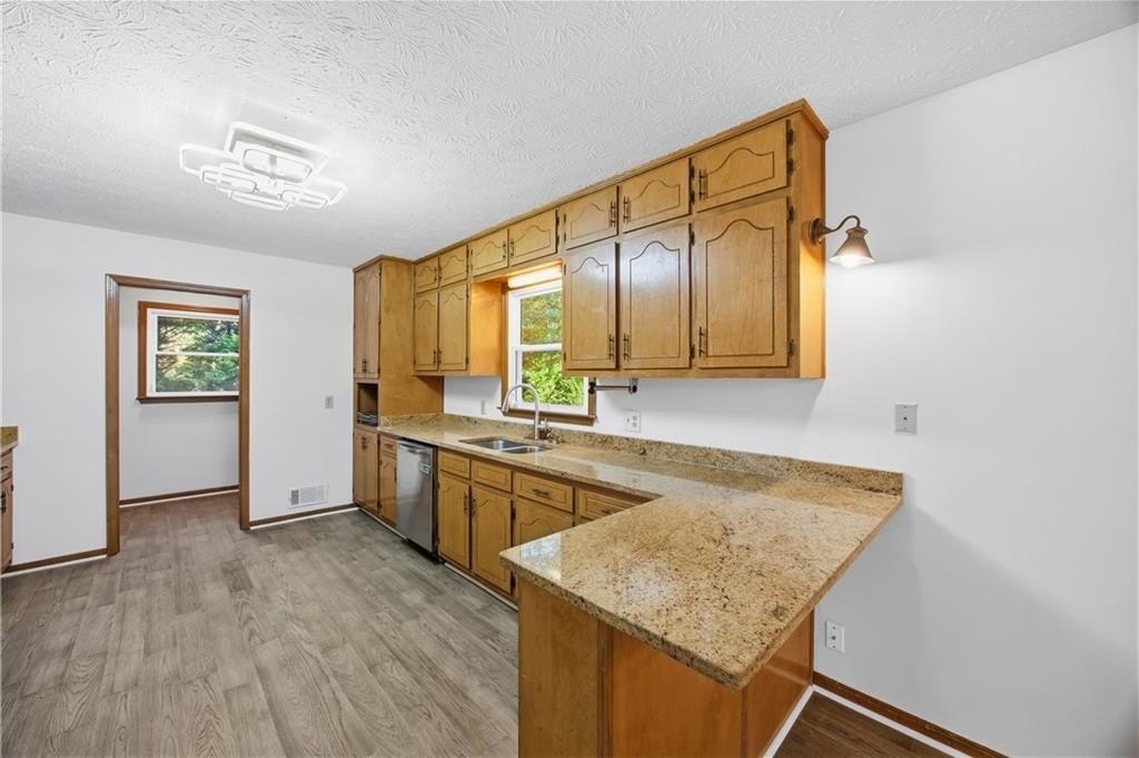 Inside, you’ll find a bright, open layout with fresh paint, new flooring, and an effortless flow throughout. The spacious kitchen features solid wood cabinetry and granite countertops, perfect for meal prep, entertaining, or casual family dinners. The primary suite offers a large walk in closet and a beautifully updated bath with a tiled shower, while two additional bedrooms provide flexibility for guests, kids, or a home office.