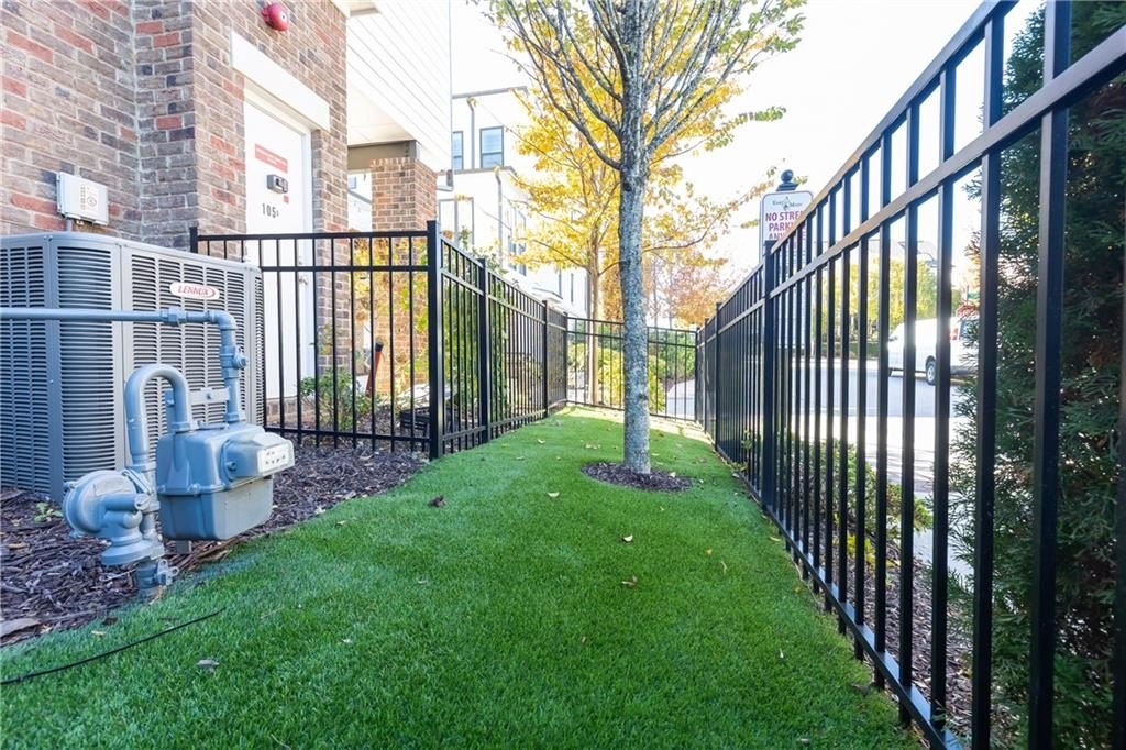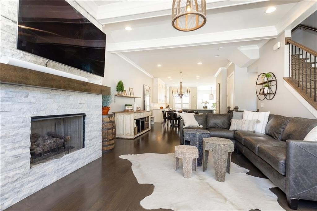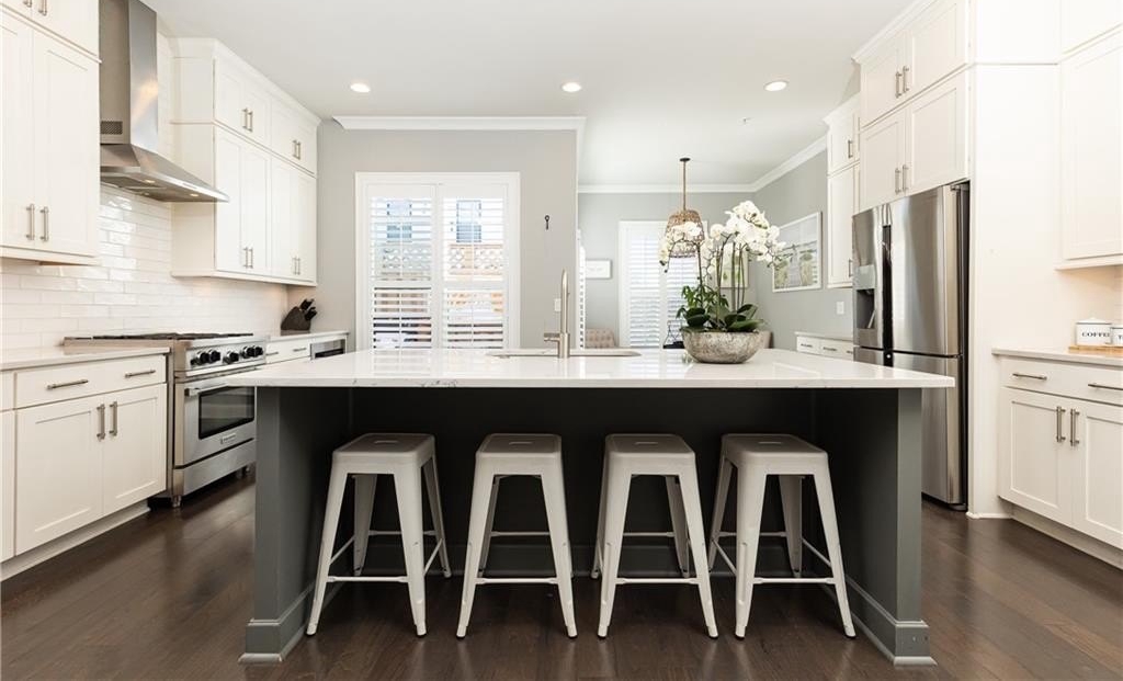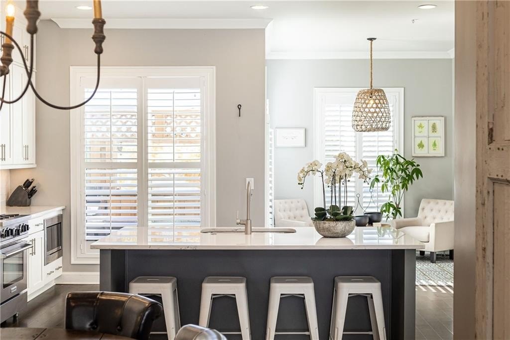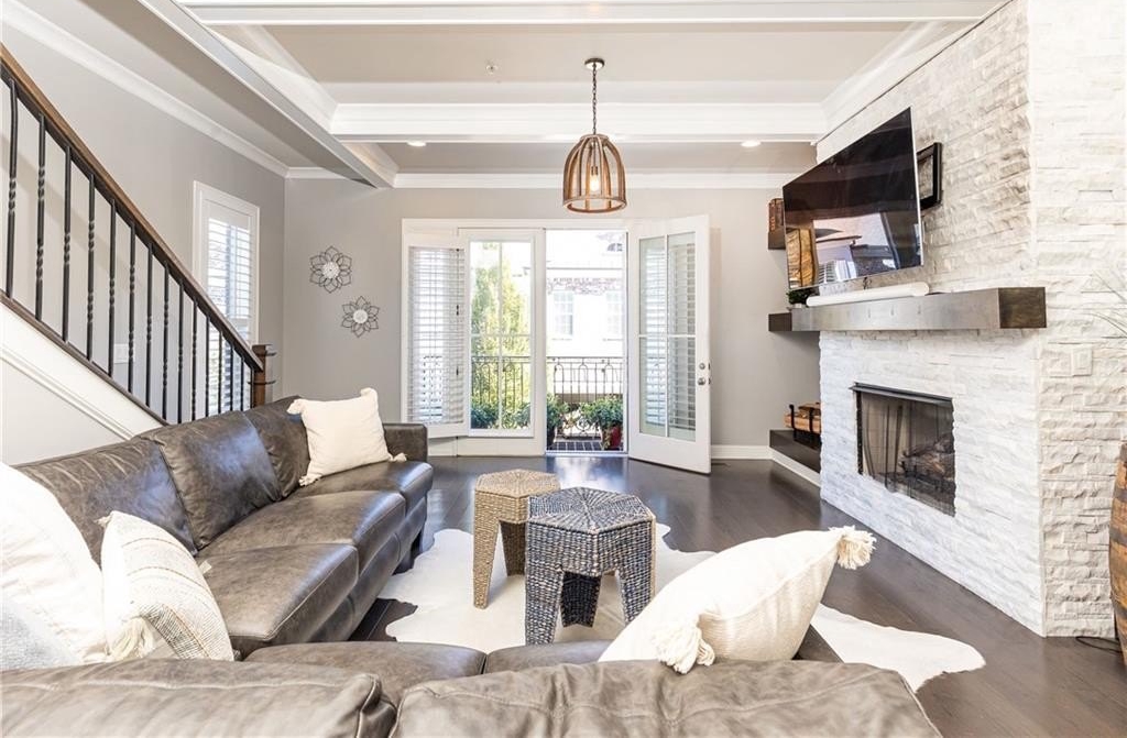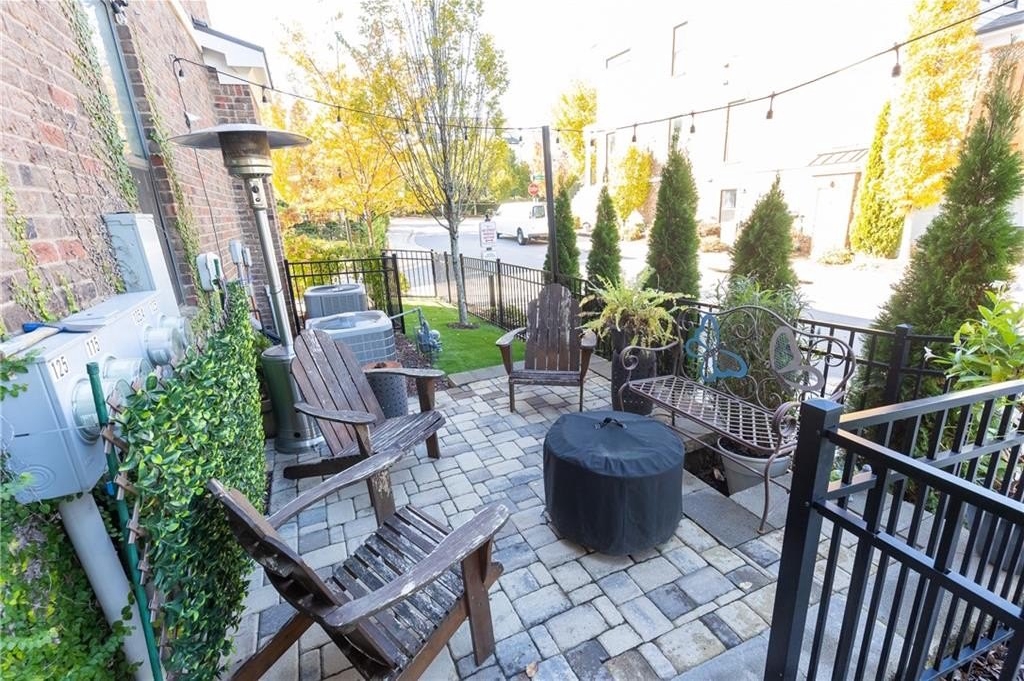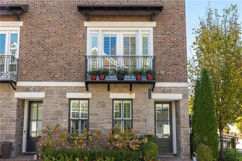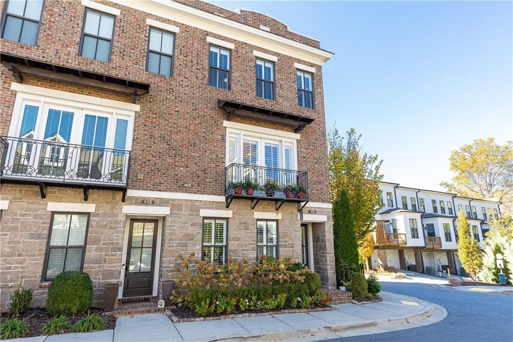 Elegant END UNIT in sought after East of Main, the Best location in all of Downtown Alpharetta! 3 stories of easy living. PLANTATION SHUTTERS THROUGHOUT THE ENTIRE HOME. The terrace level has a private guest ensuite which makes the perfect retreat for guests, elderly children, or the home office. The main level boast soaring 10' ceiling and an open concept! The family room is complete with a quartz stone fireplace and a beautiful double door balcony. A generous sized dining area and an amazing chefs kitchen, compete with quartz countertops, cabinets to the ceiling, ungraded range and much more. Next to the kitchen a cosy keeping room with multiple purposes uses and a deck for outside entertaining. The 3rd floor has a LARGE Owner's suite, gorgeous owner's bath with doorless shower, double sinks, and closet organizers in the closet. Completing the 3rd level is another generous sized guest ensuite and laundry. BUILT IN CLOSETS ORGANIZERS IN ALMOST EVERY CLOSET! The 2 car garage comes complete with a charging station. And Best of all is the COMPLETELY FENCED IN SIDE COURT YARD!! This home also has an elevator ready shaft. Adding to this Amazing home is it's in the heart of Downtown Alpharetta, Avalon, Alpha Loop, Farmer Market, shops, restaurants, live music and very easy access to GA400. Welcome Home!