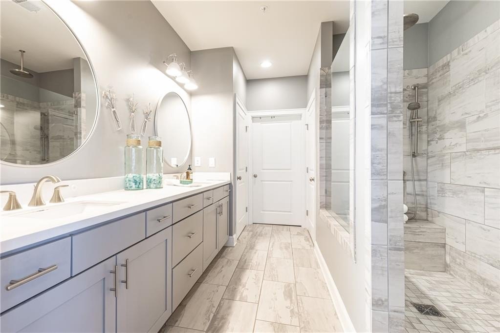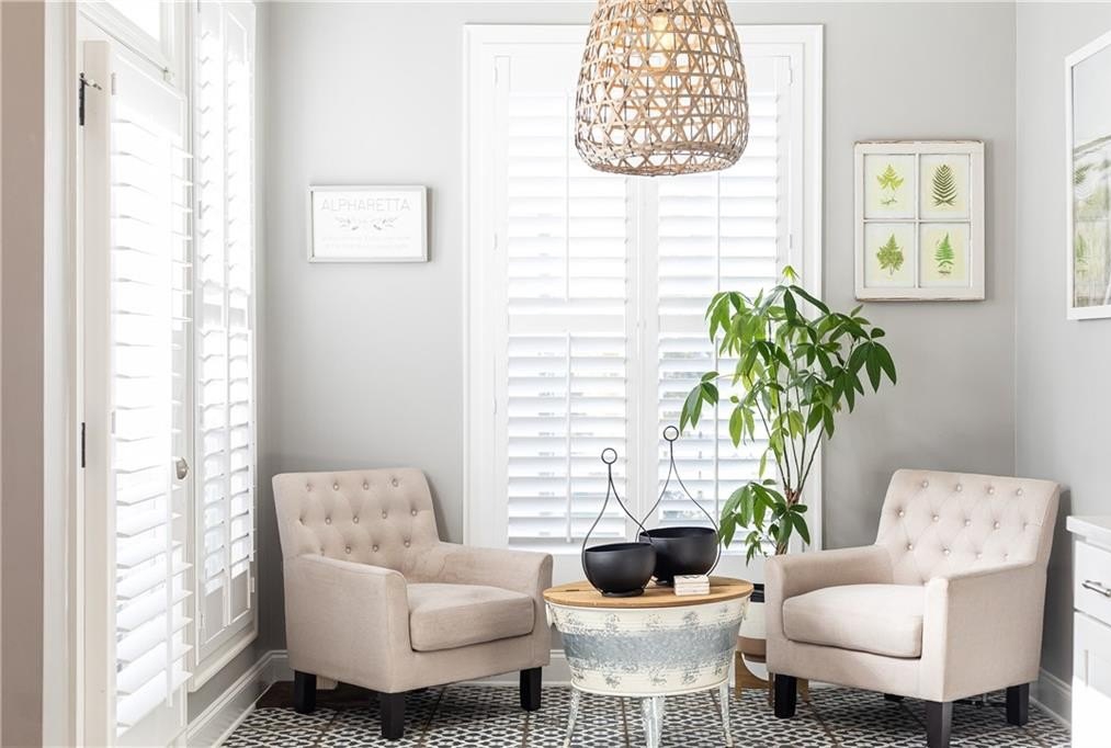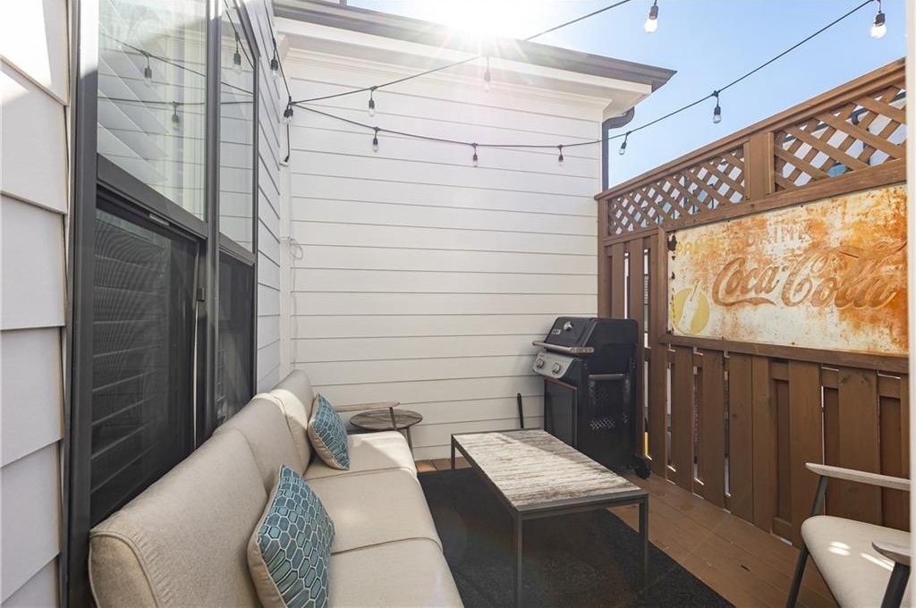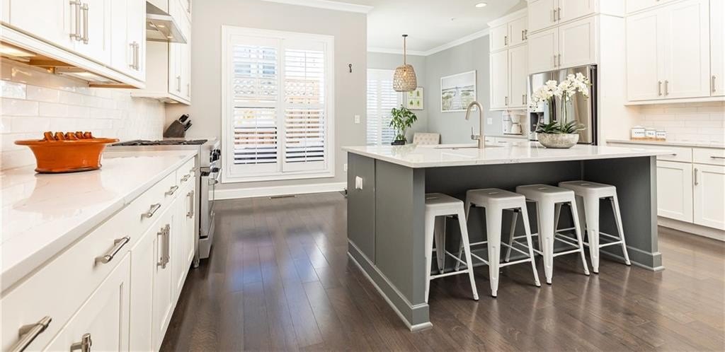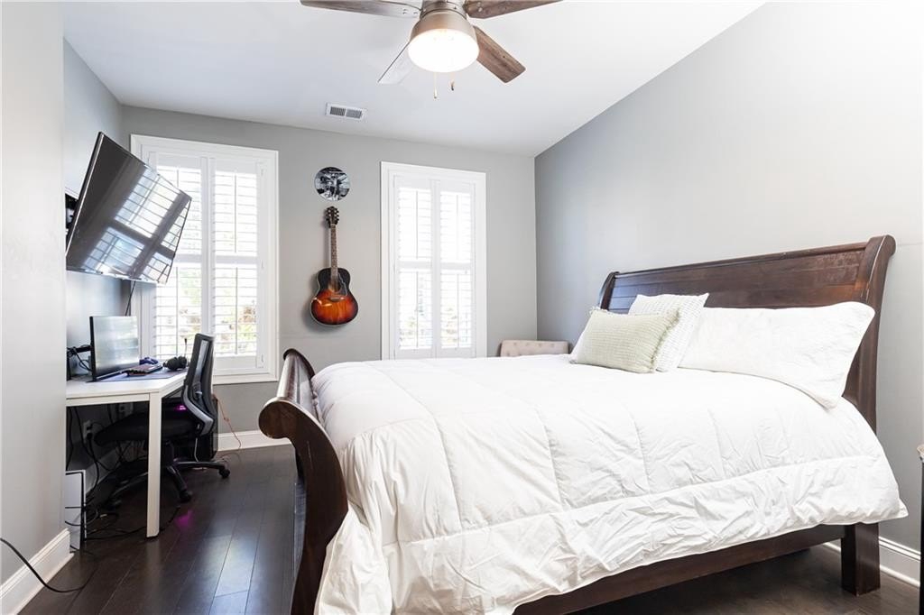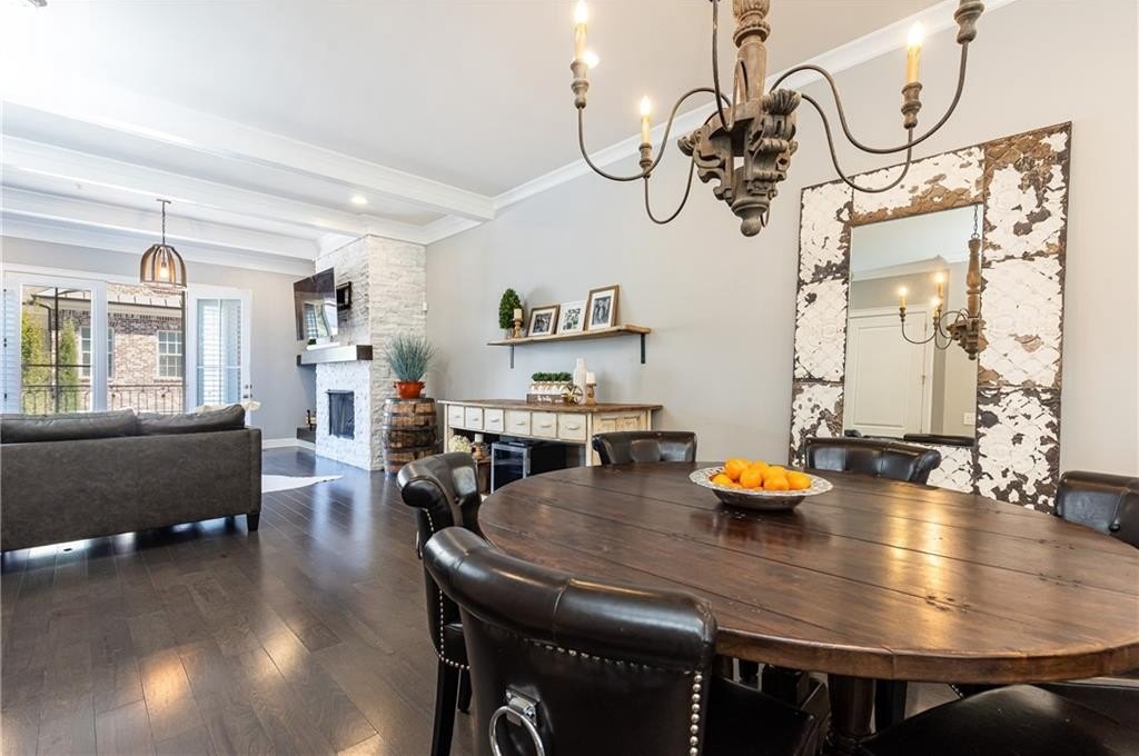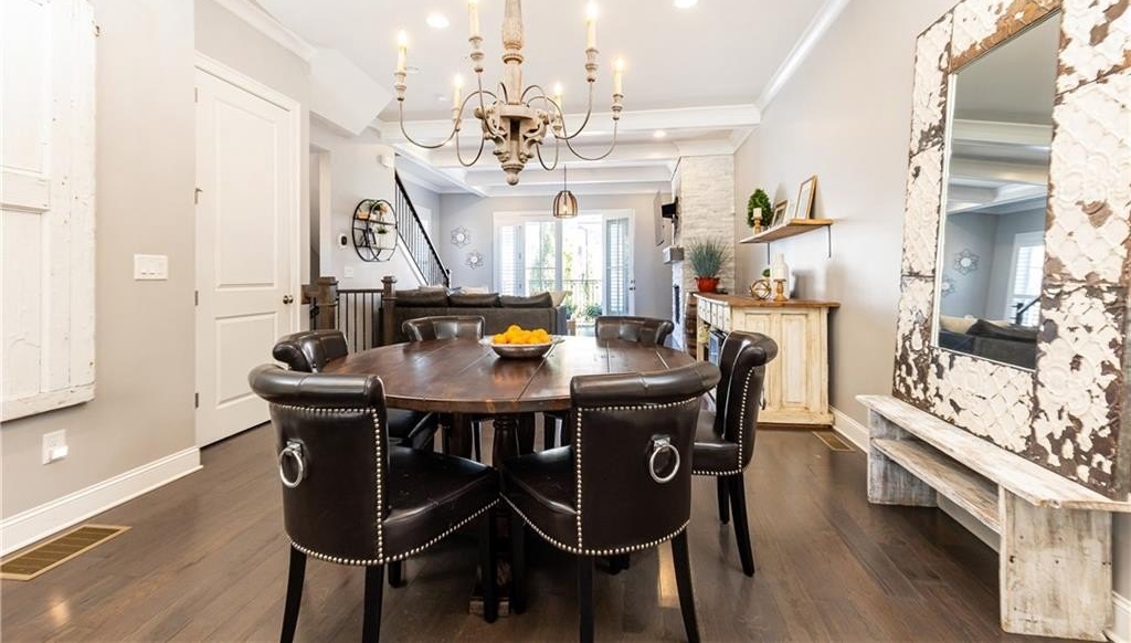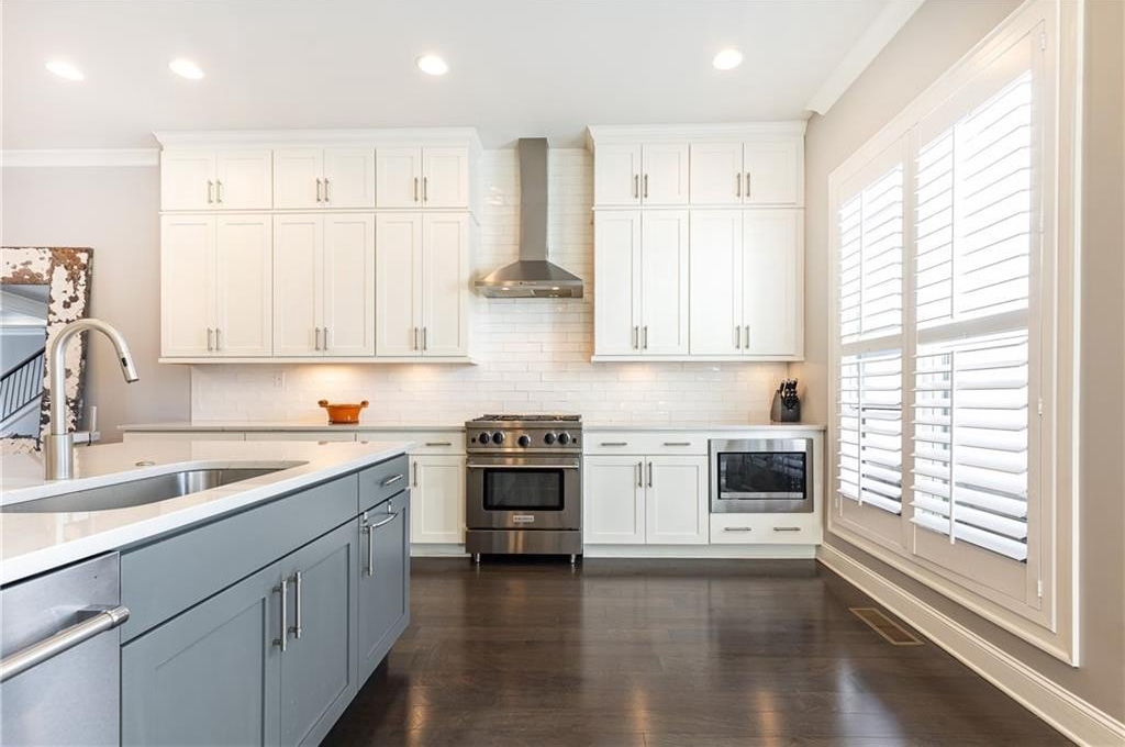 Elegant END UNIT in sought after East of Main, the Best location in all of Downtown Alpharetta! 3 stories of easy living. PLANTATION SHUTTERS THROUGHOUT THE ENTIRE HOME. The terrace level has a private guest ensuite which makes the perfect retreat for guests, elderly children, or the home office. The main level boast soaring 10' ceiling and an open concept! The family room is complete with a quartz stone fireplace and a beautiful double door balcony. A generous sized dining area and an amazing chefs kitchen, compete with quartz countertops, cabinets to the ceiling, ungraded range and much more. Next to the kitchen a cosy keeping room with multiple purposes uses and a deck for outside entertaining. The 3rd floor has a LARGE Owner's suite, gorgeous owner's bath with doorless shower, double sinks, and closet organizers in the closet. Completing the 3rd level is another generous sized guest ensuite and laundry. BUILT IN CLOSETS ORGANIZERS IN ALMOST EVERY CLOSET! The 2 car garage comes complete with a charging station. And Best of all is the COMPLETELY FENCED IN SIDE COURT YARD!! This home also has an elevator ready shaft. Adding to this Amazing home is it's in the heart of Downtown Alpharetta, Avalon, Alpha Loop, Farmer Market, shops, restaurants, live music and very easy access to GA400. Welcome Home!