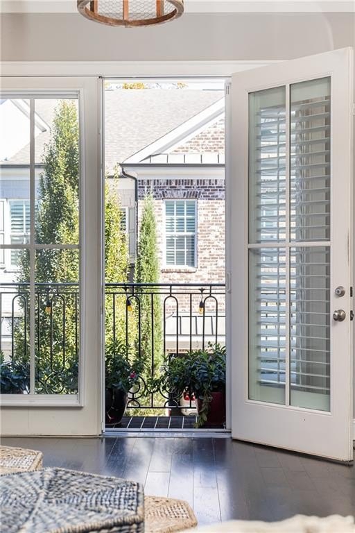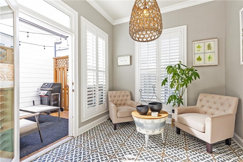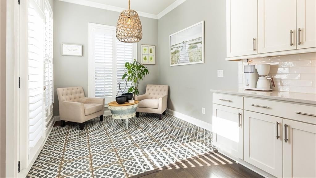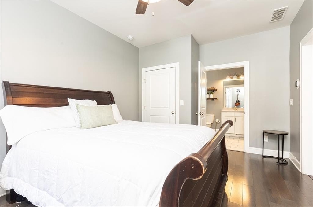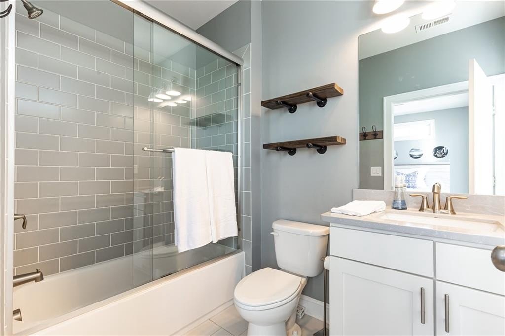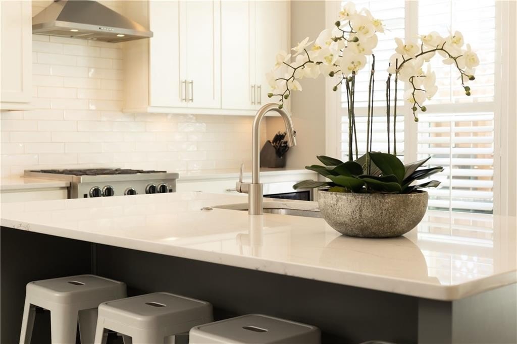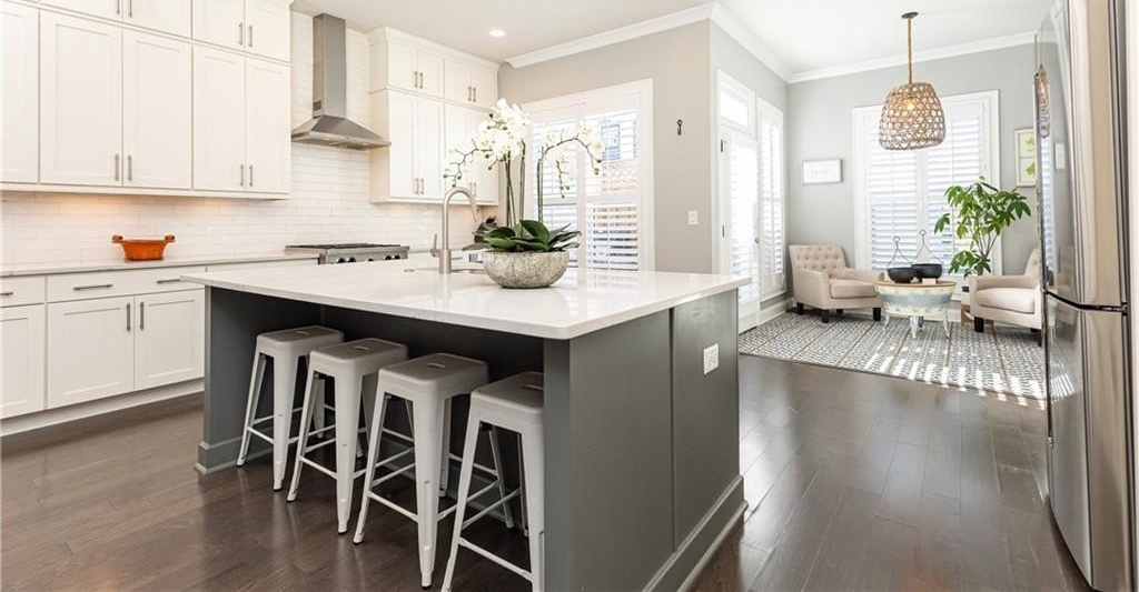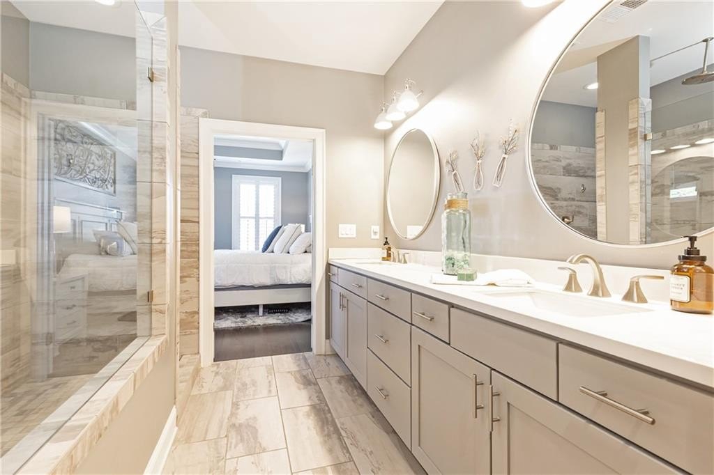 Elegant END UNIT in sought after East of Main, the Best location in all of Downtown Alpharetta! 3 stories of easy living. PLANTATION SHUTTERS THROUGHOUT THE ENTIRE HOME. The terrace level has a private guest ensuite which makes the perfect retreat for guests, elderly children, or the home office. The main level boast soaring 10' ceiling and an open concept! The family room is complete with a quartz stone fireplace and a beautiful double door balcony. A generous sized dining area and an amazing chefs kitchen, compete with quartz countertops, cabinets to the ceiling, ungraded range and much more. Next to the kitchen a cosy keeping room with multiple purposes uses and a deck for outside entertaining. The 3rd floor has a LARGE Owner's suite, gorgeous owner's bath with doorless shower, double sinks, and closet organizers in the closet. Completing the 3rd level is another generous sized guest ensuite and laundry. BUILT IN CLOSETS ORGANIZERS IN ALMOST EVERY CLOSET! The 2 car garage comes complete with a charging station. And Best of all is the COMPLETELY FENCED IN SIDE COURT YARD!! This home also has an elevator ready shaft. Adding to this Amazing home is it's in the heart of Downtown Alpharetta, Avalon, Alpha Loop, Farmer Market, shops, restaurants, live music and very easy access to GA400. Welcome Home!