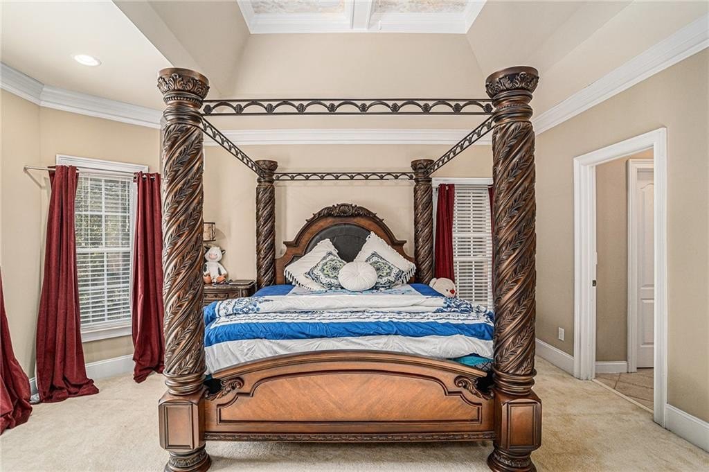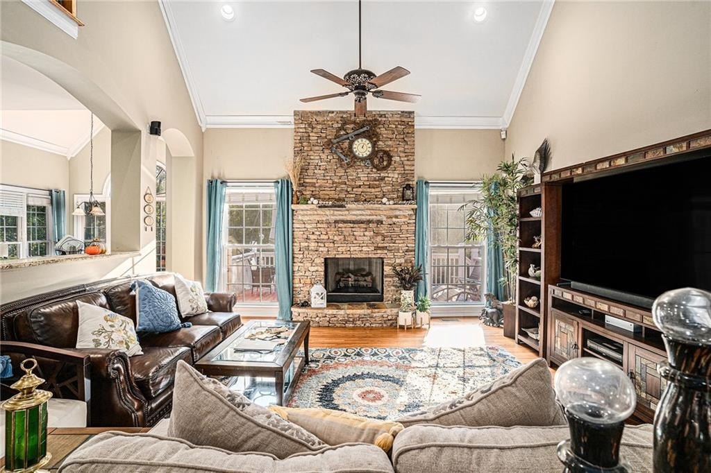 Welcome to this European-inspired home with touches of neo-colonial design, perfectly blending timeless elegance with functionality. Step inside the grand entrance with soaring 12+ ft ceilings, where natural light highlights an exclusive library with built-in bookcases to the right and a formal dining room to the left. The oversized family room flows seamlessly to the gourmet-style kitchen, offering views to the creek and rare direct water access—perfect for kayaking. Only a handful of neighborhoods offer this lifestyle!