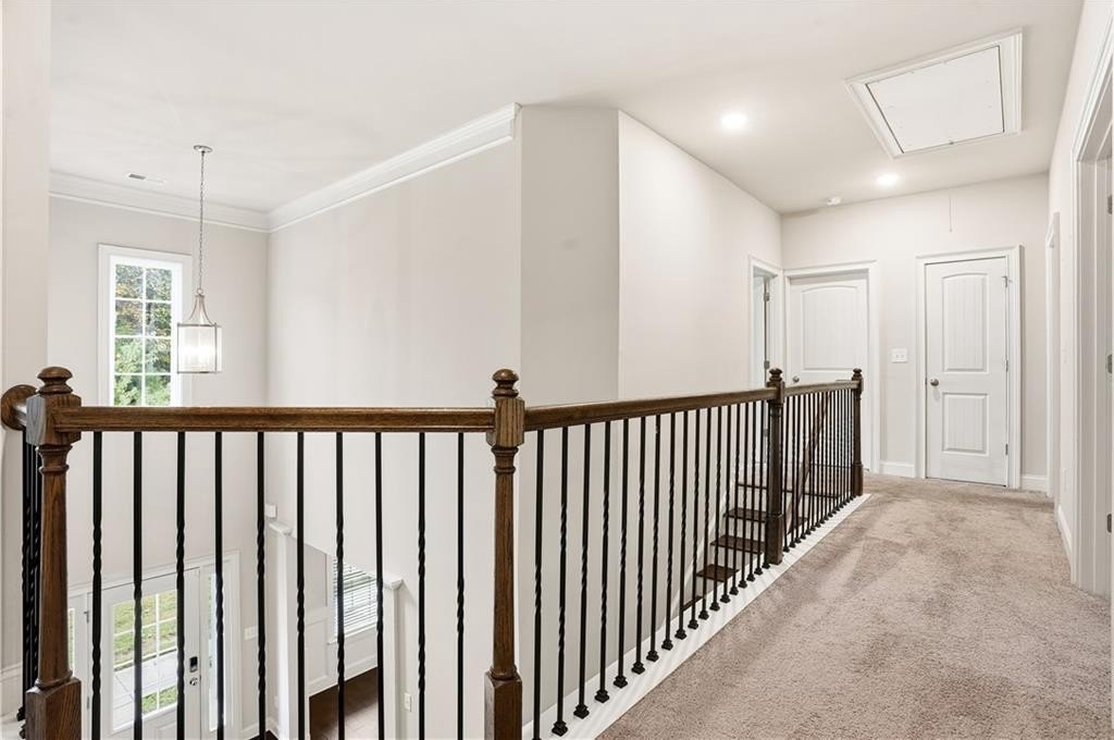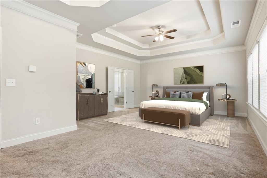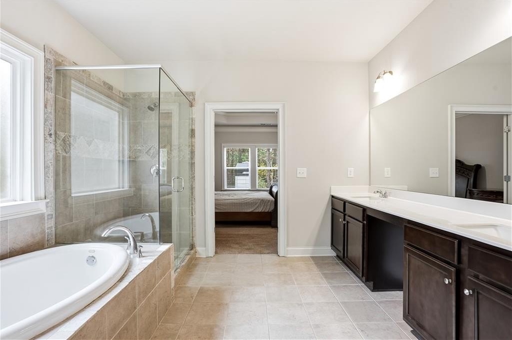 The primary suite is a true retreat, featuring a spacious sitting area and a luxurious spa-inspired bathroom with a soaking tub, separate shower, and double vanity. Every secondary bedroom is generously sized, providing comfort and flexibility for family and guests alike.