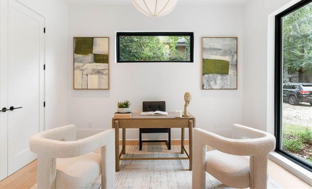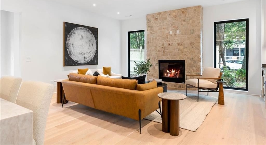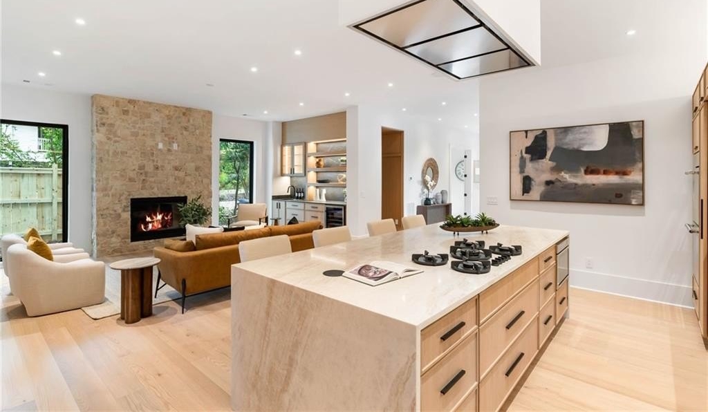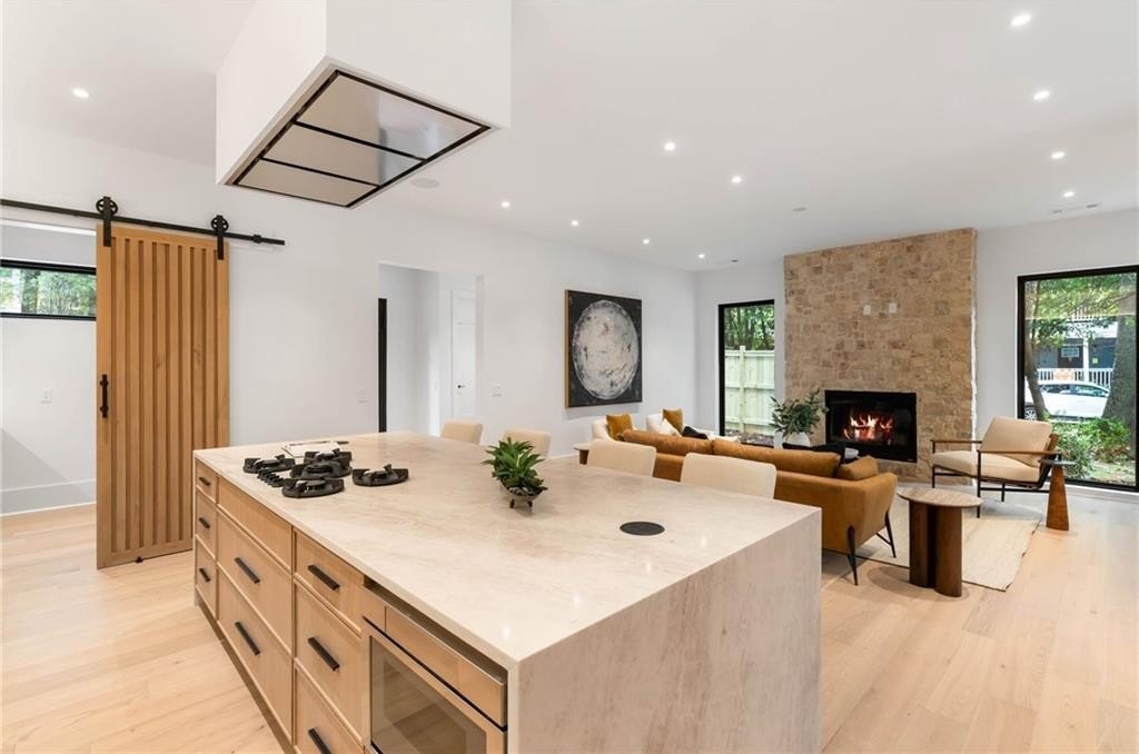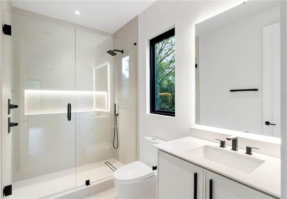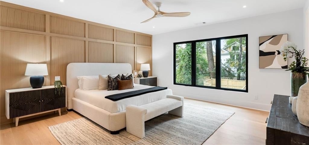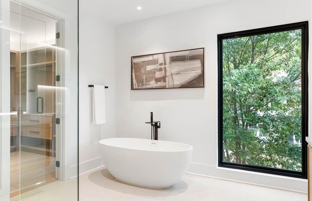 This remarkable modern cottage emphasizes quiet luxury within the walkable blocks of Virginia Highland. New construction and neighborhood vibe are a perfect match, blending high-end materials and understated elegance with cozy, traditional details. A dramatic custom metal-and-glass pivot front door welcomes guests into a light, neutral palette accented by black-metal finishes and designer decorative lighting. Architectural highlights include a custom White Oak accent wall in the primary bedroom and LED backlit vanity mirrors, shower niche lighting, and a freestanding soaking tub in the spa-inspired bath. The gourmet kitchen features custom White Oak soft-close cabinetry throughout — including the primary closet — Dekton countertops with a waterfall island and backsplash, an Elbrus Pitt Range cooktop from the European collection, and Thermador appliances with integrated paneling that conceals the fridge/freezer columns and dishwasher. The living room centers on a fireplace accent wall and a custom White Oak wet bar finished with Dekton and in-cabinet/under-shelf lighting, perfect for effortless entertaining. Private rear parking is accessible from the alley. This home delivers refined, livable luxury in close proximity to Piedmont Park and Atlanta BeltLine trails for outdoor recreation, and near Virginia Highland’s cafes, bakeries, restaurants, and bars. Minutes to Ponce City Market for shopping, dining, and entertainment. Easy access to Midtown and MARTA for downtown connections. Discover quiet-luxury living in Virginia Highland — schedule your private tour today.