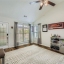 The light-filled kitchen offers a cheerful breakfast nook and bar, complemented by matching appliances, granite countertops, and a spacious pantry. Just off the kitchen, a cozy den opens to the patio and fenced backyard—ideal for entertaining outdoors.