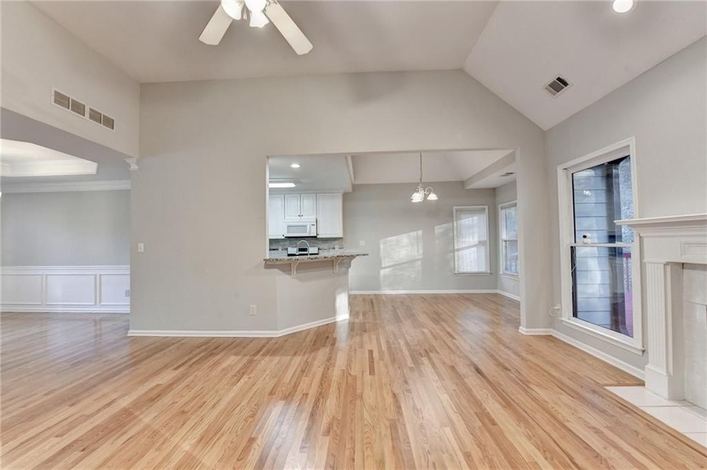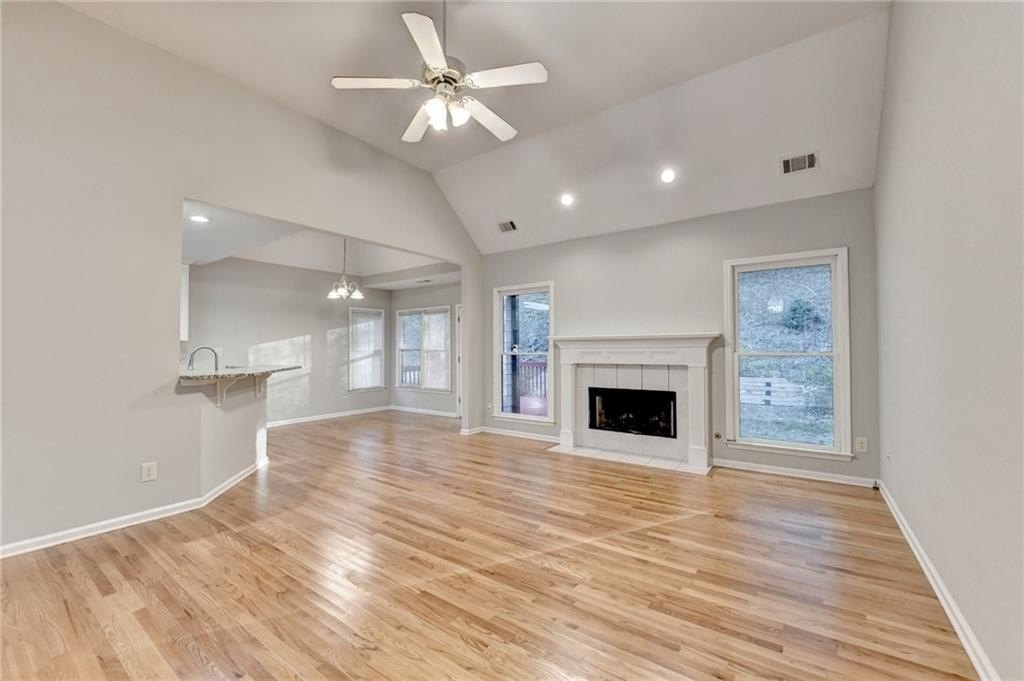 The main level features an open-concept floorplan with refinished hardwood floors and a cozy fireplace. Upstairs you’ll find the owner’s suite along with two additional secondary bedrooms.