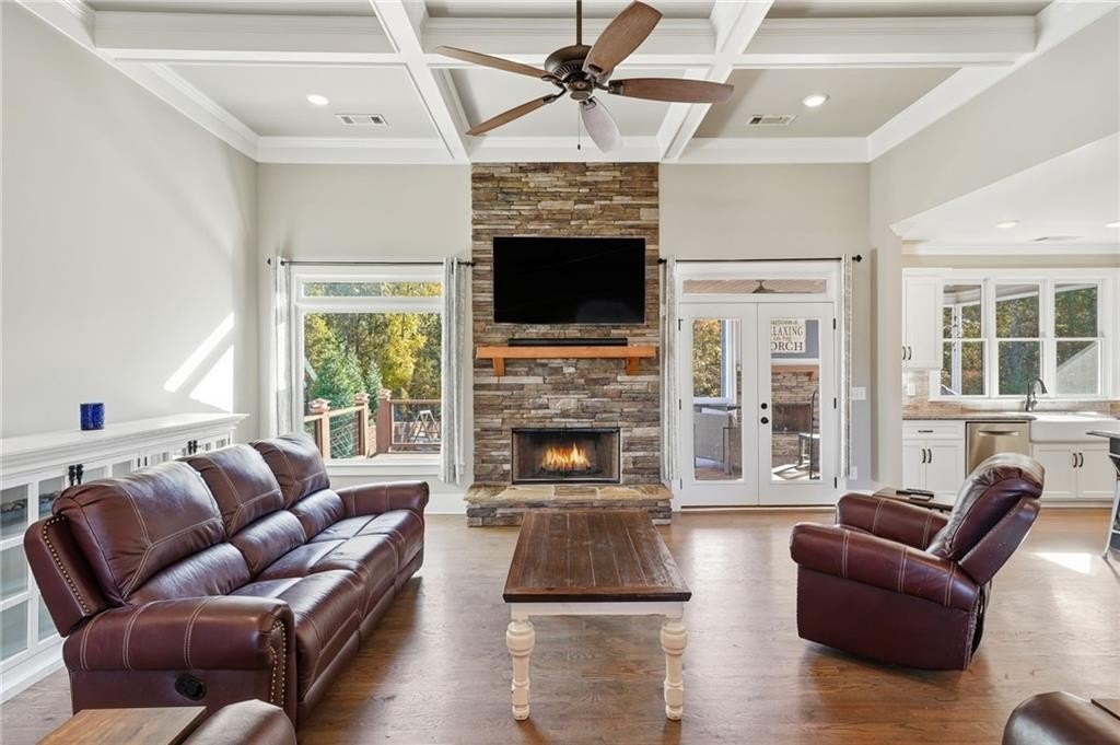 Check out this custom built ranch in Cherokee County! This home sits on a 1 acre lot and features a private, fenced back yard with a heated salt water pool and an open concept split bedroom floorplan with 3 bedrooms and two baths on the main level + a finished basement to include an additional bedroom, a bathroom, a living space and an additional laundry room (which is nice to have at pool level!). The 3 car garage has an epoxy floor coating and is extra deep to offer ample space for parking and storage! Throughout you will see many upgrades such as coffered ceilings in the family room, two stone fireplaces (one in the living room + one on the covered porch), a spacious kitchen granite countertops and upgraded appliances, hardwood floors throughout the entire main level and basement, tile flooring in all bathrooms and the laundry room, two large walk-in closets in the owner's suite, a spacious master bathroom with his/hers sides, plantation shutters throughout, an alarm system, tongue and groove ceilings on the front and back porches, a large covered back porch and grilling deck over looking the pool, an irrigation system in the front and side yards, a home generator, two hot water heaters, and so much more. This home has been extremely well cared for and meticulously maintained. The exterior was painted in 2023, the deck has been freshly stained and extensive landscaping has been done. This location sits right between Canton and Cartersville, offering easy access to both I-575 and 75, as well as Lake Allatoona.