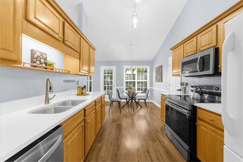Welcome home to this beautifully updated ranch in sought-after McEver Park! This move-in-ready 3 bed/2 bath home features an open floor plan, vaulted great room with fireplace, and a true custom sunroom that brings in amazing natural light-perfect as a second living space, reading room, or plant haven. The kitchen has been refreshed with quartz countertops, new stainless-steel stove and dishwasher, and ample cabinet storage. Enjoy new flooring throughout, a brand-new garage door, new gutters with guards, and a new water heater for peace of mind.