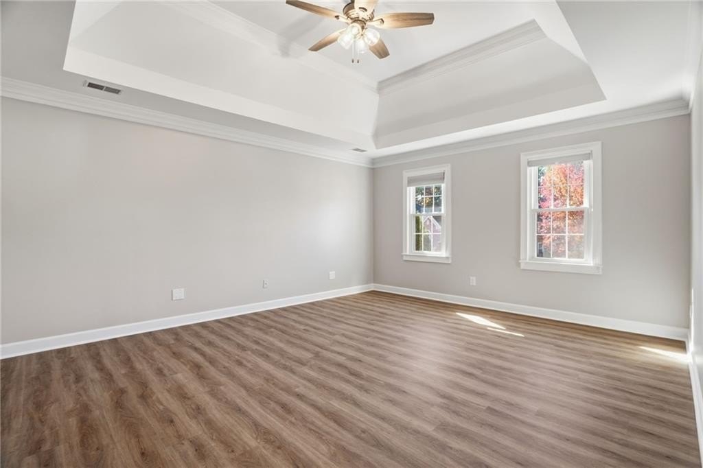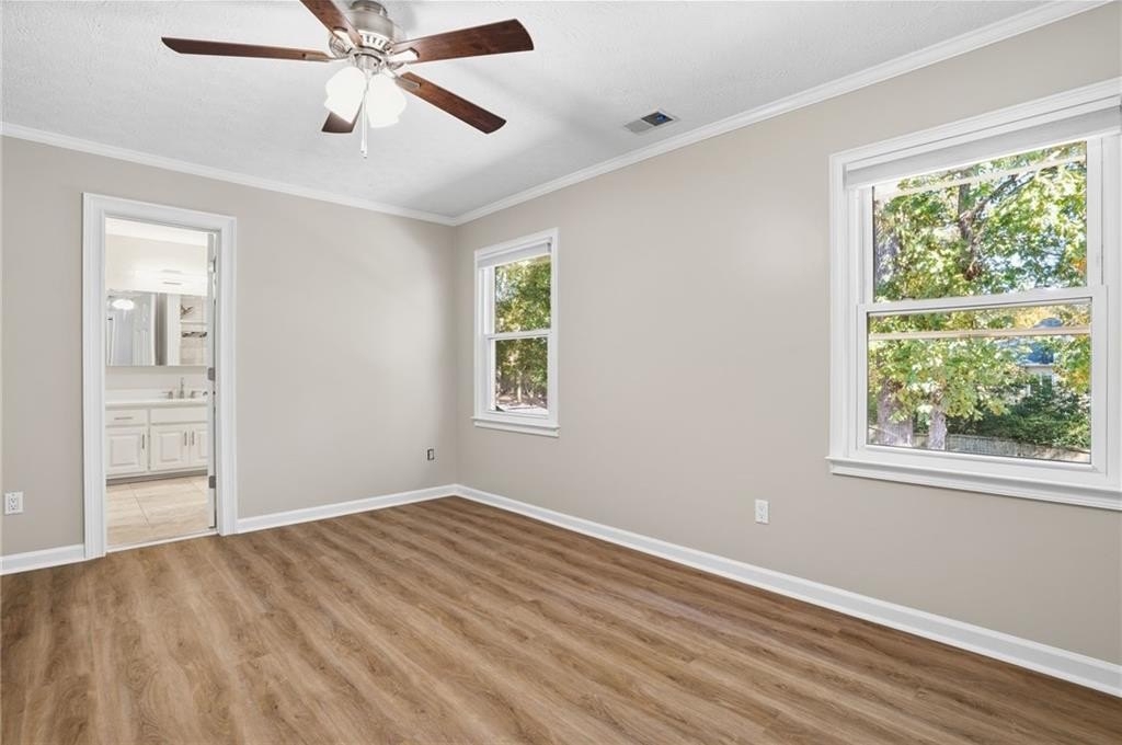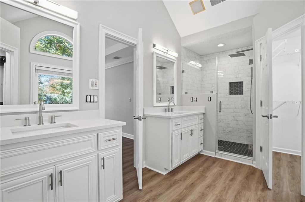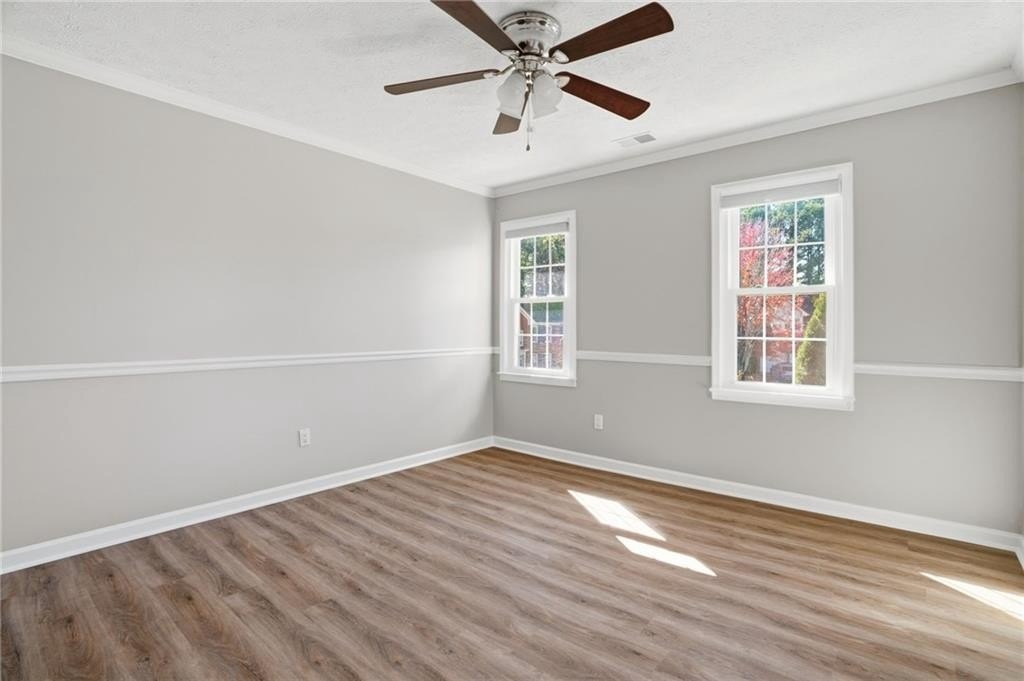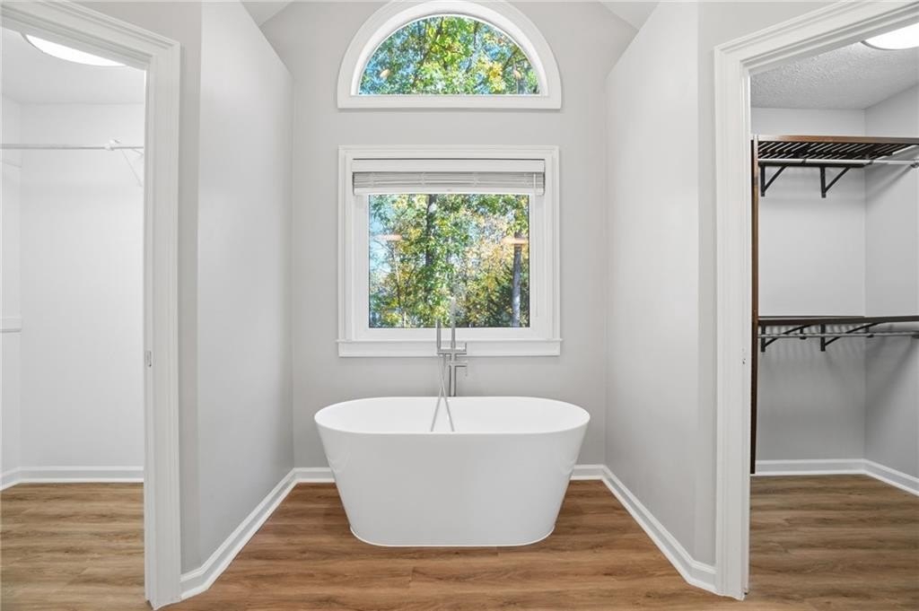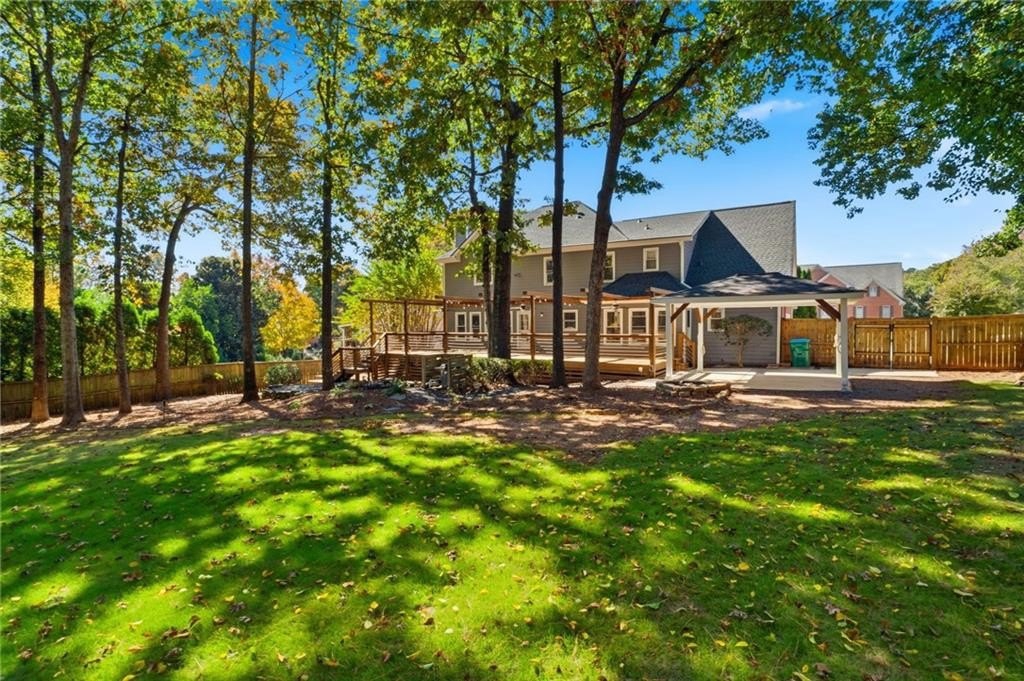 Step into timeless elegance in this beautifully updated 4-bedroom, 3.5-bath home with a full finished basement, located in the highly sought-after Parkview High School district. Nestled in a vibrant swim/tennis neighborhood with pickleball courts, a clubhouse, playground, sidewalks, and streetlights, this home is part of an active community with a welcoming HOA that plans neighborhood events and seasonal celebrations. The main level features refinished hardwood floors, fresh interior paint, and upgraded designer lighting throughout. The spacious kitchen is a true centerpiece, boasting brand-new quartz countertops, a large island, a farmhouse-style sink, and ample cabinet space — perfect for both everyday living and entertaining. Upstairs, you'll find new luxury vinyl plank flooring and a completely renovated spa-inspired primary bath featuring a freestanding soaking tub with a serene wooded view, an oversized frameless glass shower, dual vanities, and dual walk-in closets. Downstairs, the finished basement offers flexible living space ideal for a home gym, office, or media room. Step outside to your private backyard oasis: a fully fenced yard with mature trees, an expansive multi-level deck with upper and lower entertaining areas, a covered space ready for a hot tub, and a peaceful koi pond — complete with a $500 credit to stock with your choice of fish. Additional highlights include a new roof (2022), a full SpringWell whole-house water filtration system, and access to a top-rated Title I elementary school nearby. With luxurious finishes, modern upgrades, and a layout designed for indoor-outdoor living, this home offers both comfort and sophistication in one of the area’s most desirable communities.