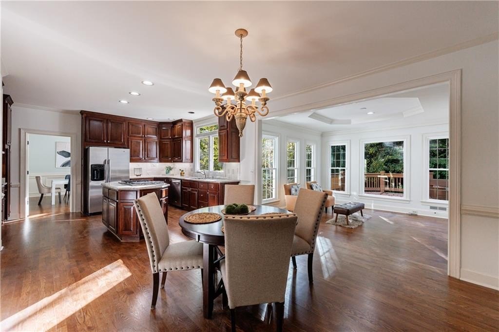 Welcome to 15 Vickwood Court — a stunning brick traditional in the sought-after Sentinel Lake community. This beautifully maintained home offers exceptional space and versatility with timeless design throughout. The inviting kitchen opens seamlessly to the great room and sunroom, creating the perfect flow for everyday living and entertaining. A bedroom and full bath on the main level provide flexibility for guests or a home office. Beautiful solid hardwoods on the main have just been refinished and mostly hardwoods upstairs. Upstairs, the luxurious primary suite is a true retreat, featuring a fireside sitting room and a spacious private ensuite bath with updated shower and flooring. Three additional bedrooms each enjoy either a jack-n-jill bath or their own private bath. Massive laundry on the upper level. The full finished walk-out basement offers incredible additional living space with a kitchenette, ideal for guests, recreation, or multi-generational living. Set on a quiet cul-de-sac lot in an active swim/tennis neighborhood, this home combines classic elegance with modern comfort in one of East Cobb’s premier communities. You can't beat the location with close proximity to East Cobb's top schools, shopping, Sope Creek Park, the Battery/Truist Park, and I-75. Call or text Ashley with any questions 678-939-0246.