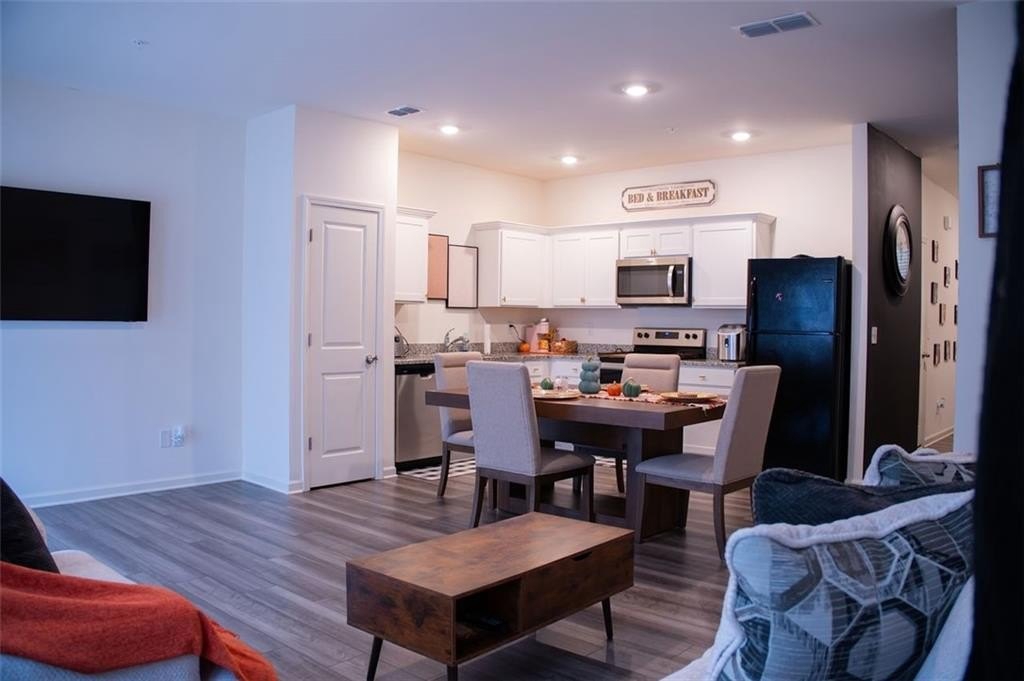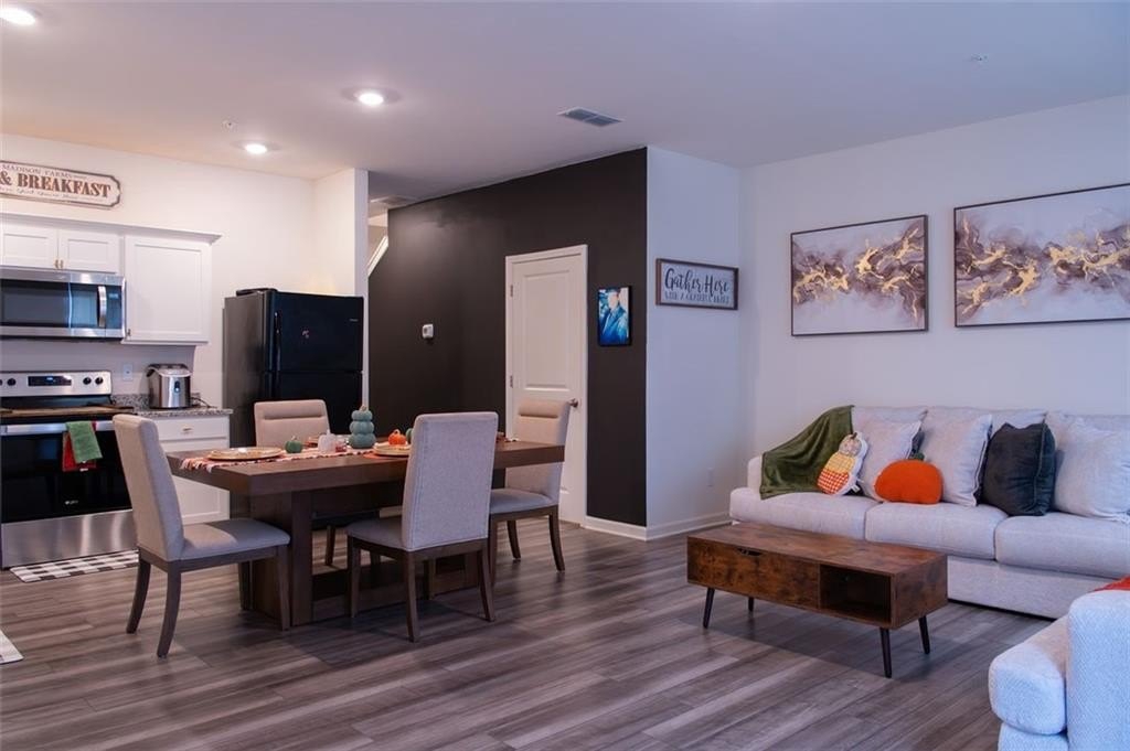 Discover the perfect blend of modern design and everyday comfort in this stunning 2-level townhouse, completed in 2023! As a desirable middle unit, this home offers the best of both worlds — privacy and convenience — all wrapped in a sleek, contemporary style. The open-concept main floor sets the stage for effortless entertaining, featuring a beautiful kitchen, a welcoming dining area, and a cozy, light-filled living room. Converted the Garage into a beautiful man cave, that can also be converted back. Find three spacious bedrooms and two and a half beautifully designed bathrooms, ideal for families, professionals, or anyone who loves a little extra space. The master suite offers a private retreat with an en-suite bathroom. Stylish, comfortable, and move-in ready, this home is designed for how you want to live today.