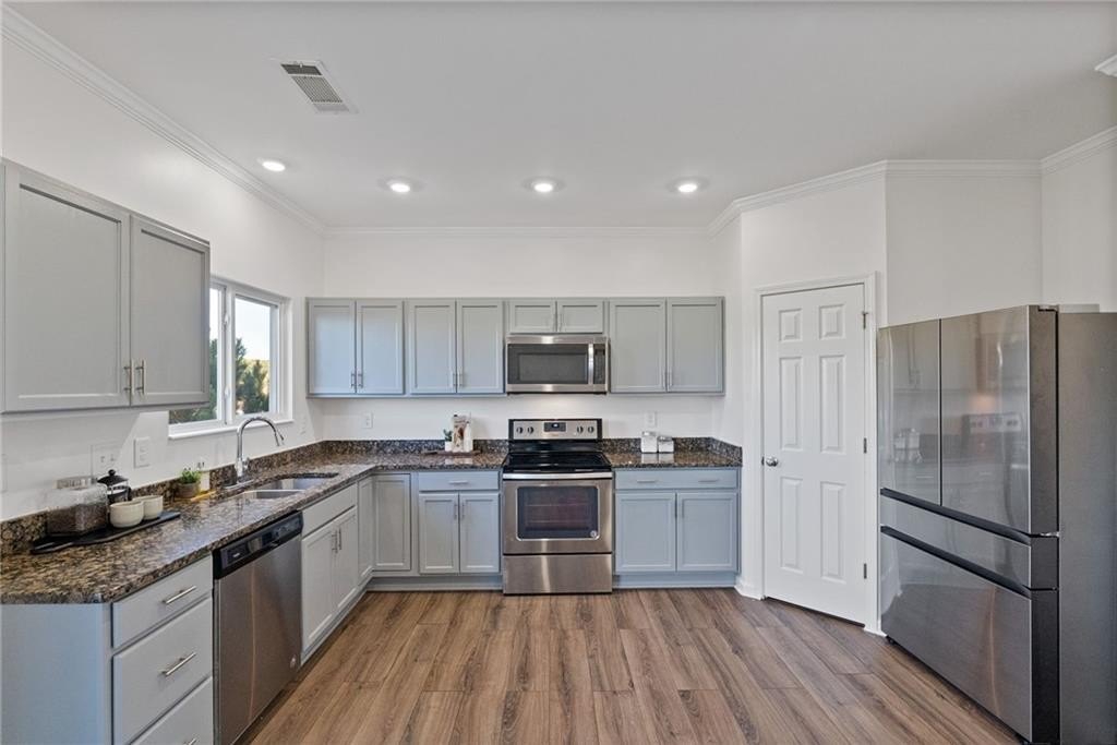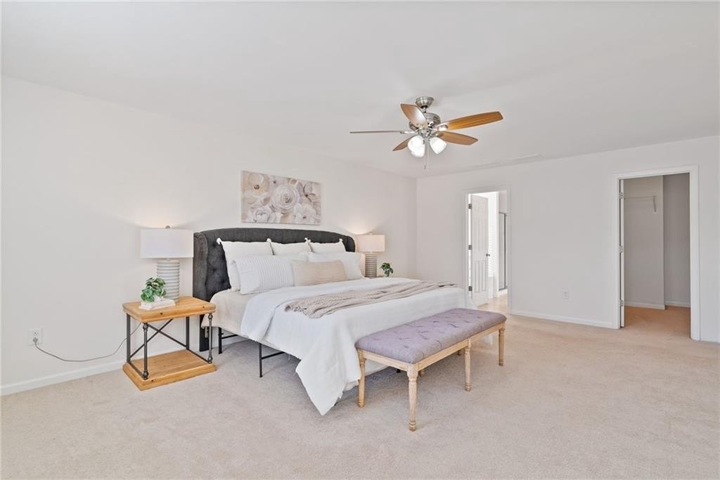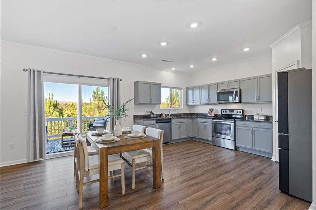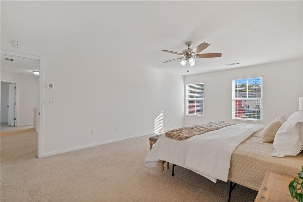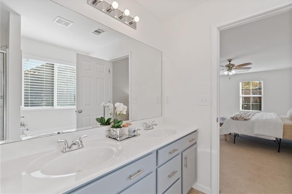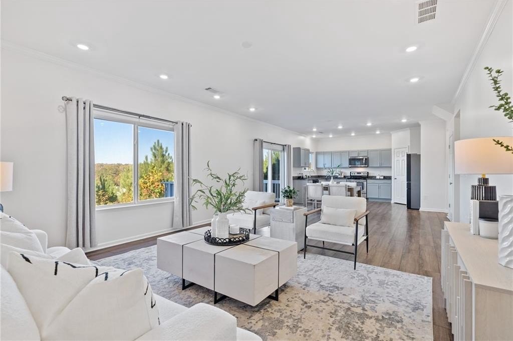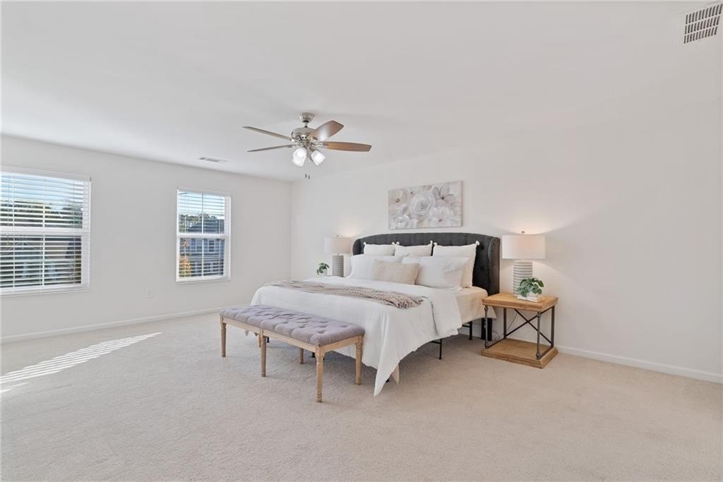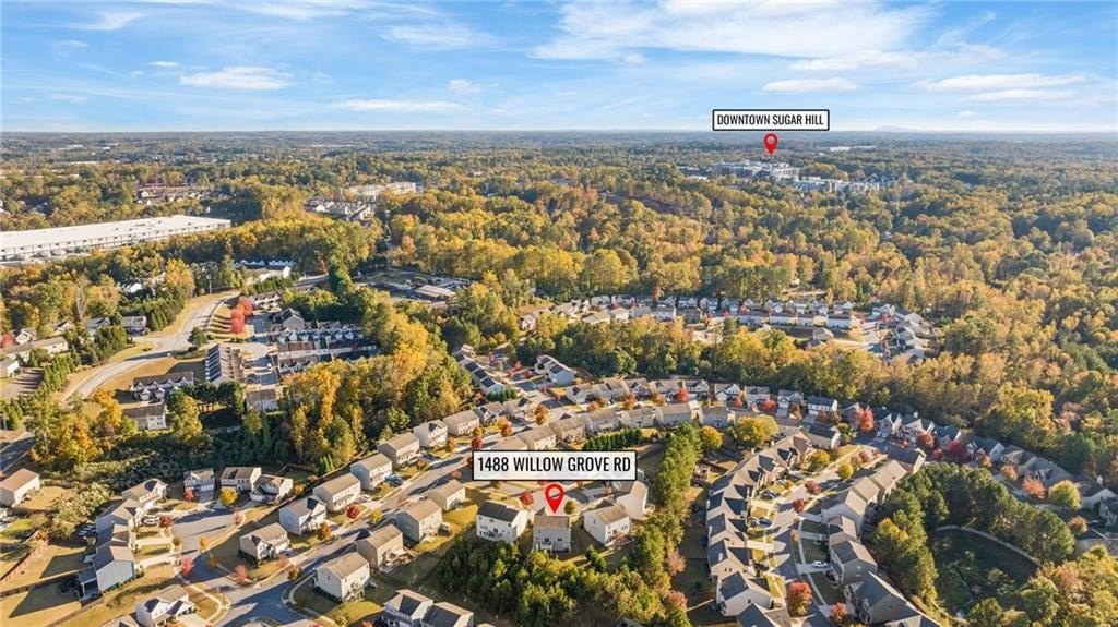 Beautiful home in PRIME LOCATION tucked away at the end of a CUL-DE-SAC on a FLAT LOT with MATURE TREES FOR PRIVACY! Located in a very desirable swim / tennis community of Primrose Creek with clubhouse, playground, neighborhood pool, kiddie swim area with 'mushroom' water features and a water slide. This open floor plan living room and kitchen has main level walk out access to a deck with long range views that are hard to find in a subdivision! The interior of the home has neutral paint colors & new LVP flooring. All appliances, including the refrigerator, washer & dryer, convey with the property so this one is truly move in ready. Upstairs you will find the master suite with 2 secondary bedrooms and 2 full bathrooms as well as an open loft area / flex space. The UNFINISHED BASEMENT OFFERS AN ADDITIONAL 893sf to customize as you like! It is stubbed for another full bath so there are many options! PRIME LOCATION - this community is just minutes from Downtown Sugar Hill for boutique shopping and dining experiences. It is also less than 10 minutes from an outdoor concert venue for live music, festivals, more restaurant and entertainment options, movie theatre & gyms - all just right down the road. Check out "The Landing at Sugar Hill", The Bowl at Sugar Hill (music & festival venue).