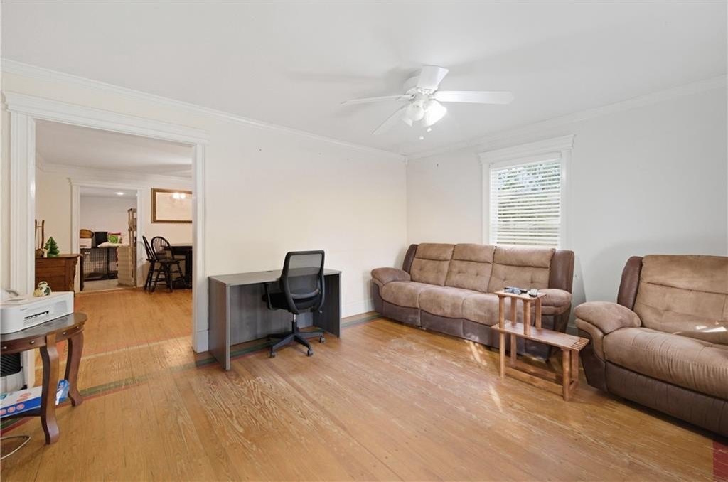 Welcome home to this cozy bungalow-style retreat featuring 1 bedroom, 1.5 baths, and an additional flex room that can easily serve as a second bedroom or office. The inviting family room, filled with natural light, creates the perfect space for relaxing evenings, while the eat-in dining area with a stone fireplace offers a warm and welcoming atmosphere for gatherings.