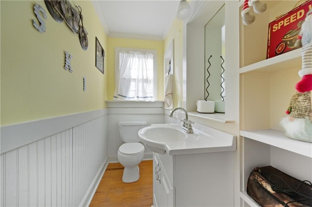 Enjoy beautiful hardwood floors, a convenient mudroom, and updated bathrooms throughout. The home sits on a generous half-acre lot with an above-ground pool, a deck overlooking the backyard, and ample parking for guests. A detached garage with storage, plus an additional storage shed, provides abundant space for hobbies or equipment.