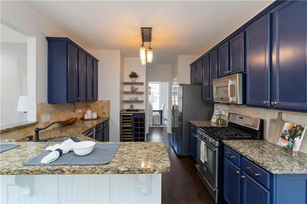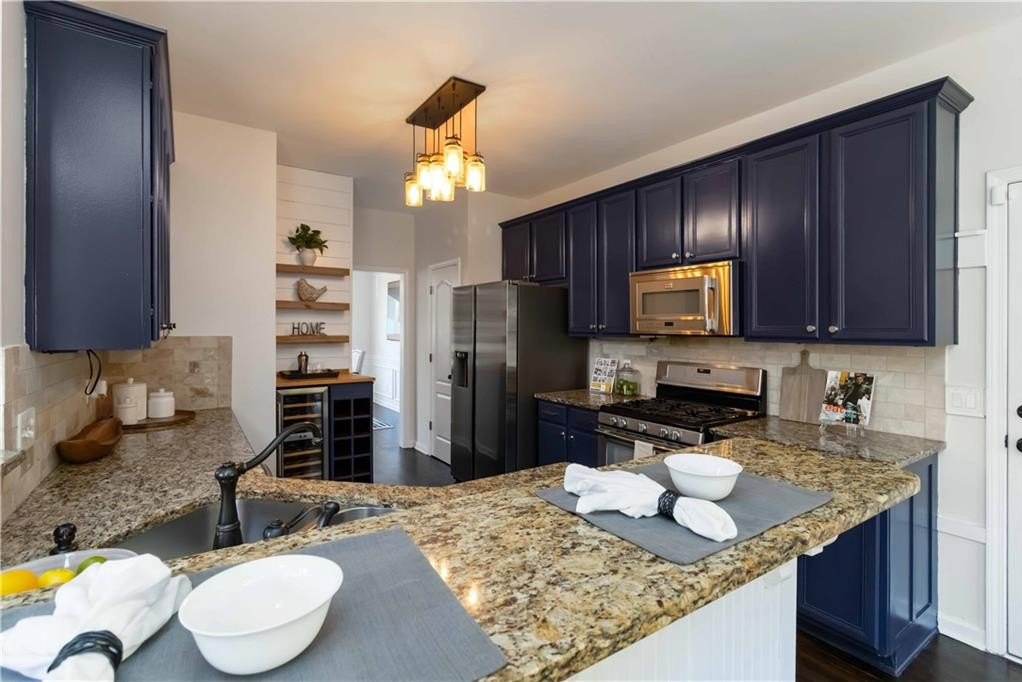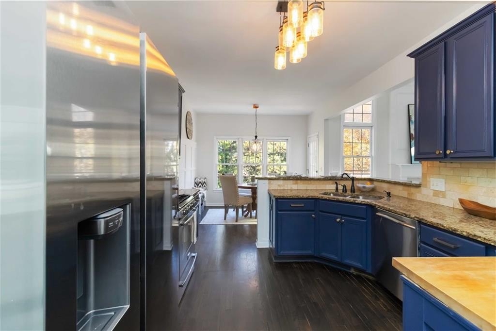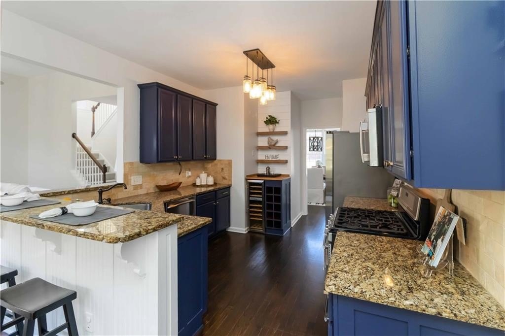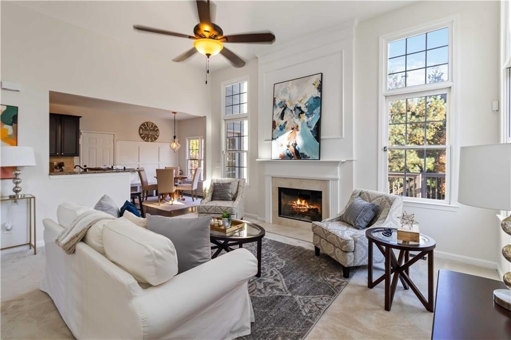 The main level features 12-ft smooth ceilings in the great room, gleaming hardwood floors, new premium carpet & padding, and fresh interior paint throughout. The chef’s kitchen impresses with granite countertops, stainless-steel appliances, a wine bar and a cozy breakfast nook overlooking the gorgeous backyard. Enjoy updated bathrooms with custom finishes, his-and-her walk-in closets, and abundant natural light in every room.