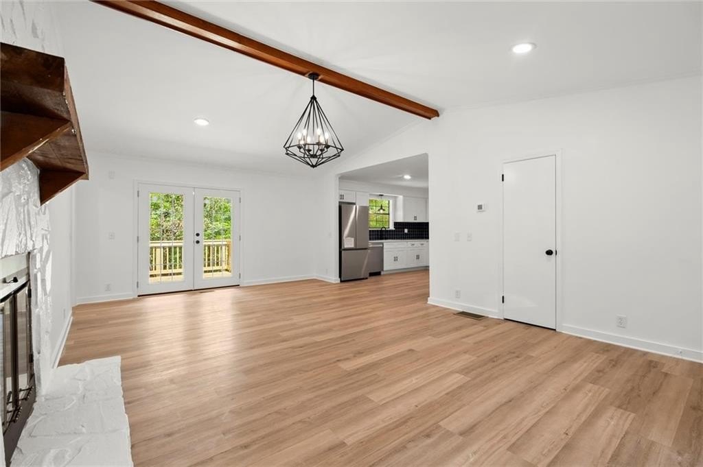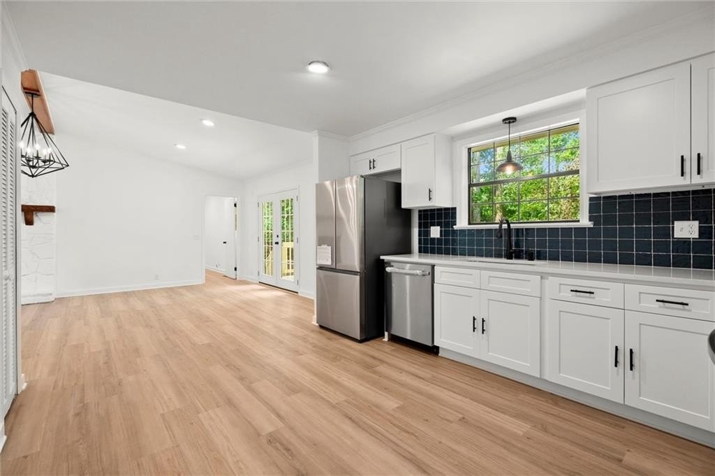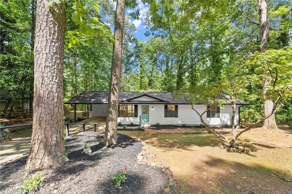Blending timeless charm with modern luxury - this stunning, turn-key home has been completely renovated with professional design and meticulous attention to detail throughout! BRAND NEW ROOF and clear termite letter available! Nestled on a private 2-acre lot, it offers bright, open rooms featuring luxury vinyl plank flooring, solid wood accents, black hardware, and a striking stone fireplace with a stylish pendant fixture in family room. The kitchen is a showpiece with quartz countertops, handmade glazed tile backsplash, new cabinets, Samsung appliances, and a new garbage disposal. The spacious primary suite includes a double vanity, and a shower with natural stone. Secondary bedrooms are spacious, bright, and include smart ceiling fans. French doors open to a brand-new deck, perfect for entertaining or relaxing, and overlook a thoughtfully designed landscape with freshly planted grass seed. Selective tree removal was performed as a precaution for compromised trees. Major upgrades include a brand new HVAC system with all-new ductwork, a new water heater, $30,000 surge protector warranty, all new outlets and switches, new interior paint, new front and garage doors, new gutters, and a clean, sealed crawl space. 1184 Alemeda is move-in ready and designed for both beauty and peace of mind. Come see it today!