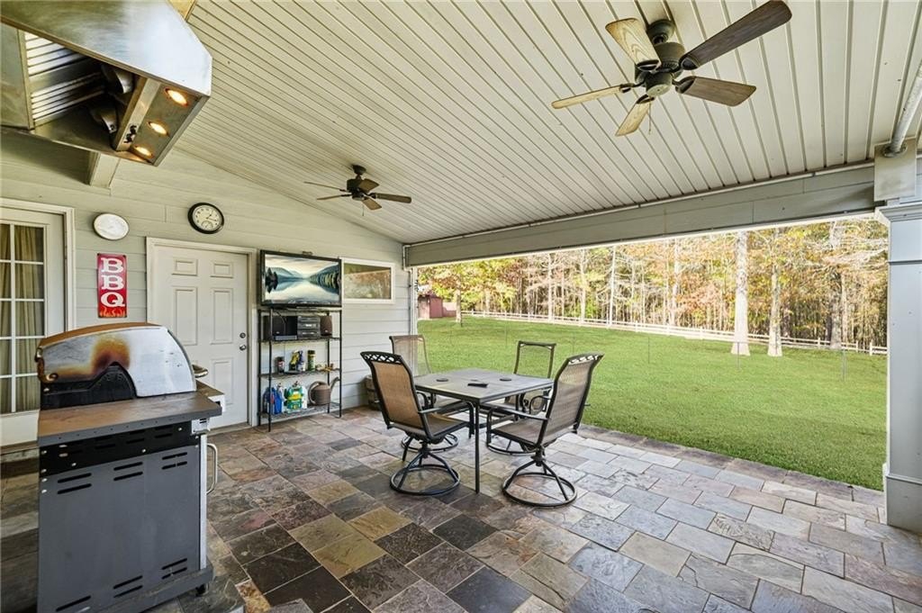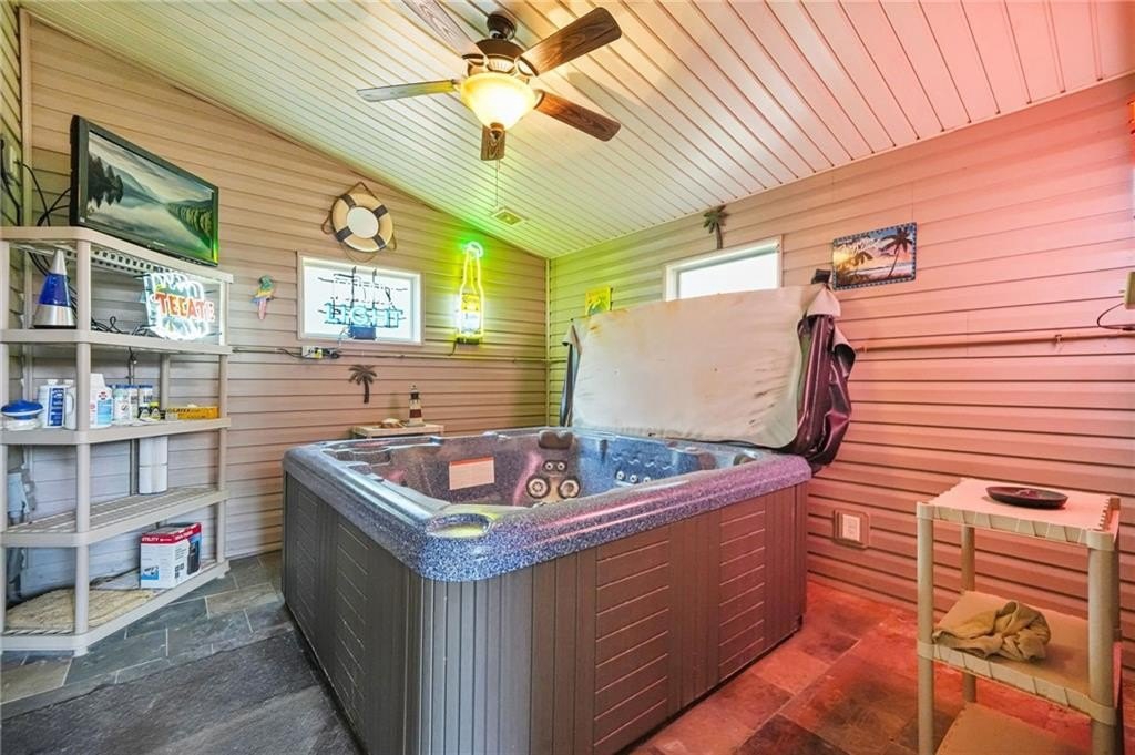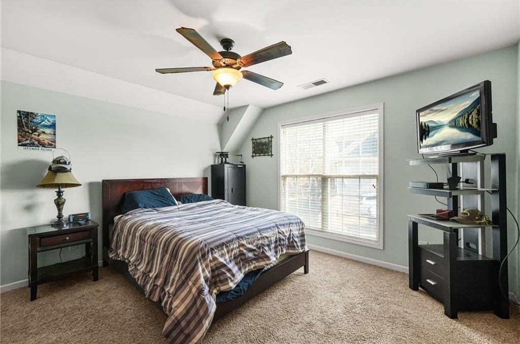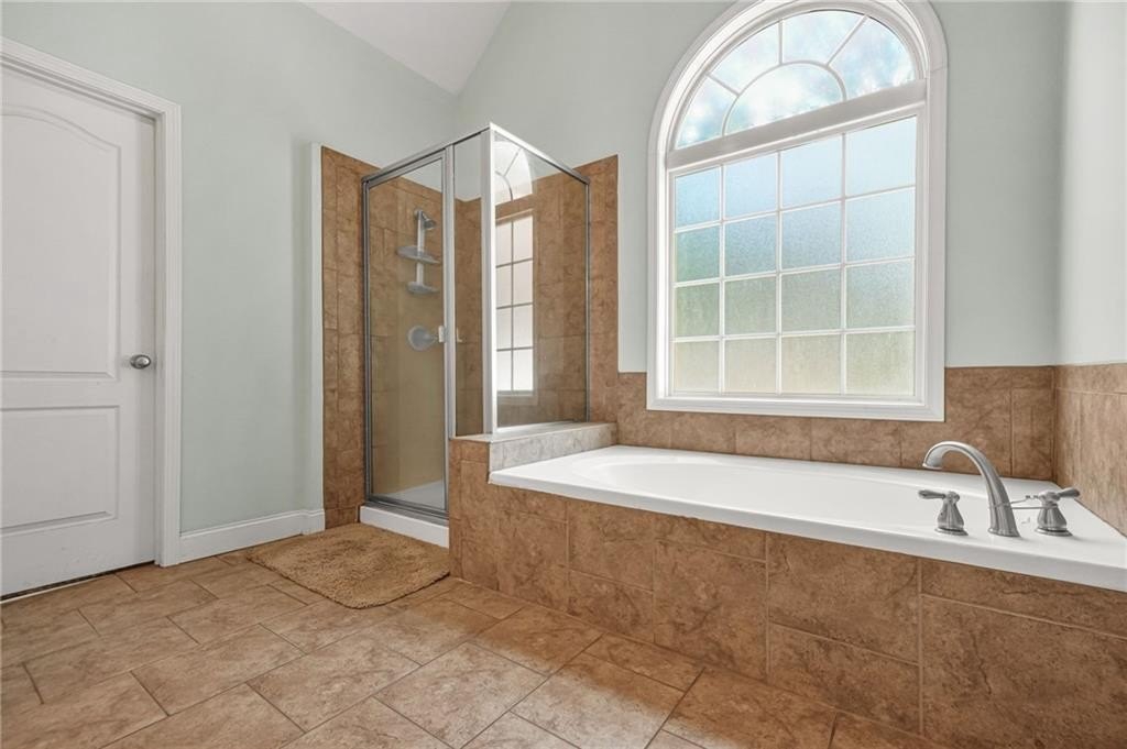 As soon as you walk in, you’re greeted by soaring 30-foot ceilings and a stunning stone fireplace with gas logs, creating a dramatic and inviting living area. The primary suite is conveniently located on the main level and features a spacious bathroom with a garden tub, separate shower, and double vanity.