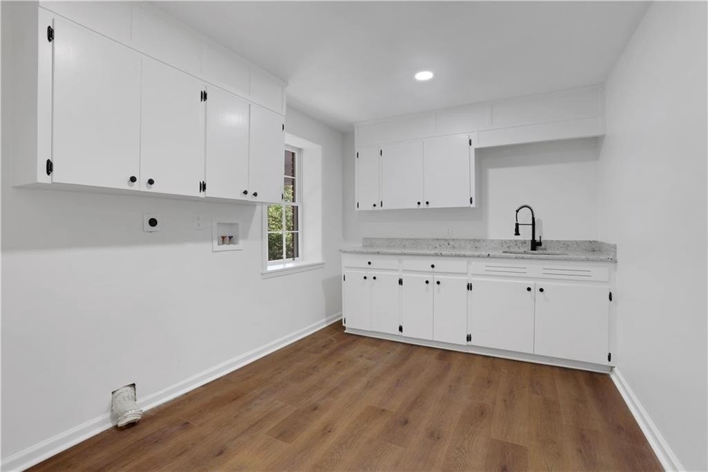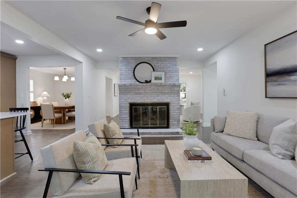 Nestled in the highly sought-after Whitlock Heights subdivision, this fully renovated 5-bedroom brick ranch on a finished basement combines timeless character with modern luxury. Inside, you’ll find custom cabinetry throughout, a stunning brick fireplace that anchors the living area, and a light-filled sunroom perfect for relaxing or entertaining. The spacious, finished basement offers endless possibilities—including a stylish speakeasy room that adds a touch of personality and charm. Enjoy mornings on the large front porch surrounded by mature trees and quiet streets. Located just minutes from the Marietta Square and situated in a top-rated school district, this home offers the perfect blend of convenience, craftsmanship, and comfort.