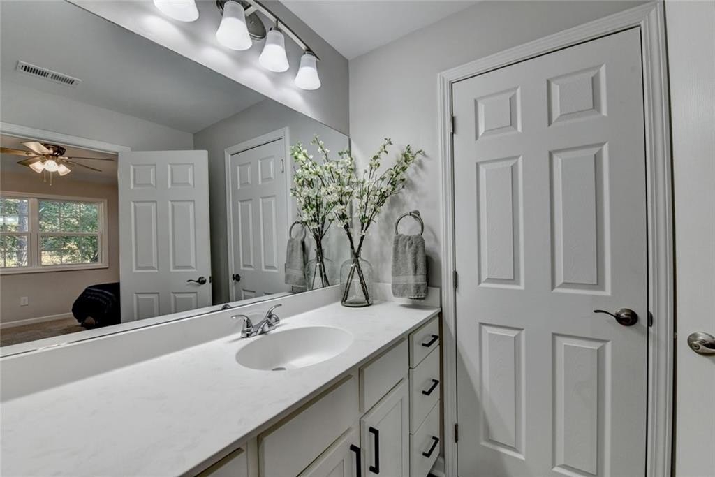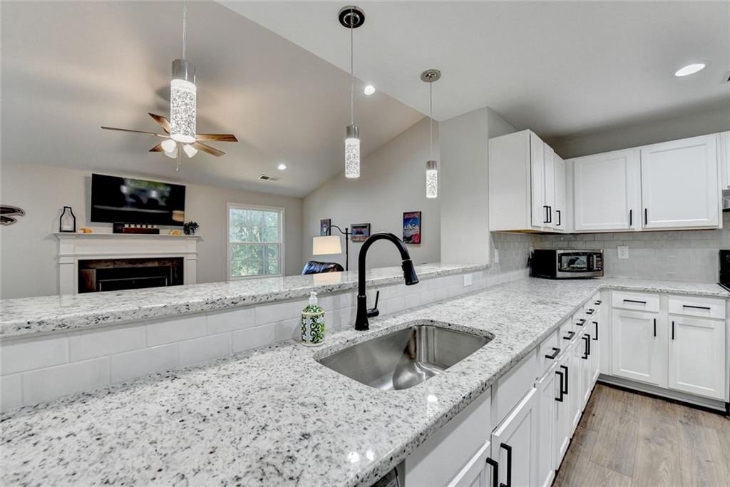 Don’t miss this opportunity to live in a new construction condo (building was rebuilt from the foundation up in 2023), in the highly desired community of Martins Landing in Roswell. The seller is moving out of state so his loss is your gain! You are going to love everything about this condo that sets it apart from other condos at a similar price point in Roswell, from the white shaker style cabinets, granite countertops, single bowl stainless steel undermount kitchen sink, subway tile backsplash in the kitchen as well as both bathroom showers, hexagon tile flooring in both bathrooms, light wood flooring, smooth ceilings, recessed lighting, to the new windows that are easy to open (hello, they aren’t painted shut!). Super convenient location with easy access to GA 400 and a variety of fantastic dining and shopping options in downtown Roswell, Avalon, North Point Mall, Big Creek Greenway and more. Martins Landing boasts a 2.4-mile trail around 53-acre Martin Lake, a perfect place to kayak/paddleboard/canoe, three pools, 11 tennis courts, six pickleball courts, and The River Lodge (club house) which is available for private rental and also the location of community events. FYI, rentals are at capacity in this community so the condo must be owner occupied.