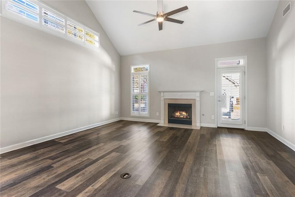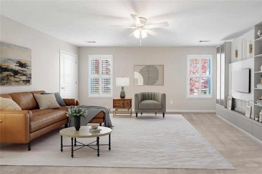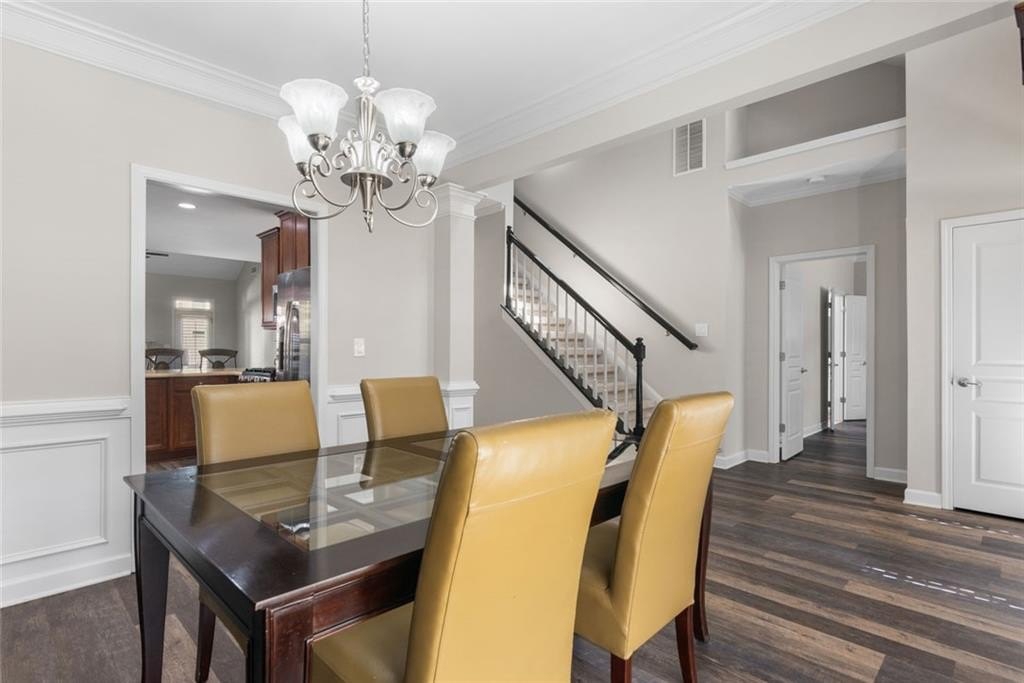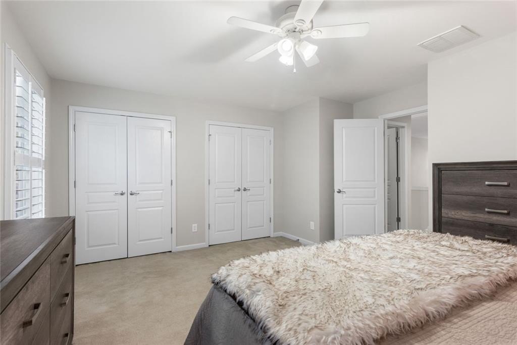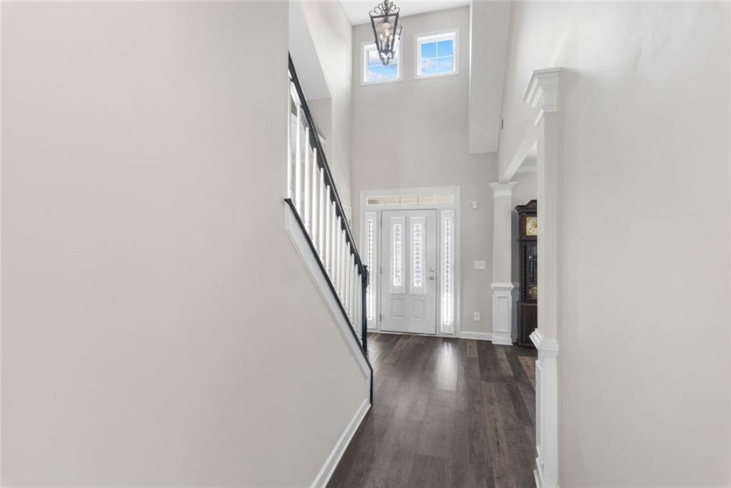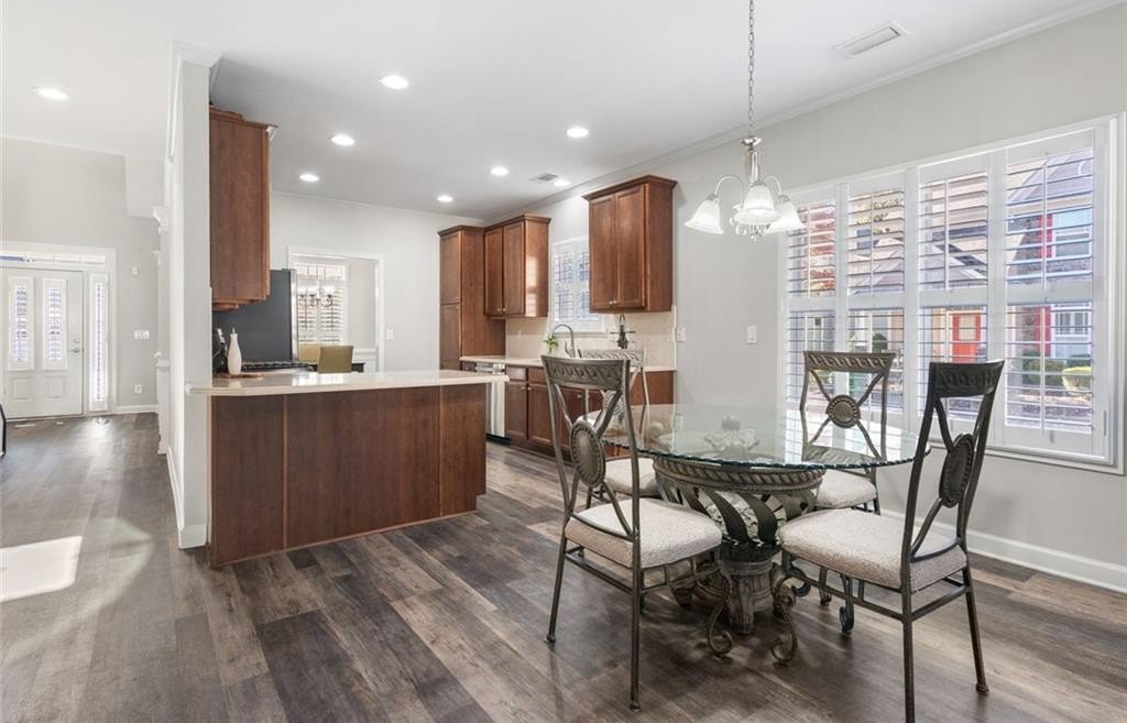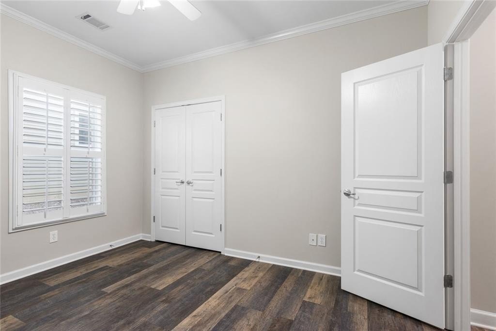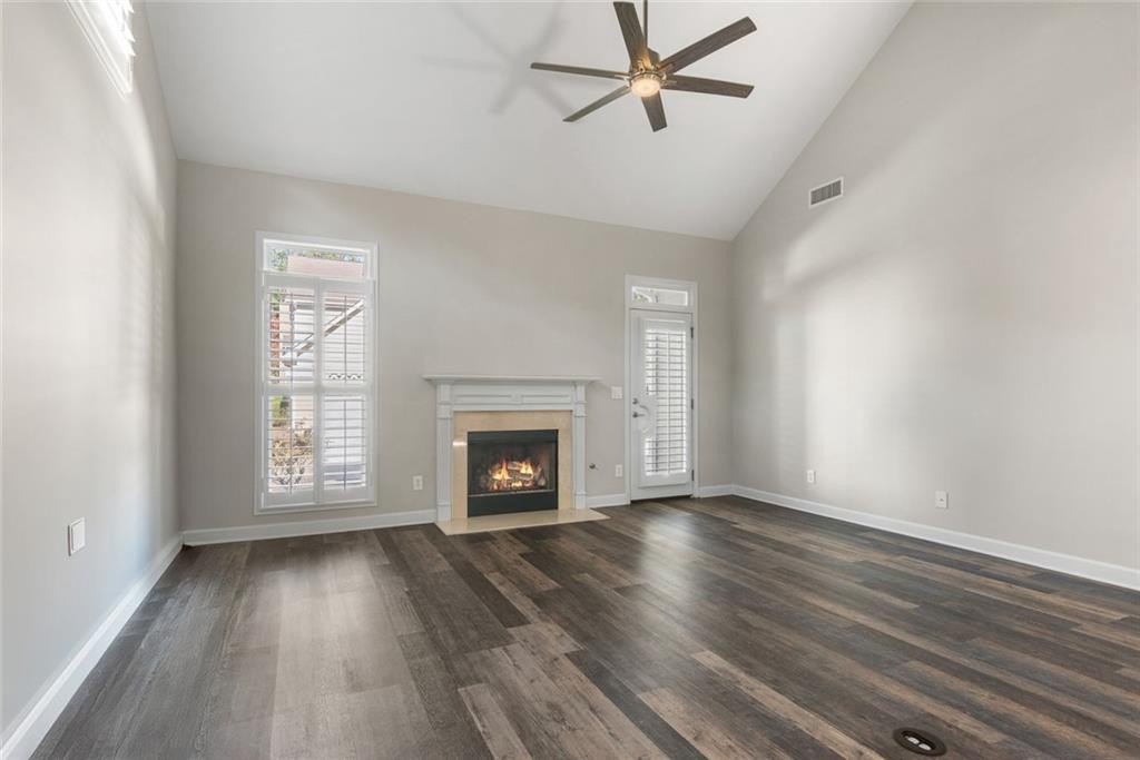 You'll fall in love with this incredibly charming home in pristine condition in the North Gwinnett school district. Hang out on the covered front porch and enjoy the quiet surroundings. Located in the popular Stonecypher neighborhood of Suwanee, it's an easy walk to Suwanee Town Center, parks, trails and shopping. This is one of the largest floor plans in the neighborhood and features a freshly painted exterior, plantation shutters throughout, newer LVP flooring on the main level and lots of extra storage. The family room offers plenty of space to gather, and is defined by its gas fireplace, high vaulted ceiling that amplifies the sense of volume and light, and crown molding that adds a touch of refined detail. The kitchen features stainless appliances, tile backsplash, and solid surface counters. A peninsula provides both workspace and casual dining while stained cabinetry brings a classic touch, and crown molding ties the space together with sophisticated detail. In addition to the kitchen pantry, there is another pantry in the hallway, as well as a separate coat closet. The dining room with paneled wainscoting and crown molding is perfect for more formal meals, while there's an additional, more casual eating area just off the kitchen. The primary bedroom provides a serene retreat, featuring a tray ceiling and crown molding that enhances the room's overall elegance. The en-suite bath features tile flooring, a garden tub, dual vanities, separate walk-in shower and a spacious closet. A laundry room, 2nd bedroom and another full bath round out the main level. Upstairs, there is a large bonus room/loft area that can be used as a 2nd living room, rec room or whatever fits your needs. There is also a very spacious bedroom and a 3rd full bath. In addition to the closet in the bedroom, there are 2 additional large closets, one of which is a finished part of the attic. In addition, the attic area above the 2 car garage has been completely floored and is perfect for a lot more storage space. The back patio has a partial privacy fence. That area can be enclosed (with HOA approval) if a buyer chooses to do so. Washer, dryer and refrigerator stay with the property. Enjoy viewing this lovely home.