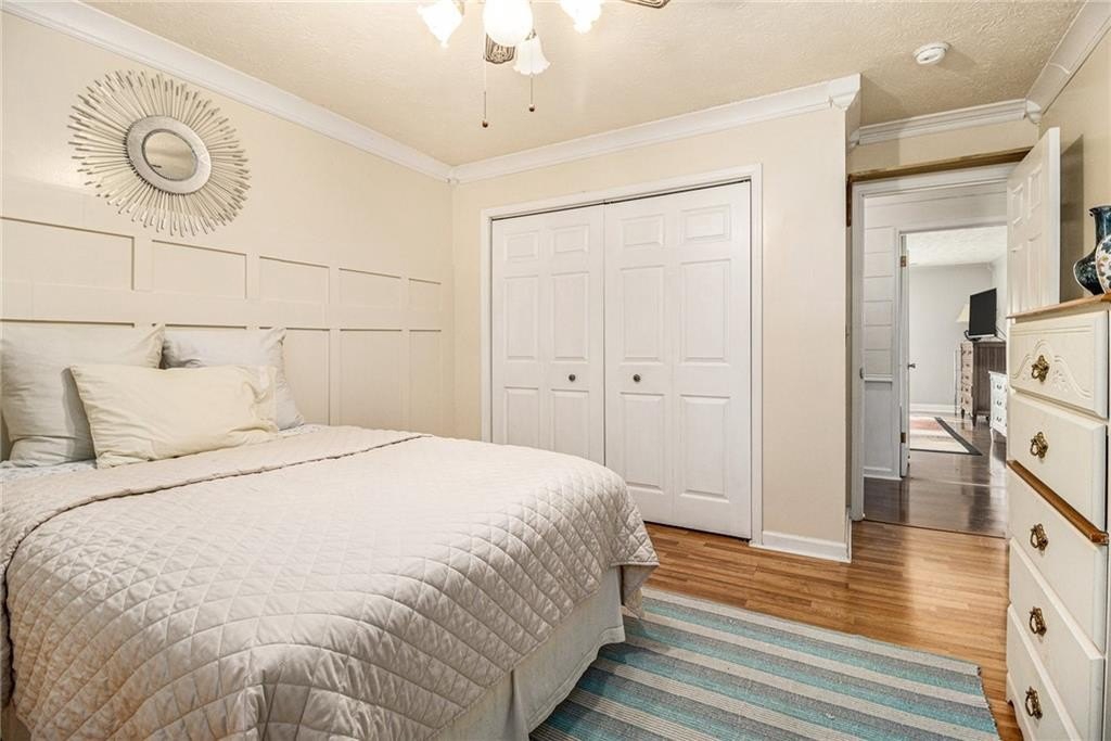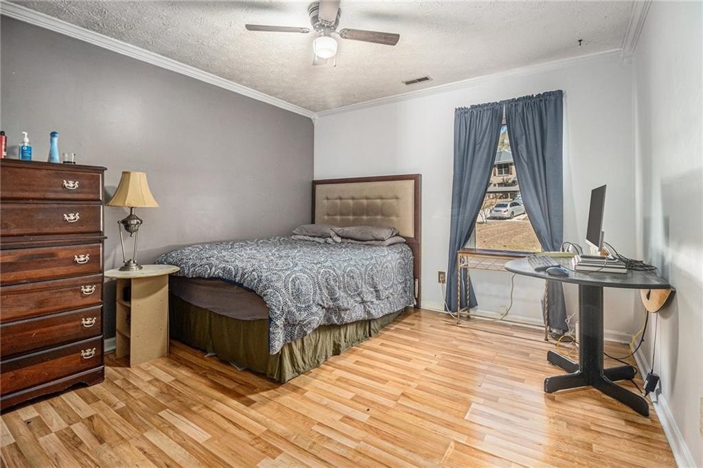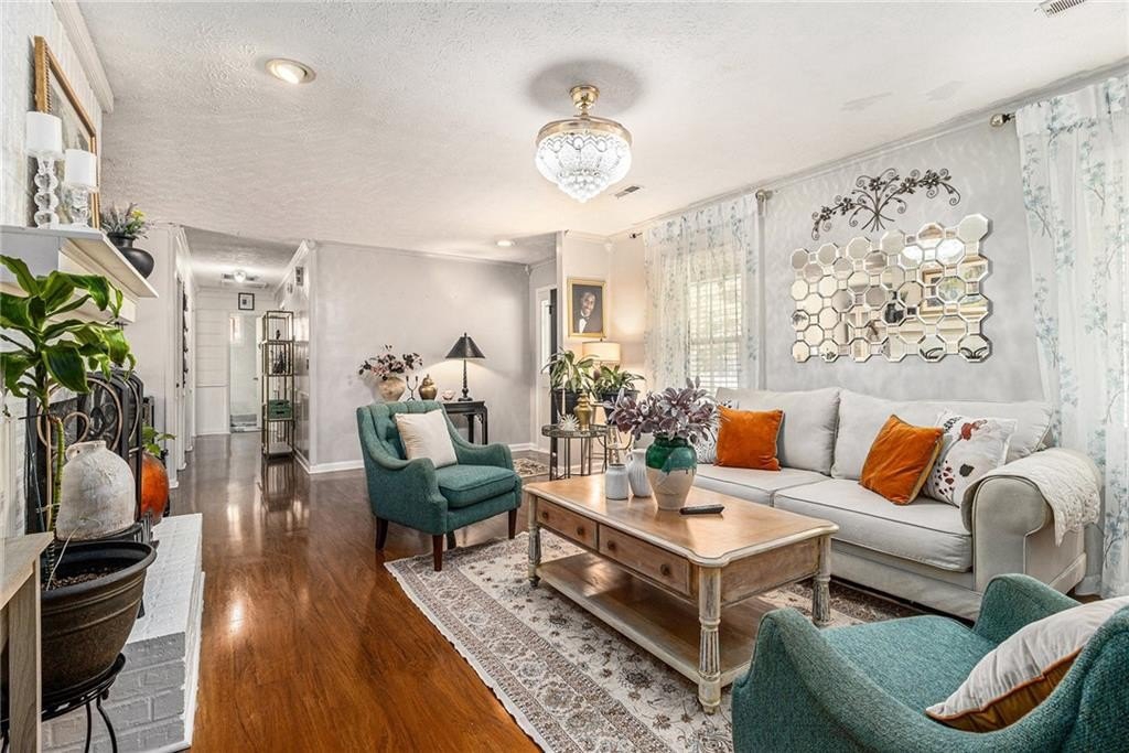 Stunning home in Elon Farm subdivision with lots of recent updates. Details include the bookshelf in the living room, newer luxury vinal and hardwood flooring, newer interior paint, crown molding, ship plank walls int hallway, newer windows thoughout home, newer outdoor siding, newer front and back porch and newer panty. Both bathrroms have been updated. Enjoy your private fenced backyard that is perfect summer BBQs and you can sip your drink of choice entertaining guests. This is the perfect home for the first time homebuyer who would like to be a short distance away from restaurants, shops, amusement park, and a quick drive over to Atlanta's airport. Don't wait to view, this is a good home ready to go!