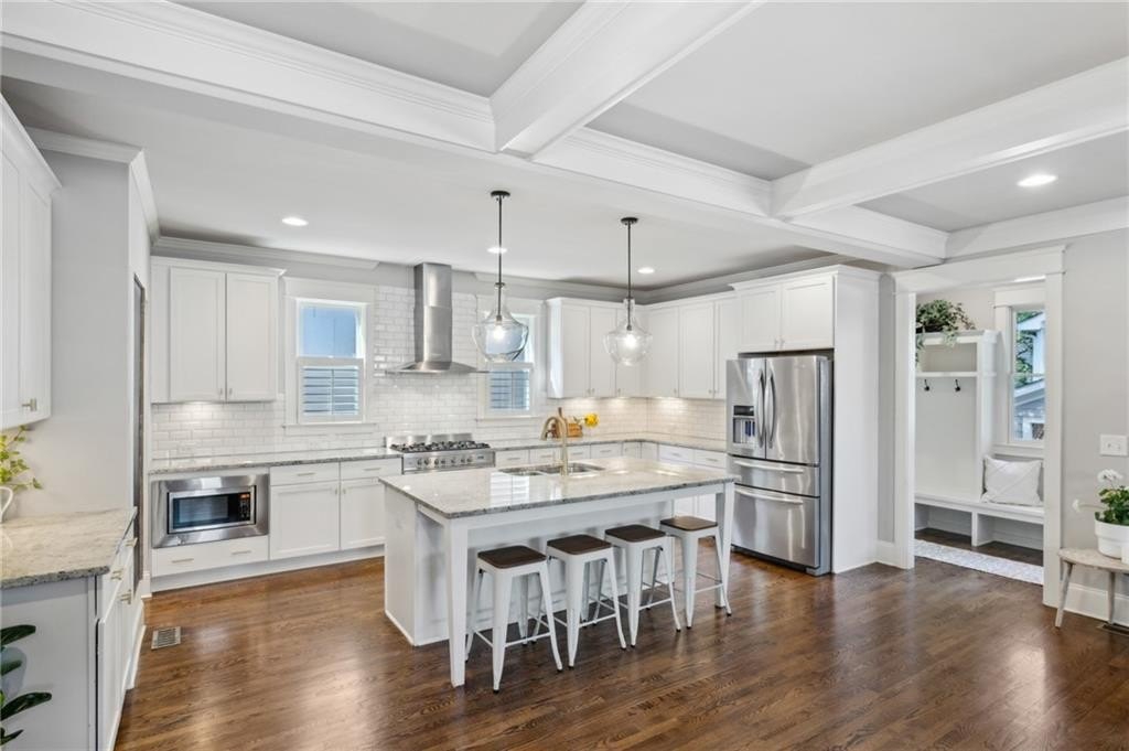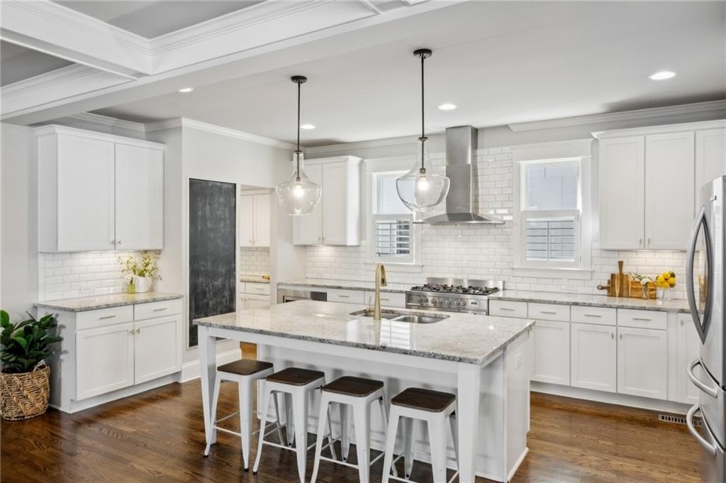 Don't miss this 4 bedrooms/3 baths City of Decatur home with a coveted 1 bedroom/1 bath carriage house apartment over the garage. The separate guest unit has been a successful AirBNB / VRBO, in-law suite and a home office. Situated on a perfectly level lot, summer BBQ's will find you bouncing from inside to outside enjoying the screened rear porch, fenced back yard and saying hello to neighbors from the huge front porch with fenced front yard. Inside, the main level hardwoods are beautifully re-finished, the walls are newly painted and the two huge primary bedroom closets are just waiting for you to move in. The owner's suite layout provides a truly generous space for two master closets, a wall of windows peering out to the backyard and a grand owner's bath. At the top of the stairs is a flex space with built-in shelves, perfect for an art room, music room or secondary living room. Life on the main level provides an open concept layout, with a butlers pantry pass-through to the dining room, two kitchen pantries and beautiful built-ins surrounding the gas fireplace. The white kitchen cabinets, stainless appliances and large island make for a classic design that always delivers whether you are entertaining, relaxing at the end of the day or getting out the door in the morning. Finally, you'll love the ease of the main level laundry room with side by side washer/dryer included. Don't miss your chance to live in one of the most convenient locations in the City of Decatur. Minutes to Publix or Whole Foods. Walk to top rated schools (Glennwood Elementary), parks, MARTA or Decatur's vibrant square and enjoy the fastest access to I285 from this Decatur location. Before you know it, Lulah Hills will be complete and you'll be zipping over to enjoy the new shops and restaurants. Fantastic community in this location on the north side of City of Decatur.