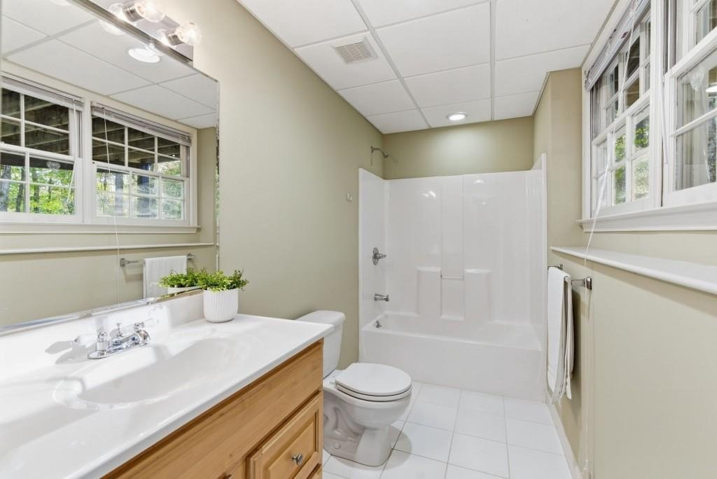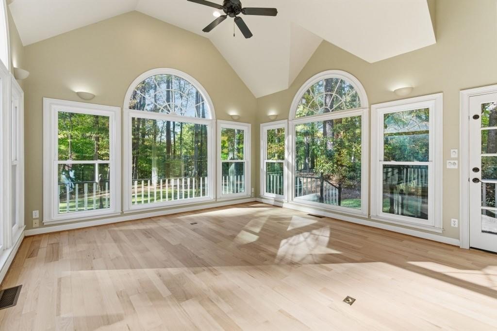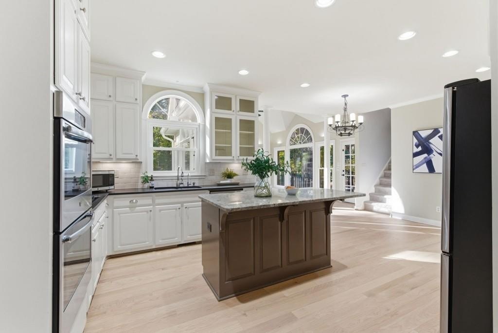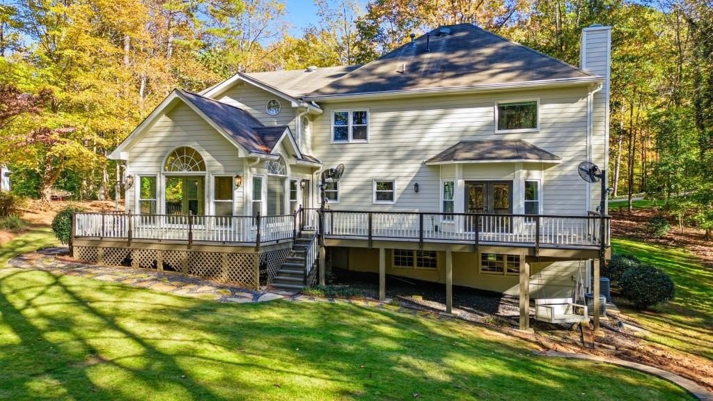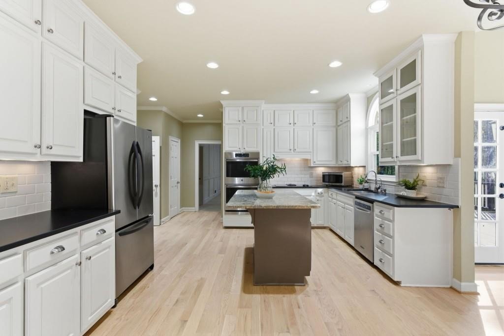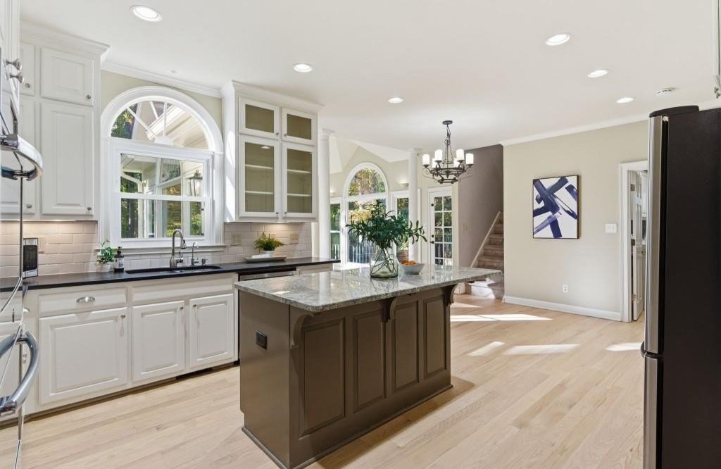 Timeless Brick Beauty on a Peaceful Cul-de-Sac Nestled beneath a canopy of mature trees, this elegant brick-front home offers warmth, character, and recent updates that enhance its lasting appeal. This Beautifully maintained 4-bedroom, 3.5-bath home is nestled on a quiet cul-de-sac in the highly sought-after Jefferson Township community and Lassiter High district. Step inside to an inviting open layout featuring high volume ceiling, a formal dining room and private office, perfect for today's lifestyle. The heart of the home is a white kitchen with large granite island, stainless appliances, and built-ins, opening to a sunroom and family room with custom fireplace and built-in bookcases. Walls of windows fill the space with natural light and offer serene views of the private backyard. Upstairs, the spacious owner's suite impresses with a fully renovated bath, dual vanities, soaking tub, and walk-in closet. Secondary bedrooms are generously sized and well-appointed. The finished terrace level provides multiple flex spaces, ideal for a media room, gym, or home office, plus a dedicated bunker/storage room. Recent updates include new energy-efficient windows, fresh interior and exterior paint, refinished hardwoods, fresh hardie plank siding, new retaining walls, oversized outdoor decking, warm and inviting fire pit area and professional landscaping. Convenient to top schools, parks, dining, and shopping-this home combines comfort, function, and timeless style in one of East Cobb's favorite communities. Experience the charm and updates that make this home truly special - a place where timeless style meets everyday comfort.