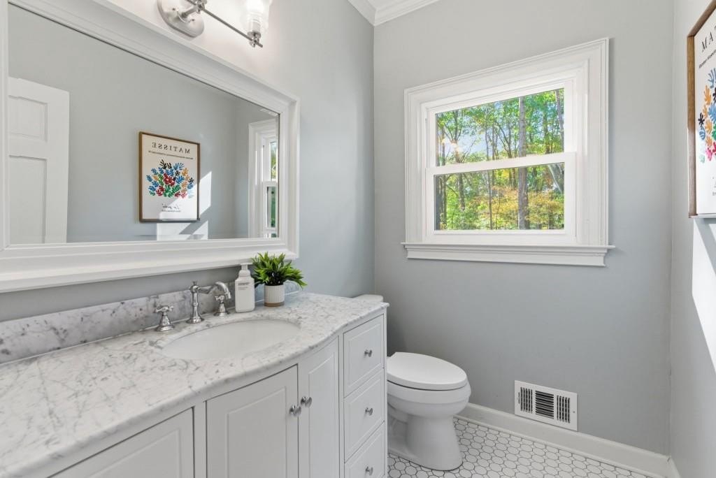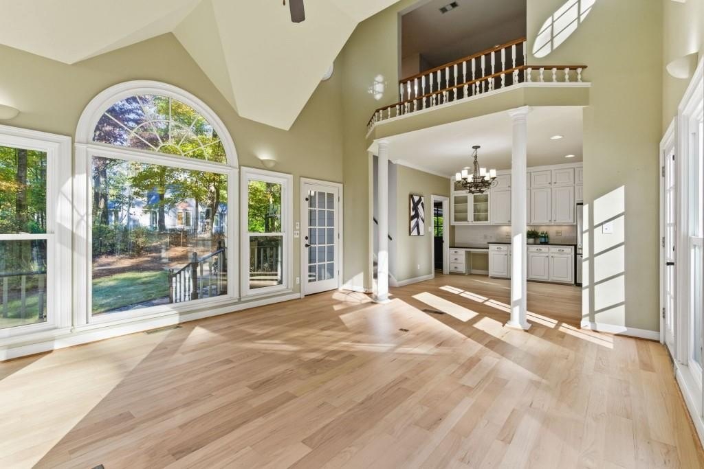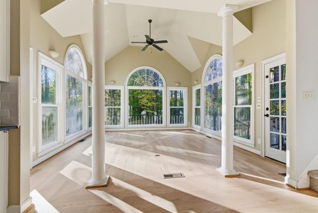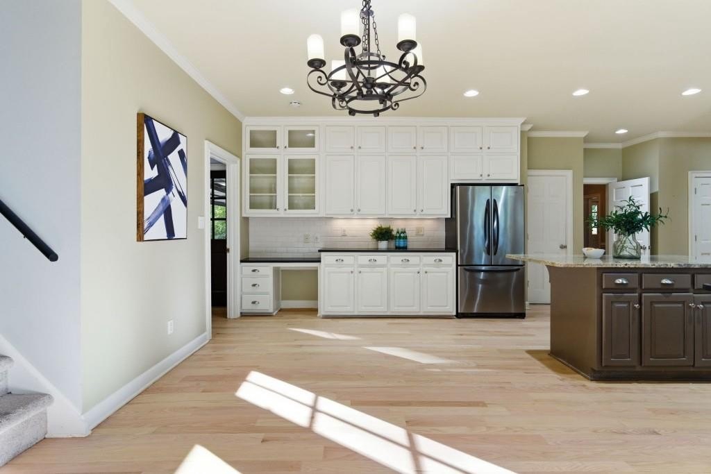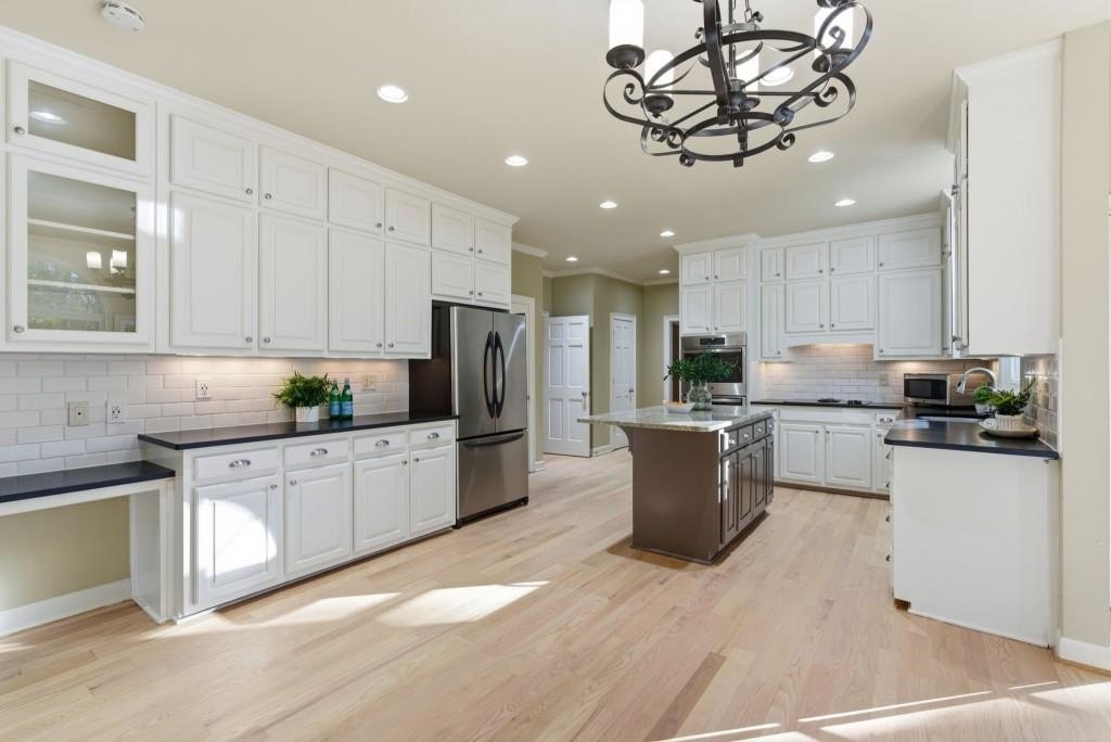 Timeless Brick Beauty on a Peaceful Cul-de-Sac Nestled beneath a canopy of mature trees, this elegant brick-front home offers warmth, character, and recent updates that enhance its lasting appeal. This Beautifully maintained 4-bedroom, 3.5-bath home is nestled on a quiet cul-de-sac in the highly sought-after Jefferson Township community and Lassiter High district. Step inside to an inviting open layout featuring high volume ceiling, a formal dining room and private office, perfect for today's lifestyle. The heart of the home is a white kitchen with large granite island, stainless appliances, and built-ins, opening to a sunroom and family room with custom fireplace and built-in bookcases. Walls of windows fill the space with natural light and offer serene views of the private backyard. Upstairs, the spacious owner's suite impresses with a fully renovated bath, dual vanities, soaking tub, and walk-in closet. Secondary bedrooms are generously sized and well-appointed. The finished terrace level provides multiple flex spaces, ideal for a media room, gym, or home office, plus a dedicated bunker/storage room. Recent updates include new energy-efficient windows, fresh interior and exterior paint, refinished hardwoods, fresh hardie plank siding, new retaining walls, oversized outdoor decking, warm and inviting fire pit area and professional landscaping. Convenient to top schools, parks, dining, and shopping-this home combines comfort, function, and timeless style in one of East Cobb's favorite communities. Experience the charm and updates that make this home truly special - a place where timeless style meets everyday comfort.