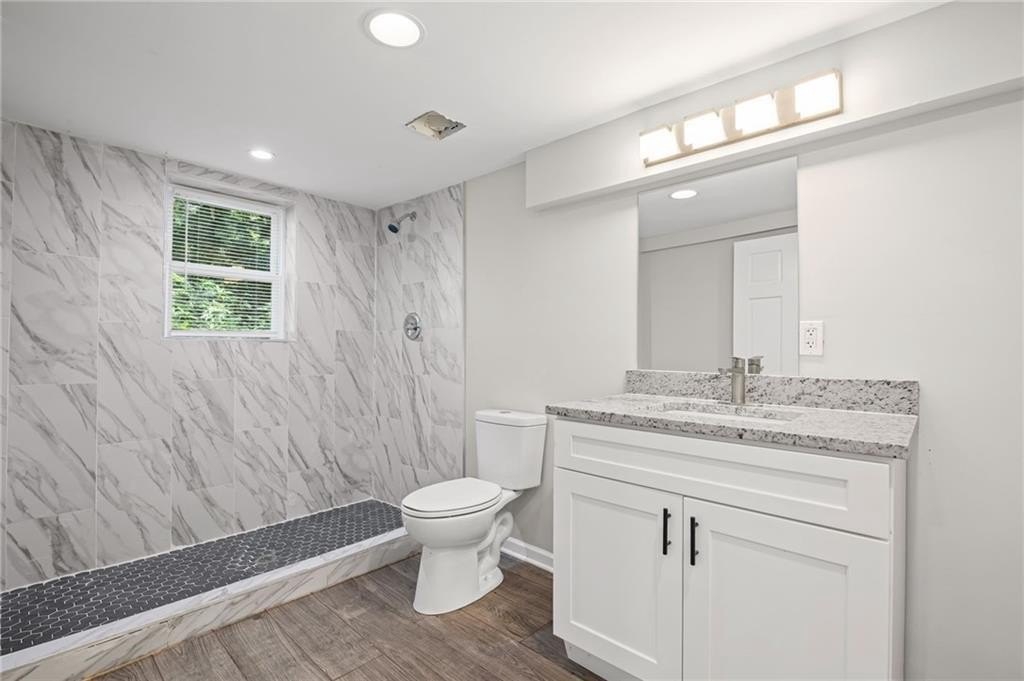 New....REO LISTING! Opportunity knocks for this totally renovated 4/3. New construction next door and several new homes on the street. This property is like two homes in one featuring a fully finished 2 BR/1BA daylight terrace level with both exterior & interior entrances. Almost every aspect of this home is new. New roof, HVAC, HWH, windows, flooring, all new beautifully tiled bathrooms and a fabulous kitchen with island and SS appliances. Excellent open concept floor-plan features a nice division between the first floor primary suite and the second en suite bedroom. Live comfortably outdoors enjoying the large covered front porch, expansive deck off of the kitchen or the level yard enclosed with wood privacy fencing. The terrace level is completely finished and offers tons of additional living space plus two bedrooms and an oversized bathroom with large walk in shower. Brand new long driveway extends all the way to the backyard.