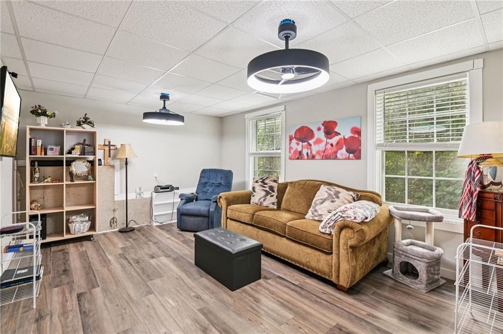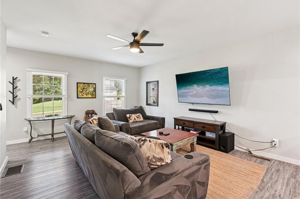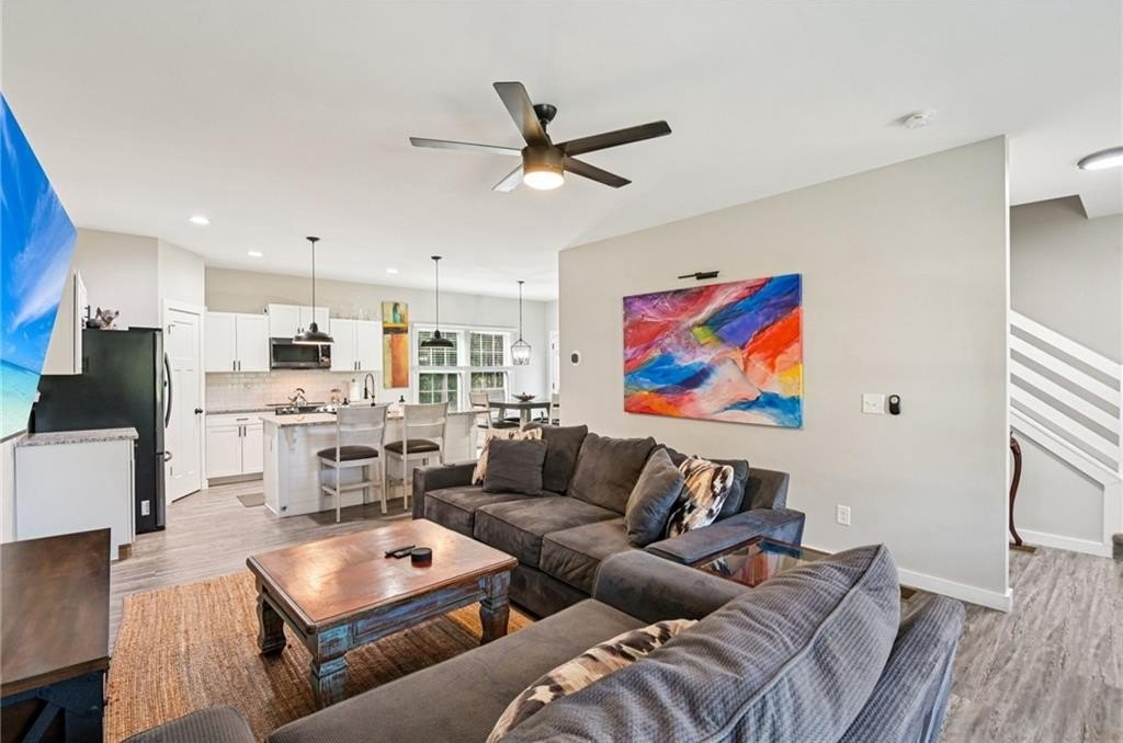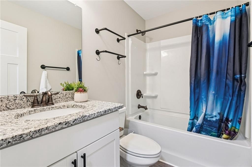 Gorgeous Home Near Historic Downtown Ball Ground! Just a mile from shops and dining, this home offers bright, inviting spaces with plenty of charm. A classic Southern-style front porch welcomes you inside to beautiful, low-maintenance laminate wood floors that flow throughout the main level living areas. The living room is light-filled, while the on-trend kitchen features granite countertops, a tile backsplash, large island with seating, apron-front farm sink, and pantry. A sunny breakfast room overlooks the private wooded backyard. A laundry room and half bath complete the main floor. Upstairs, the primary suite is a true retreat with dual sinks, granite counters, a walk-in shower, and spacious walk-in closet. Two additional bedrooms and a full bath ensure room for everyone! The newly finished basement is a fantastic bonus, offering a large multipurpose room—perfect for a media room, home office, or playroom—plus a bedroom and full bath. Enjoy outdoor living in the private backyard, complete with a large deck for grilling and entertaining, all surrounded by mature trees. With its prime location less than a mile from historic downtown Ball Ground, this home combines modern comfort with small-town charm. Book your tour today!