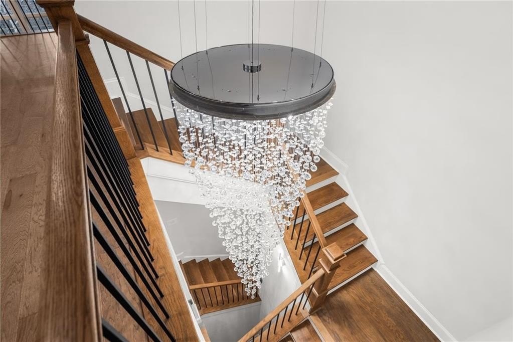 Step inside through a brick-accented entryway and discover soaring ceilings, all-hardwood floors, and stunning designer chandeliers that accentuate the home’s elegant open plan. The chef’s kitchen commands attention with a waterfall quartz island, custom cabinetry, and premium stainless steel appliances, flowing effortlessly into a fireside great room framed by two-story windows and refined millwork.